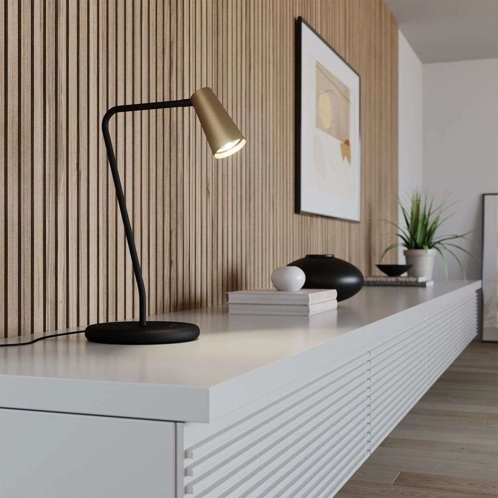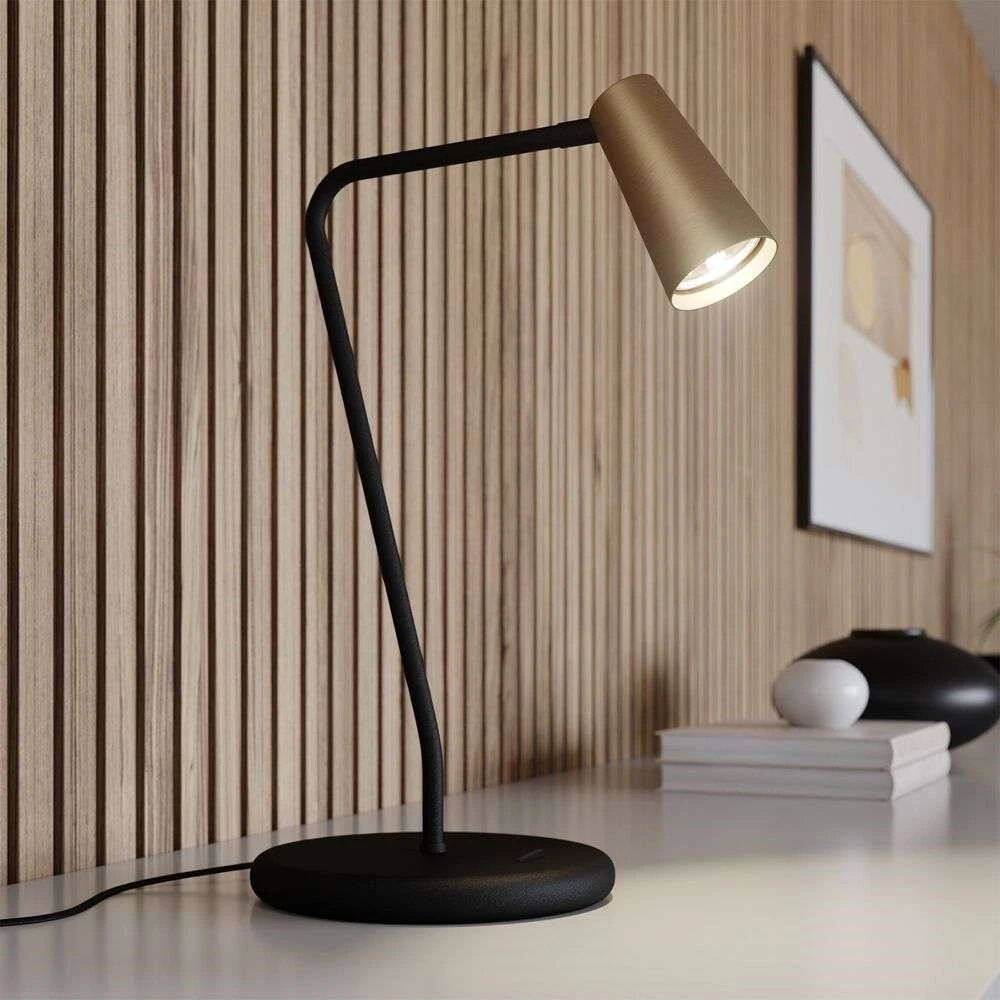 Die Angelina Tischlampe ermutigt durch ihr klares Design, das sich nahtlos in moderne Umgebungen einfügt. Der runde Fuß, das sanft gebogene Gestell und der konische Lampenschirm ergeben einen abgerundeten und ganzheitlichen Eindruck, der das Auge in mehr als einer Hinsicht erfreut.