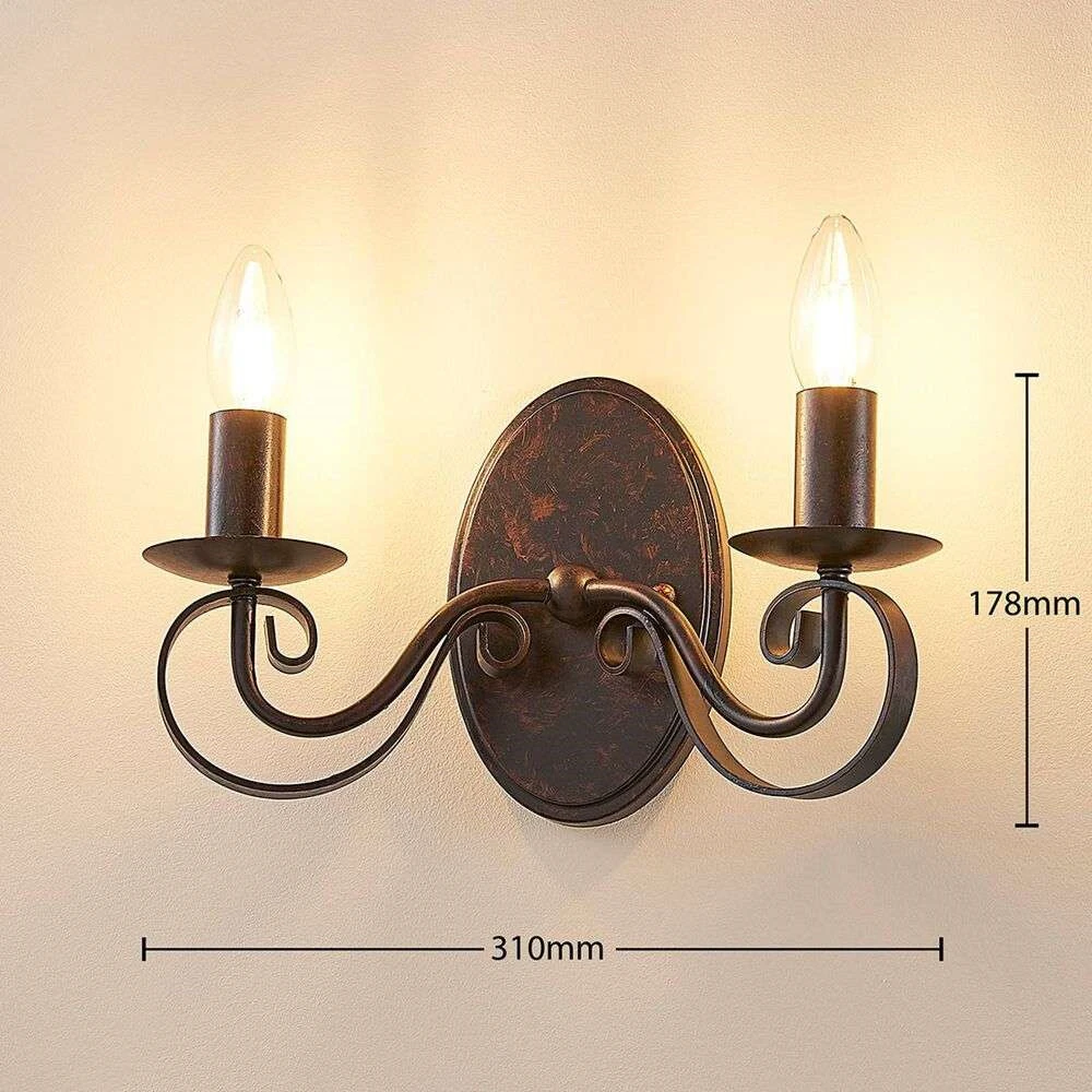 Die schönen Schnörkel der Wandleuchte werden durch eine rostbraune Oberfläche ergänzt, die der Leuchte einen antiken Look verleiht. Dieser Detailreichtum schafft eine ganz besondere Atmosphäre, die die Leuchte besonders für klassische und rustikale Interieurs geeignet macht.