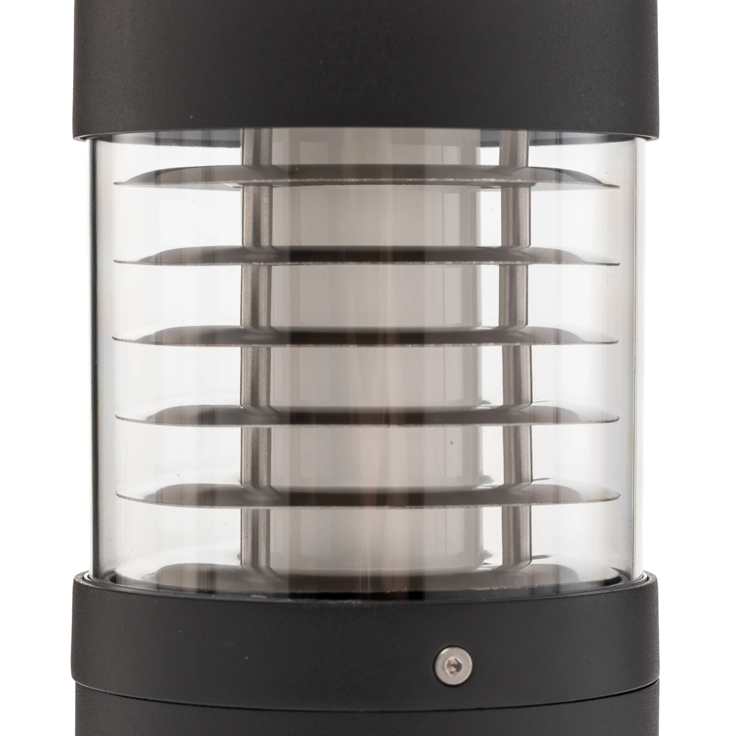 Eine Rasterblende fügt sich bei der LED-Sockelleuchte Lucius um die energieeffizienten Leuchtmittel und bewirkt auf diese Weise eine sanfte Abblendung des warmweißen Lichtscheins. Vom Gesamtdesign her komplett in zylindrischer Form gehalten, entsteht ein moderner Ausdruck, so dass Lucius als Sockelleuchte für die Beleuchtung von Neubauten und deren Umgebung hervorragend geeignet ist. Die Polycarbonatabdeckung ist klar und mit der Schutzart IP54 ist die Leuchte, die auf Mauern, Sockeln und anderen Erhöhungen angebracht werden kann, ausreichend geschützt, wenn es um das Eindringen von Wasser und Schmutz geht.