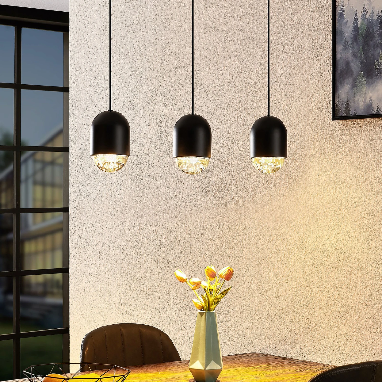 Dreiflammige Pendelleuchte Amielle in Balkenform – perfekt für den Esstisch