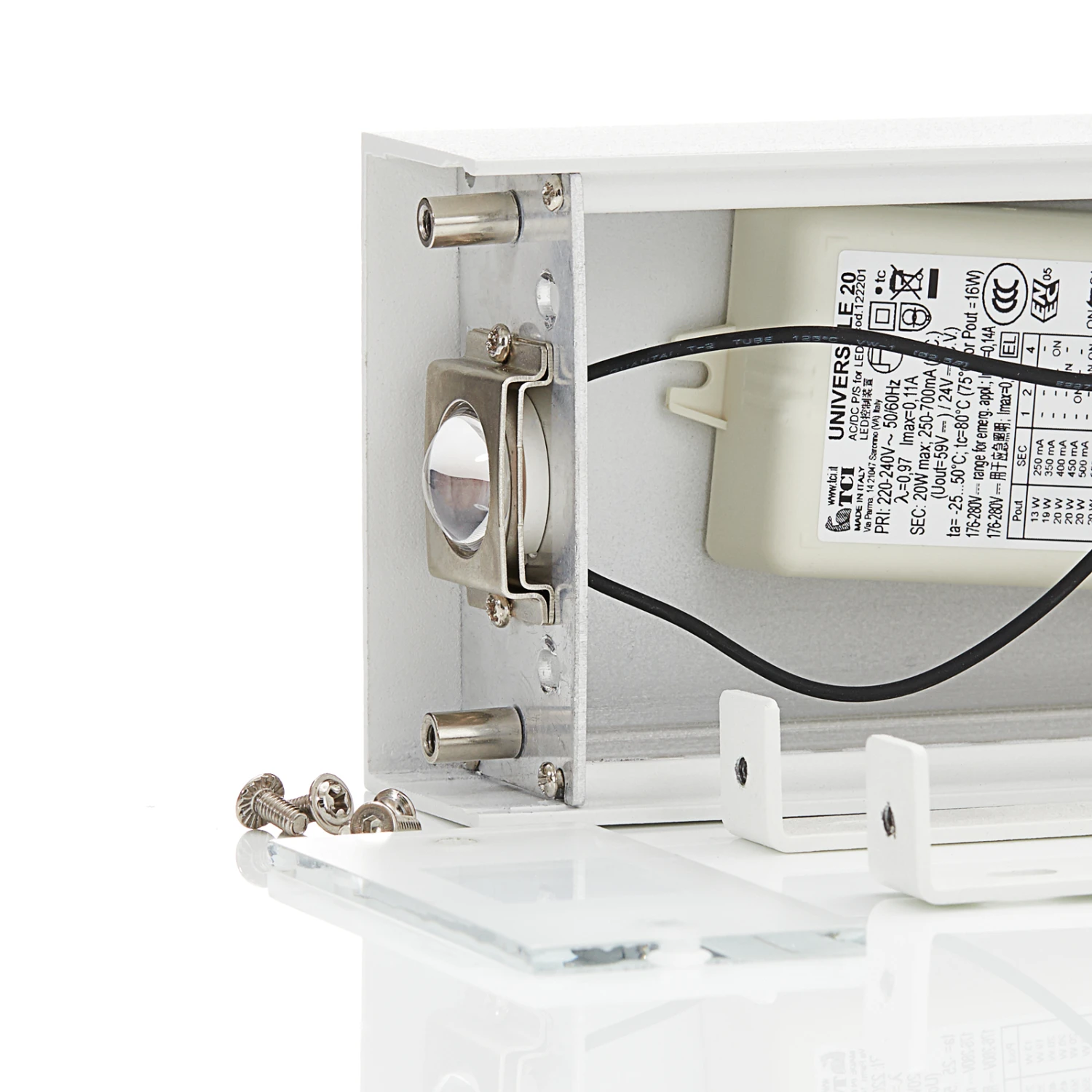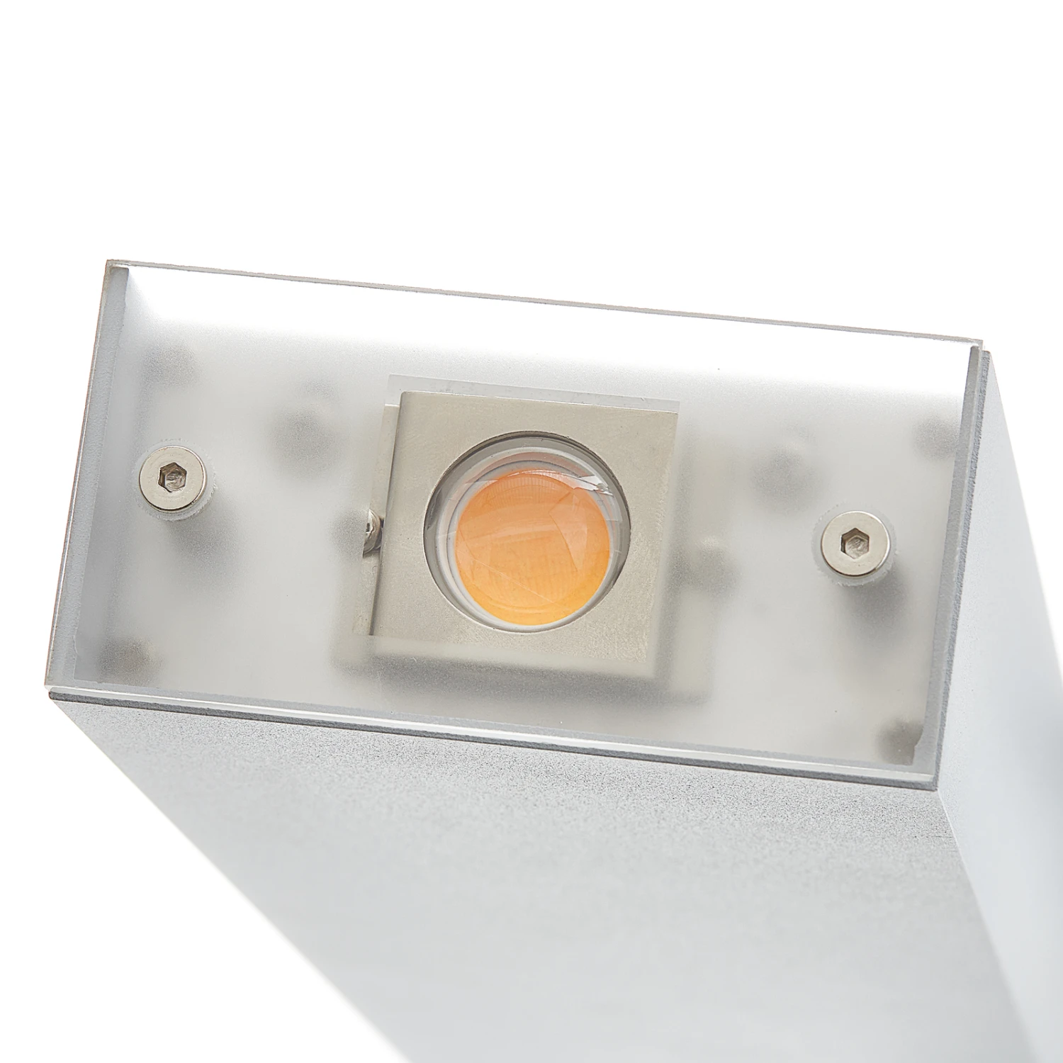 Der rechteckige Korpus der Wandleuchte Anita ist aus Stahl gefertigt und an beiden Enden mit LEDs ausgestattet. Die Leuchtmittel verteilen ihr warmweißes Licht von der Decke bis zum Boden. Über den LEDs sind Diffusoren aus satiniertem Glas angebracht, die für eine gleichmäßige Verteilung des intensiven Lichts sorgen. Mit ihren geometrischen Formen und den verwendeten Materialien wirkt die Leuchte Anita modern, dennoch passt sie mit ihrer schlichten Erscheinung zu unterschiedlichen Einrichtungen.