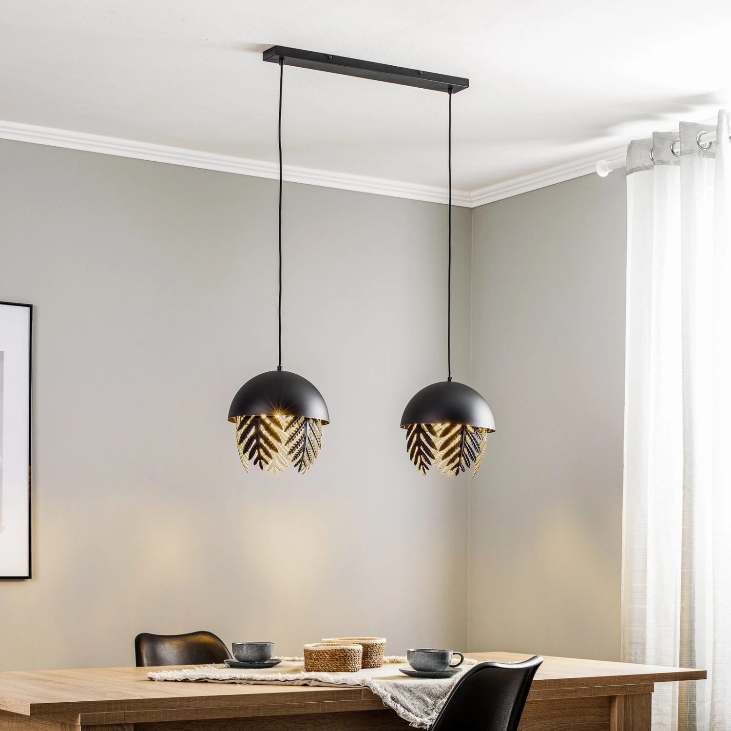 Zweiflammige Pendelleuchte Aparas mit ansprechender Blattdeko, exklusives Design