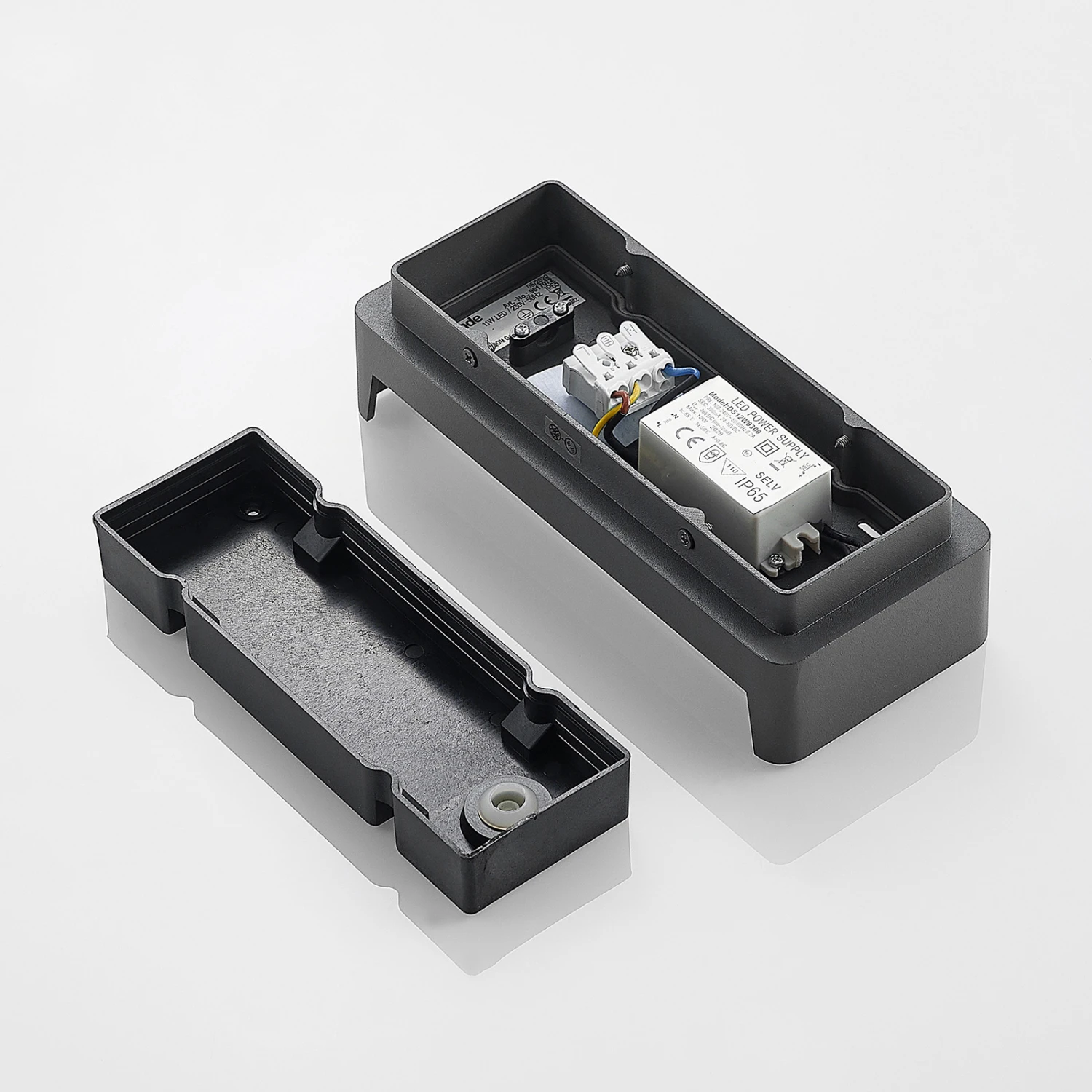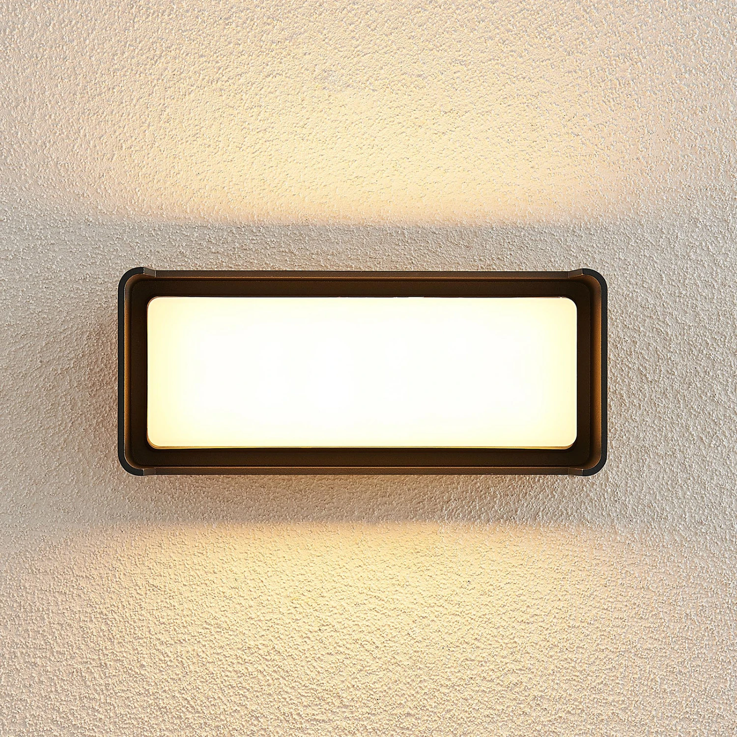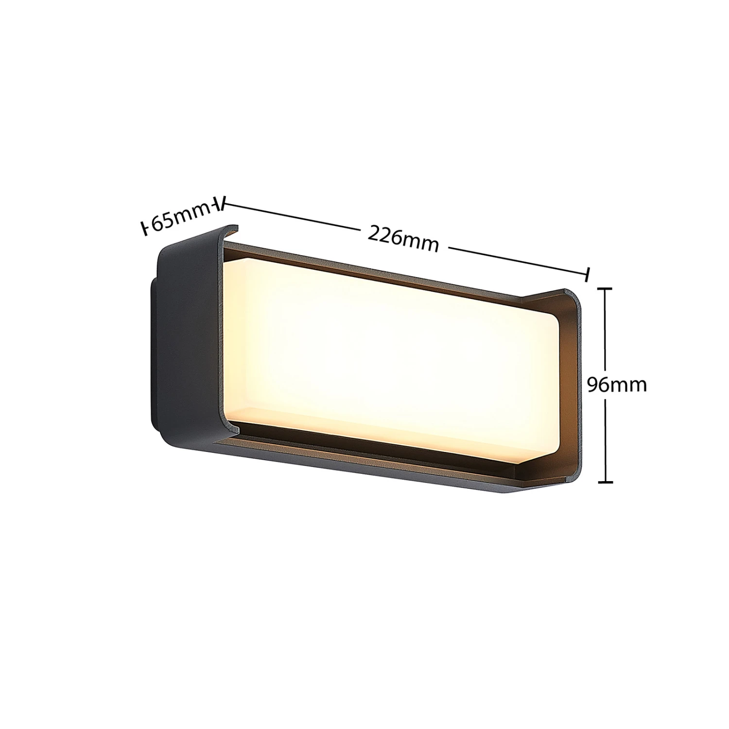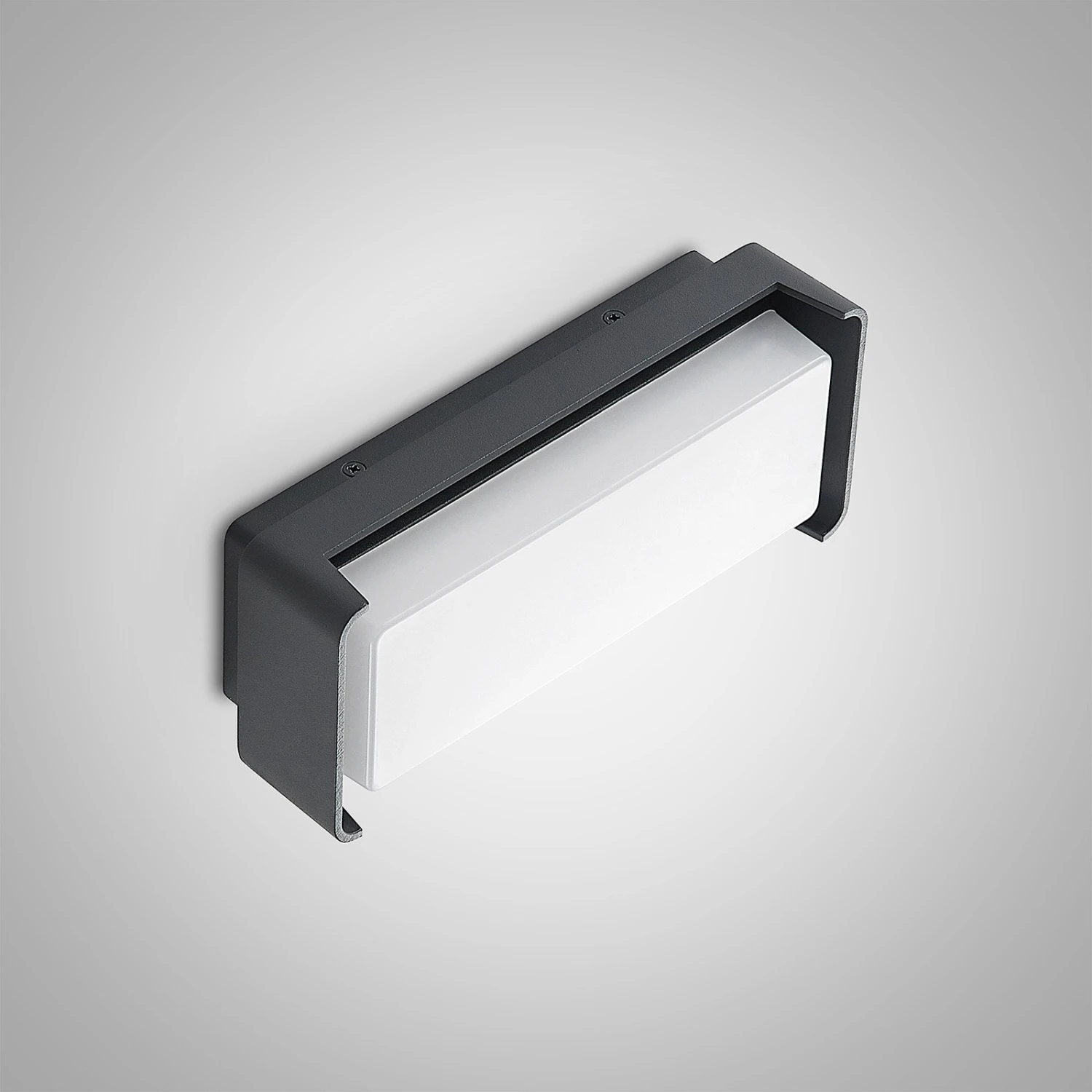 Eine einfache eckige Form kennzeichnet die praktische LED-Außenwandleuchte Babet. Sie besteht aus einem dunkelgrauen Korpus aus Aluminium, der mit einem opalweißen Diffusor ergänzt wird. Hinter diesem versteckt sich die leistungsstarke LED-Technik, die mit einem warmweißen Licht gleichmäßig und energieeffizient die Umgebung erhellt. Dank der hohen Schutzart von IP65 ist Babet als Außenleuchte staubdicht und gegen Strahlwasser geschützt, sodass sie überall im Außenbereich, ob Haus, im Garten oder an der Garage montiert werden kann.