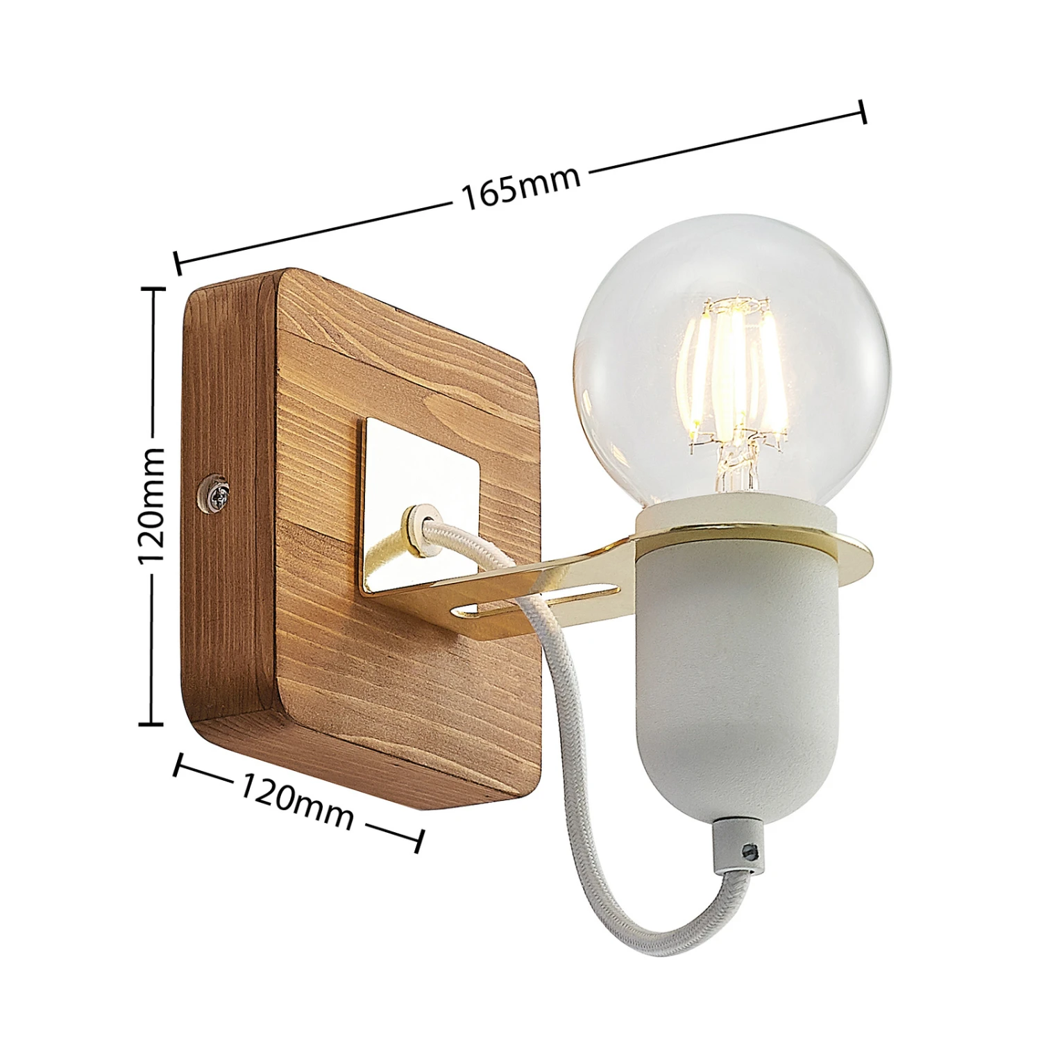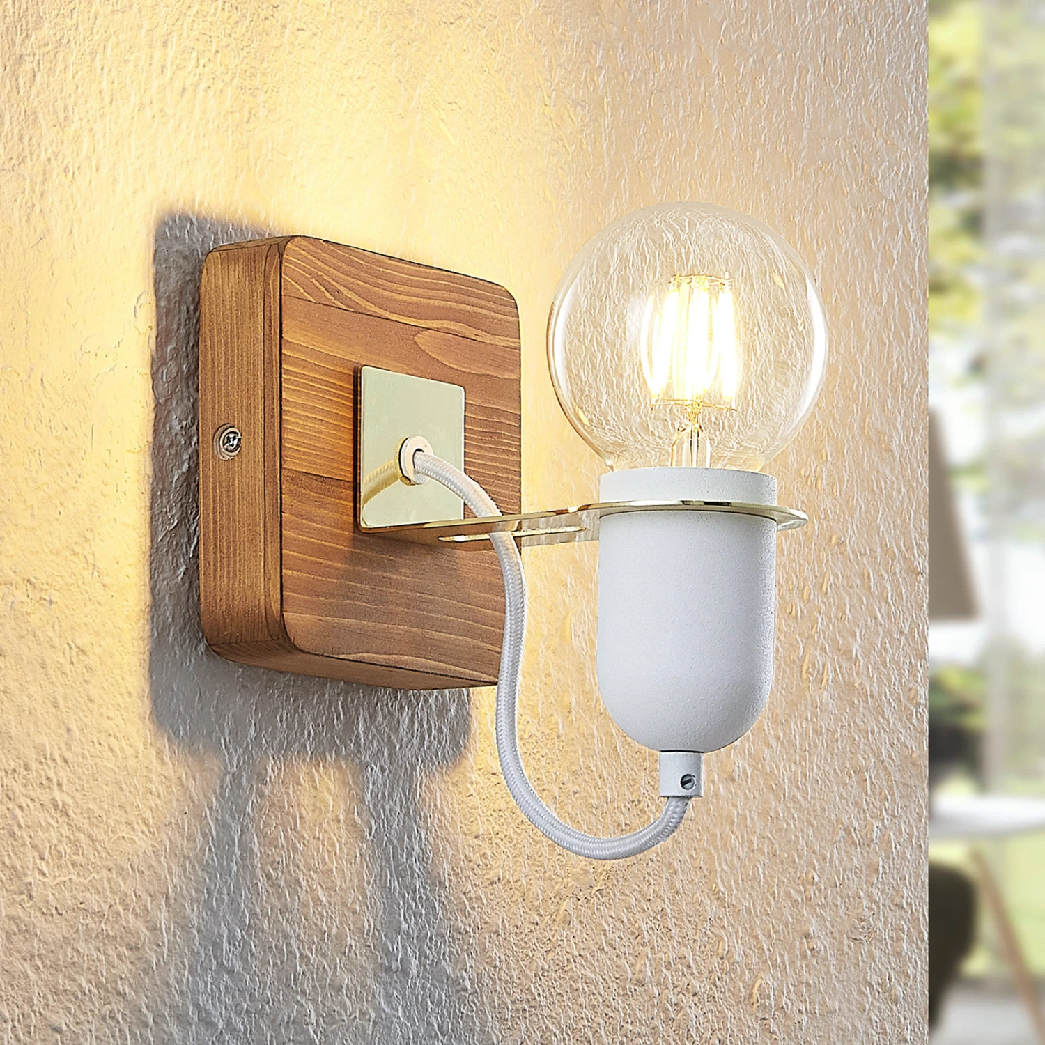 Markanter Wandspot Becky aus Kiefernholz und Eisen in Weiß