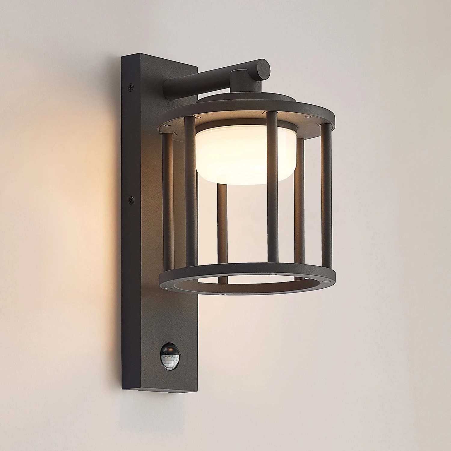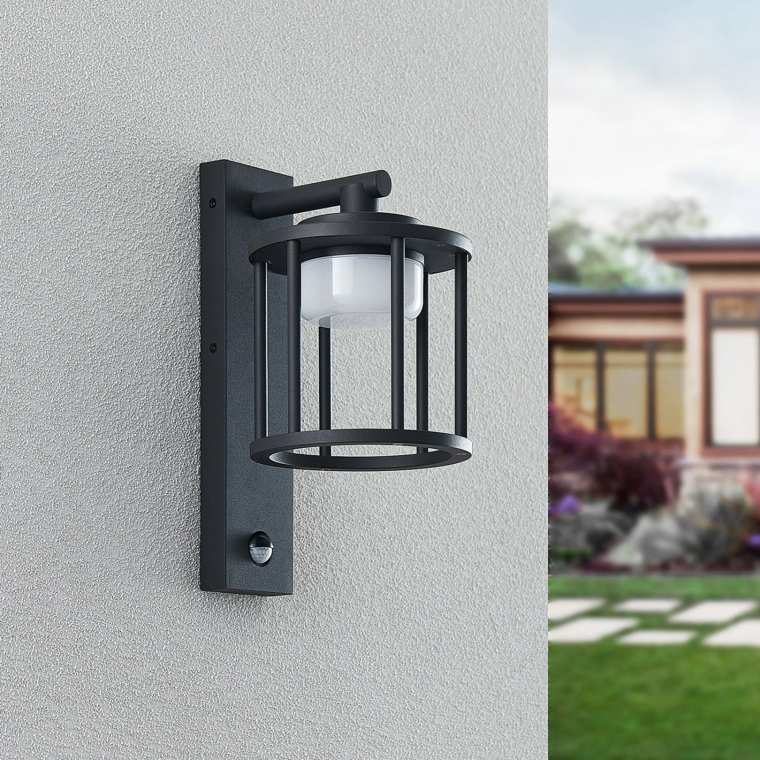 Prägnante Außenwandleuchte Benerike in Dunkelgrau mit Bewegungssensor