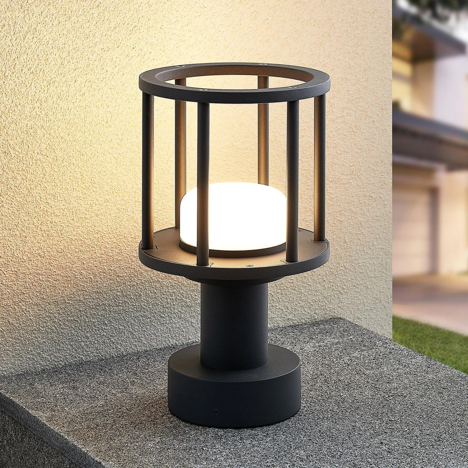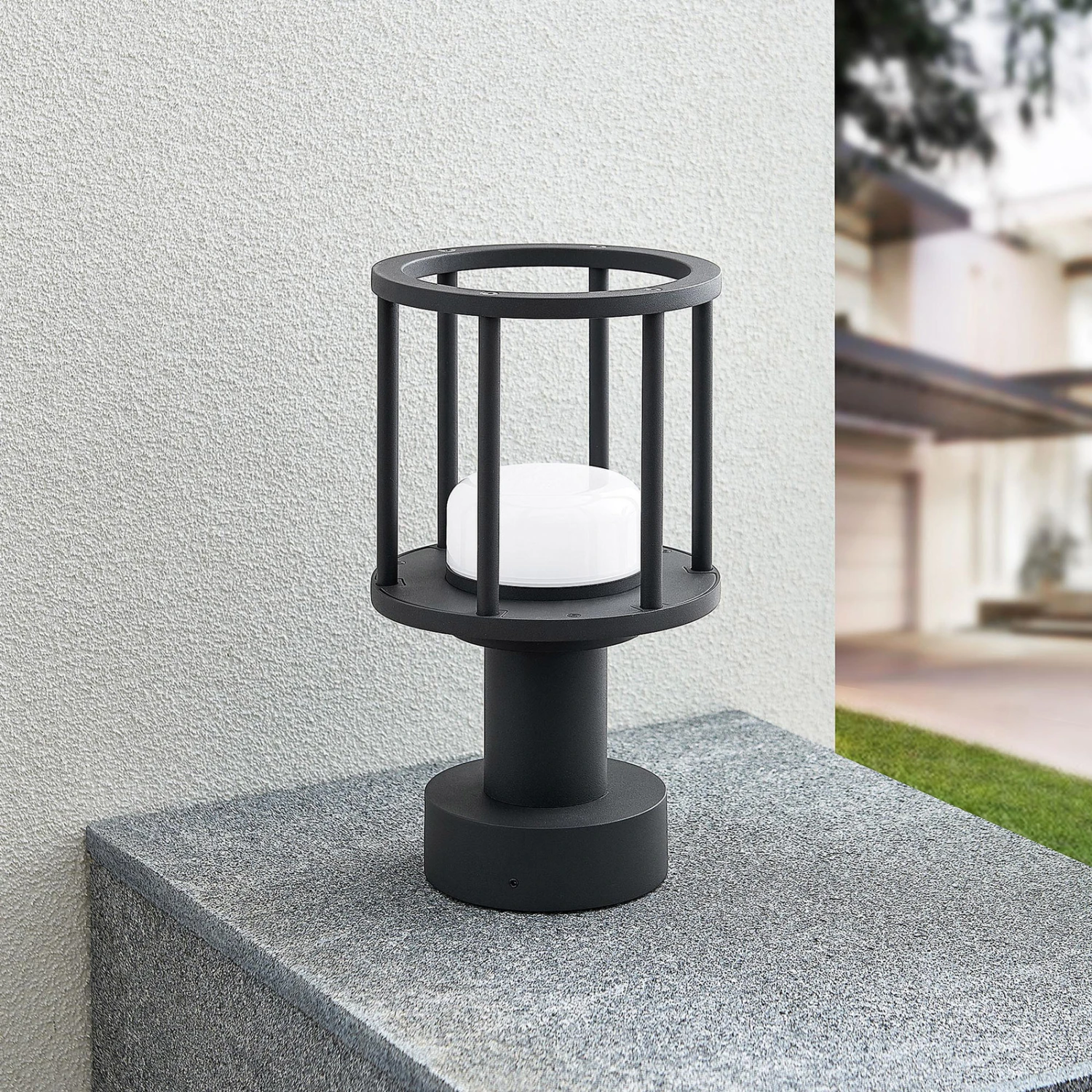 Dunkelgraue Sockelleuchte Benerike aus Aluminium mit robustem Charakter
