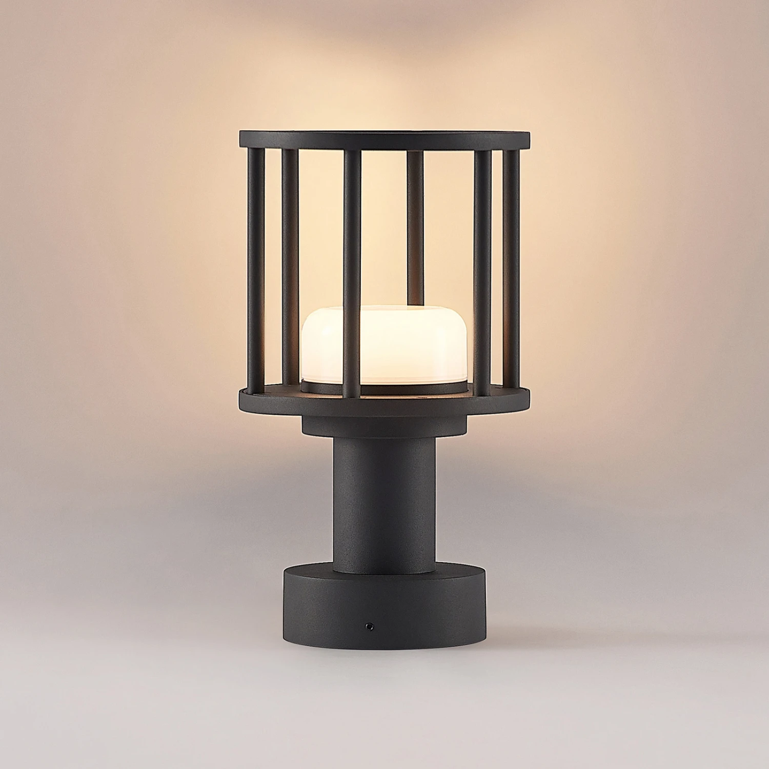 Die Sockellampe Benerike schafft es, selbst bei Dunkelheit einen Garten oder eine Einfahrt perfekt in Szene zu setzen. Ihre Leuchtenkörper besteht aus Aluminium und besitzt eine dunkelgraue Oberfläche, welche sich unkompliziert in das Ambiente des Außenbereiches integriert. Ihr Leuchtenschirm ist zylinderförmig und besteht aus Streben, die einen Käfig andeuten und das einzusetzende Leuchtmittel umgeben. Diese Leuchtmittel können entsprechend der Vorgaben frei gewählt werden und somit kann die Entscheidung über Lichtintensität und Lichtfarbe den persönlichen Bedürfnissen angepasst werden. Für einen stimmigen Gesamteindruck kann Benerike mit weiteren Leuchten ihrer Serie kombiniert werden.