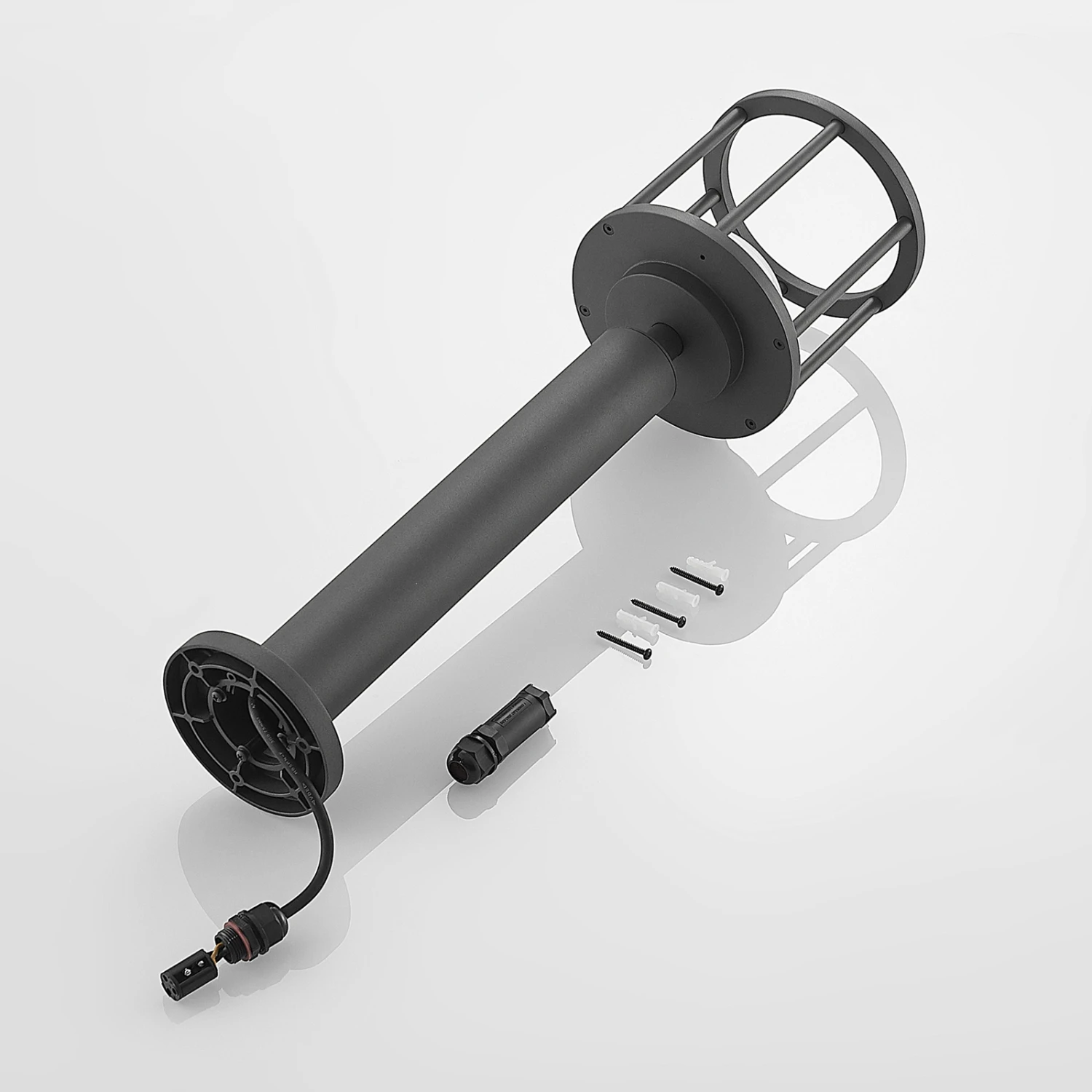 Benerike sorgt für eine zuverlässige Beleuchtung des Außenbereiches und schafft es selbst bei Nacht einen Weg perfekt in Szene zu setzen. Ihr Leuchtenkörper besteht auch Aluminium und besitzt eine dunkelgraue Oberfläche. An ihrer Spitze sitzt ein Leuchtenschirm in Zylinderform, der eine Art Käfig darstellt und mit entsprechenden Leuchtmitteln bestückt werden kann. Die Wegeleuchte Benerike kann also mit einem Leuchtmittel nach Wahl bestückt werden, wodurch die Lichtintensität und Lichtfarbe den persönlichen Bedürfnissen angepasst werden kann. Kombiniert man Benerike mit weiteren Leuchten ihrer Serie, so entsteht ein stimmiger Gesamteindruck.