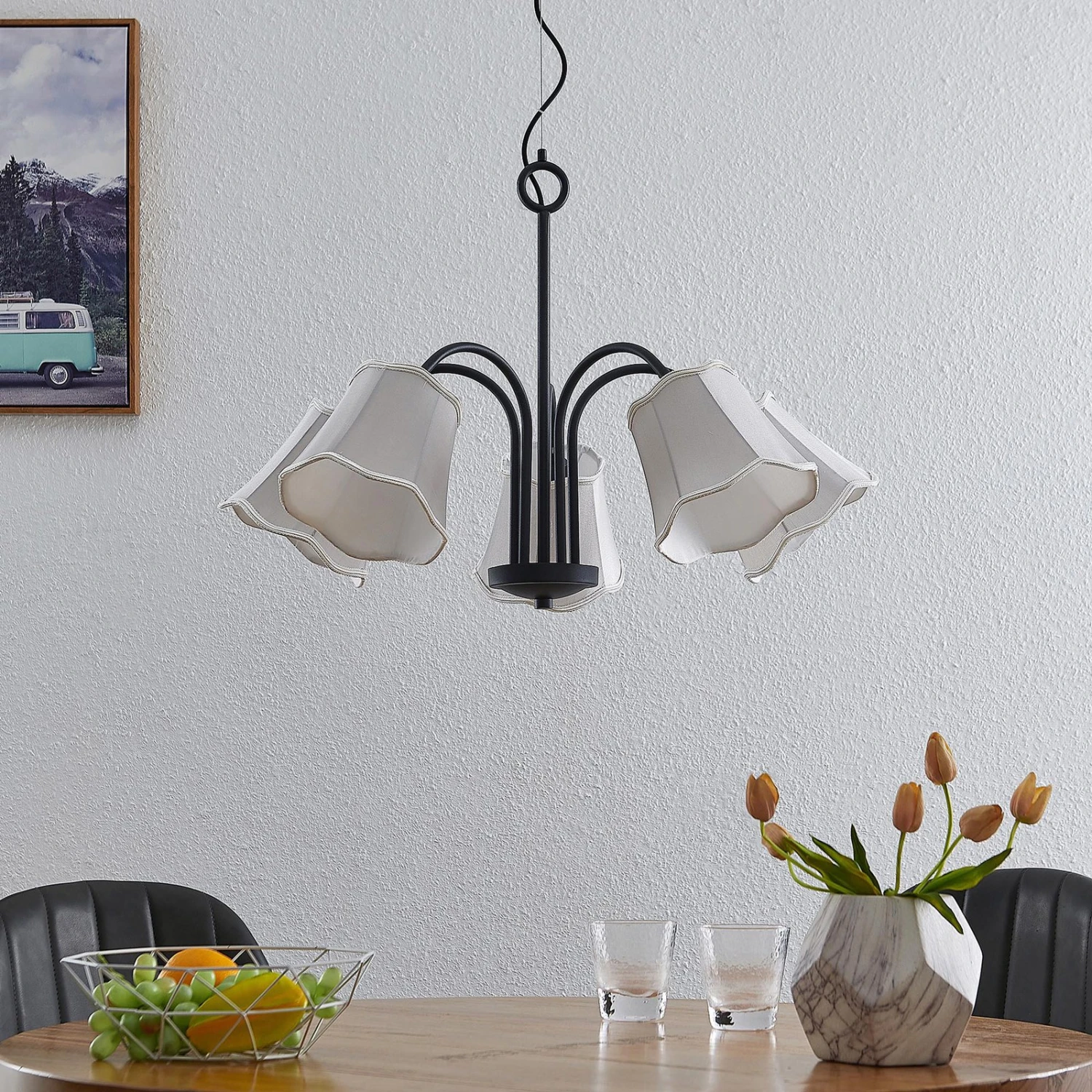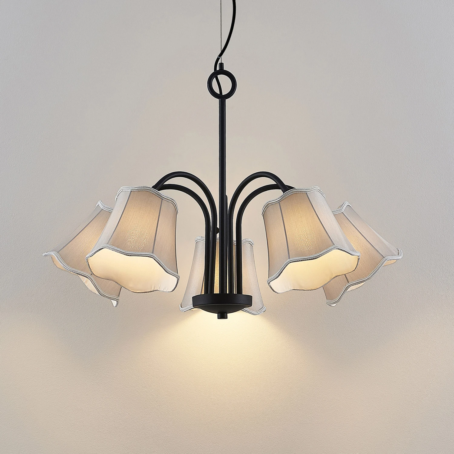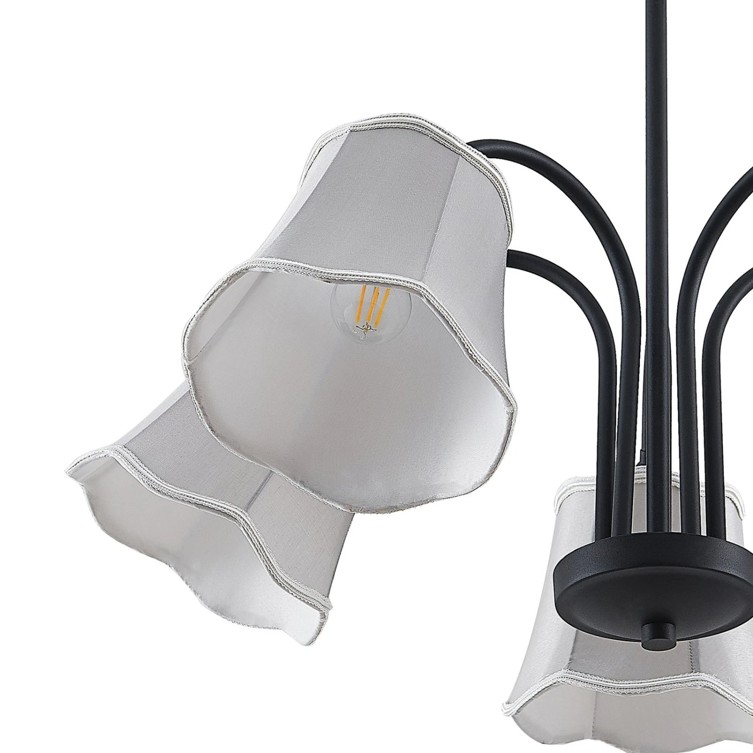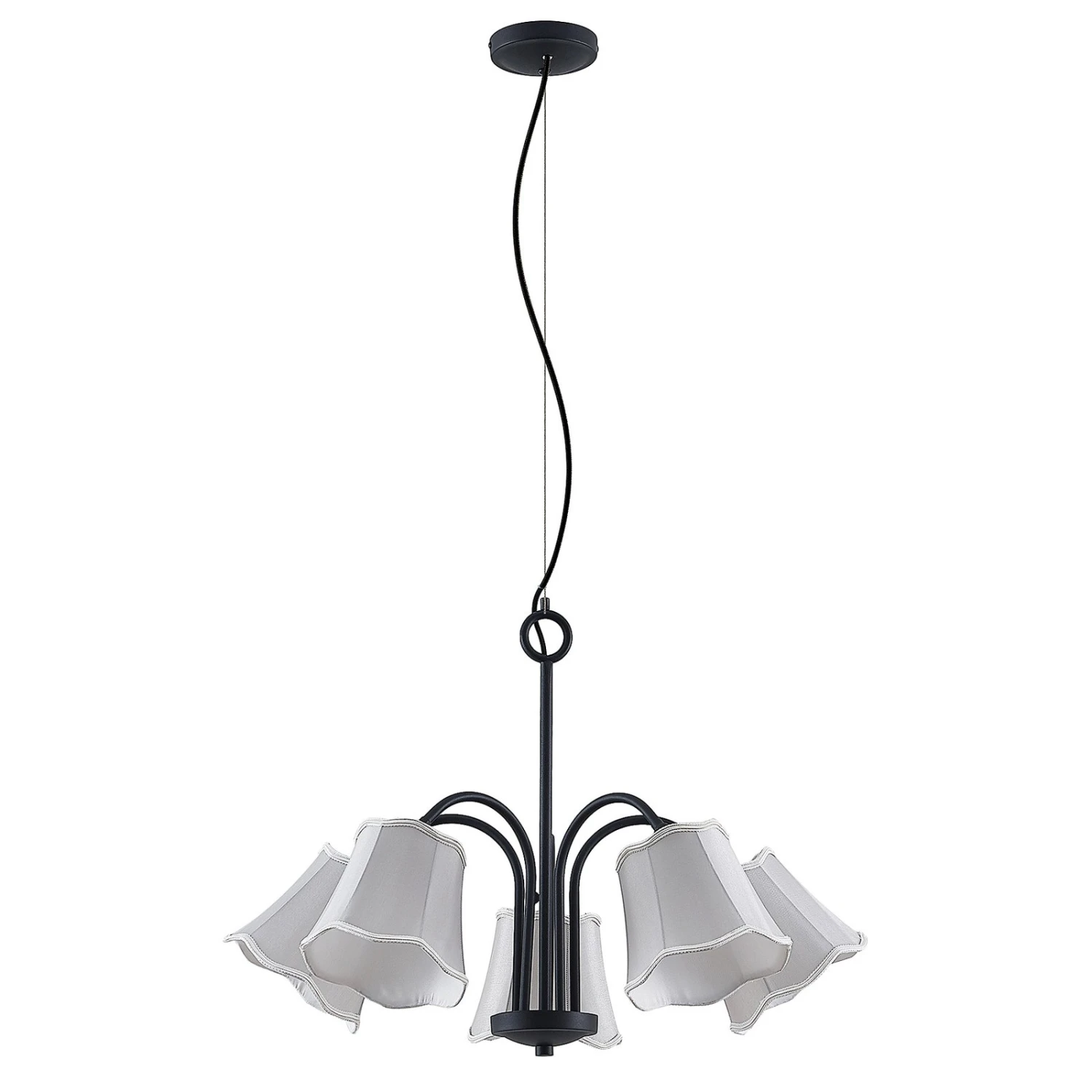 Silbergraue Pendellampe Binta in fünfflammiger Ausführung – exklusives Design mit traditionellem Look
