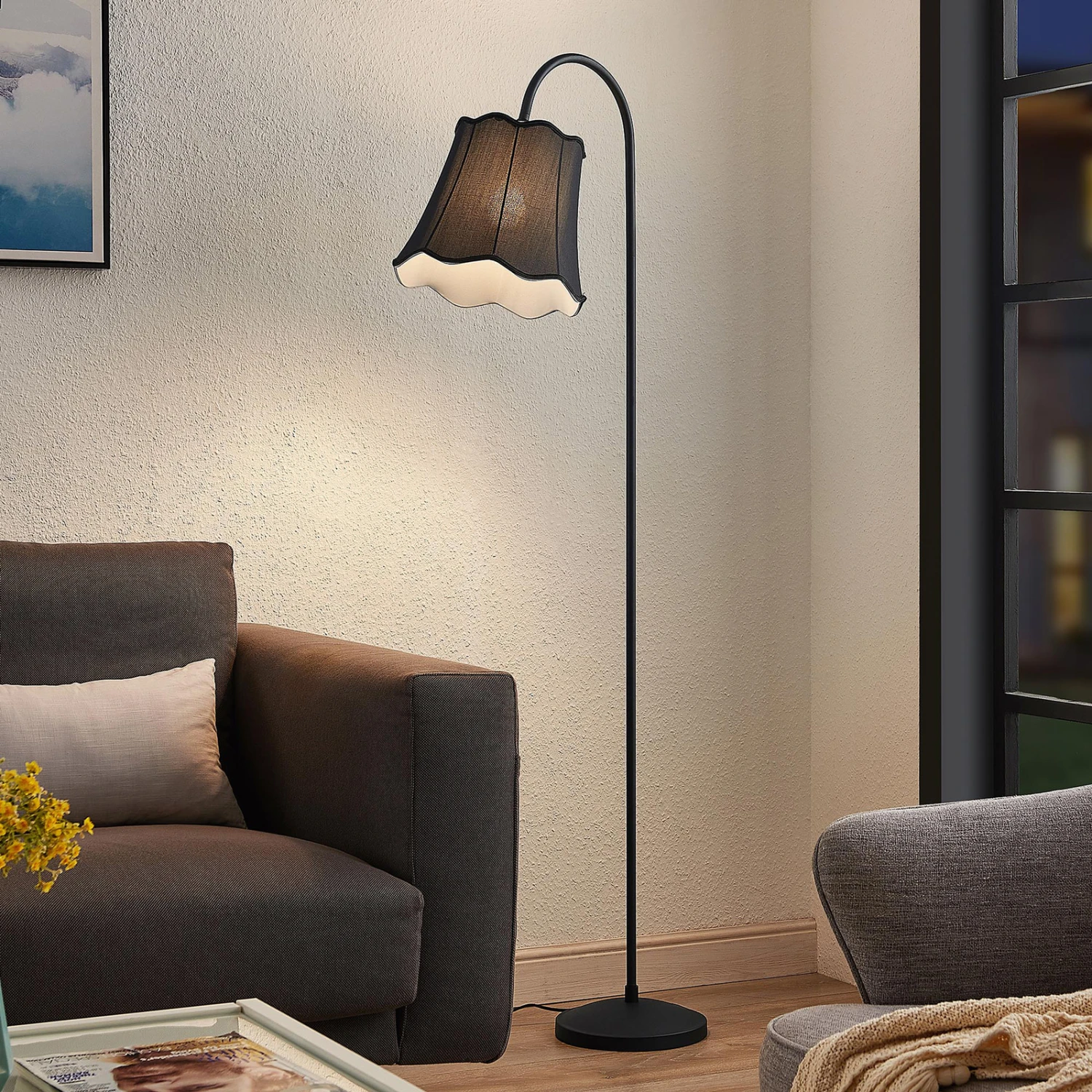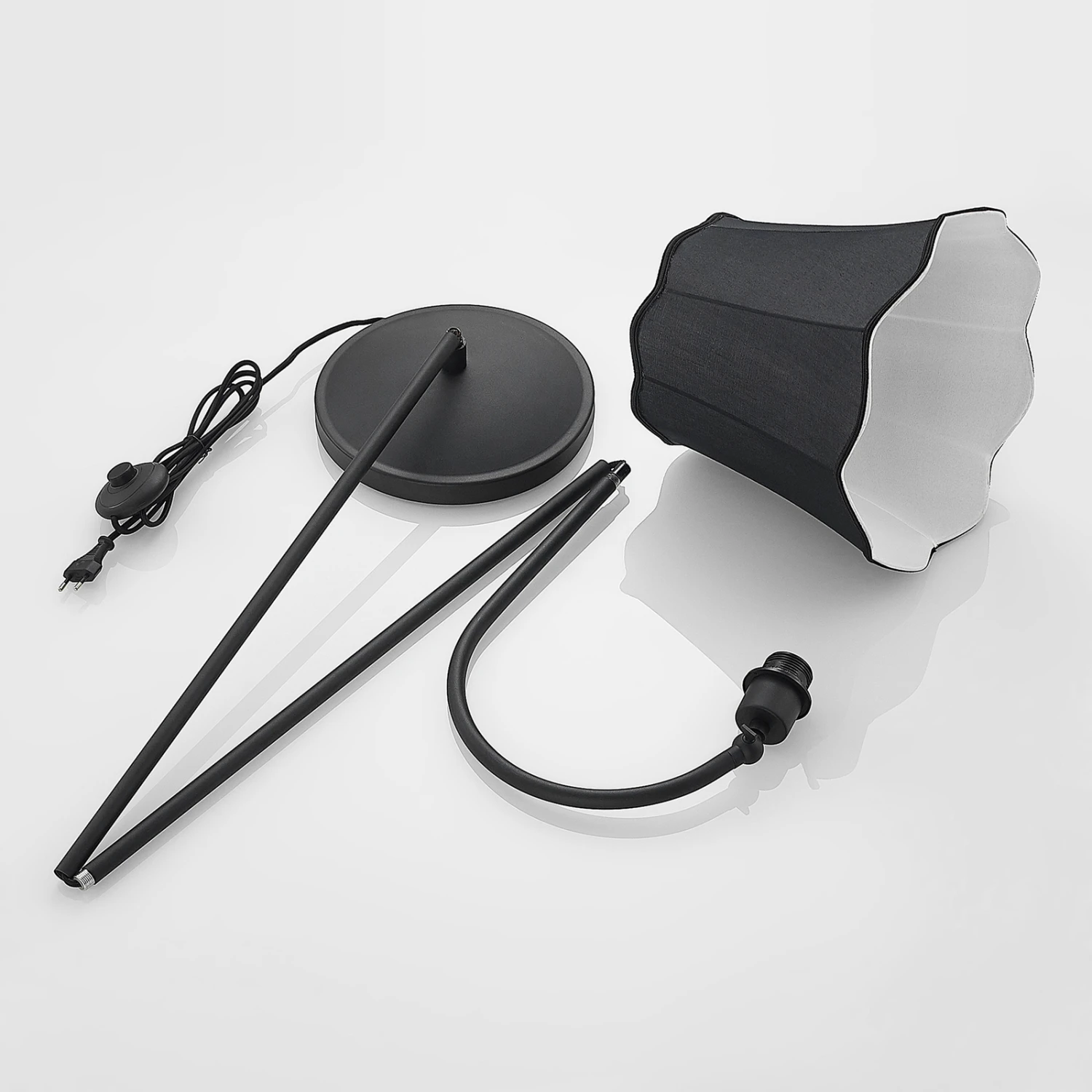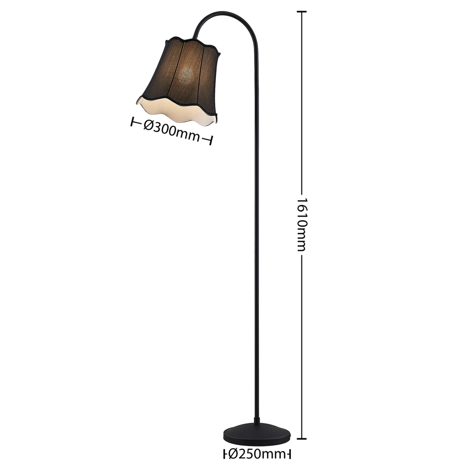 Schwarze Stoffstehlampe Binta mit nostalgischem Textillampenschirm – exklusives Design