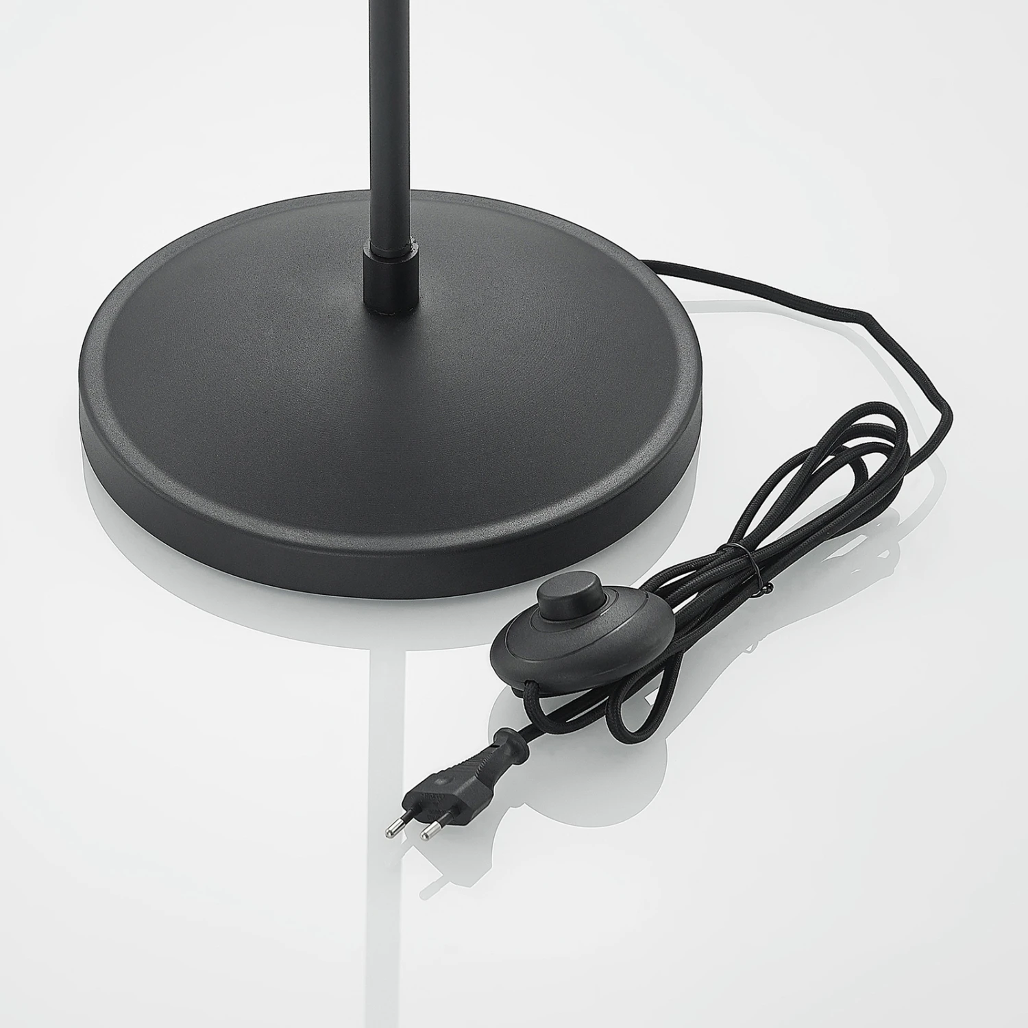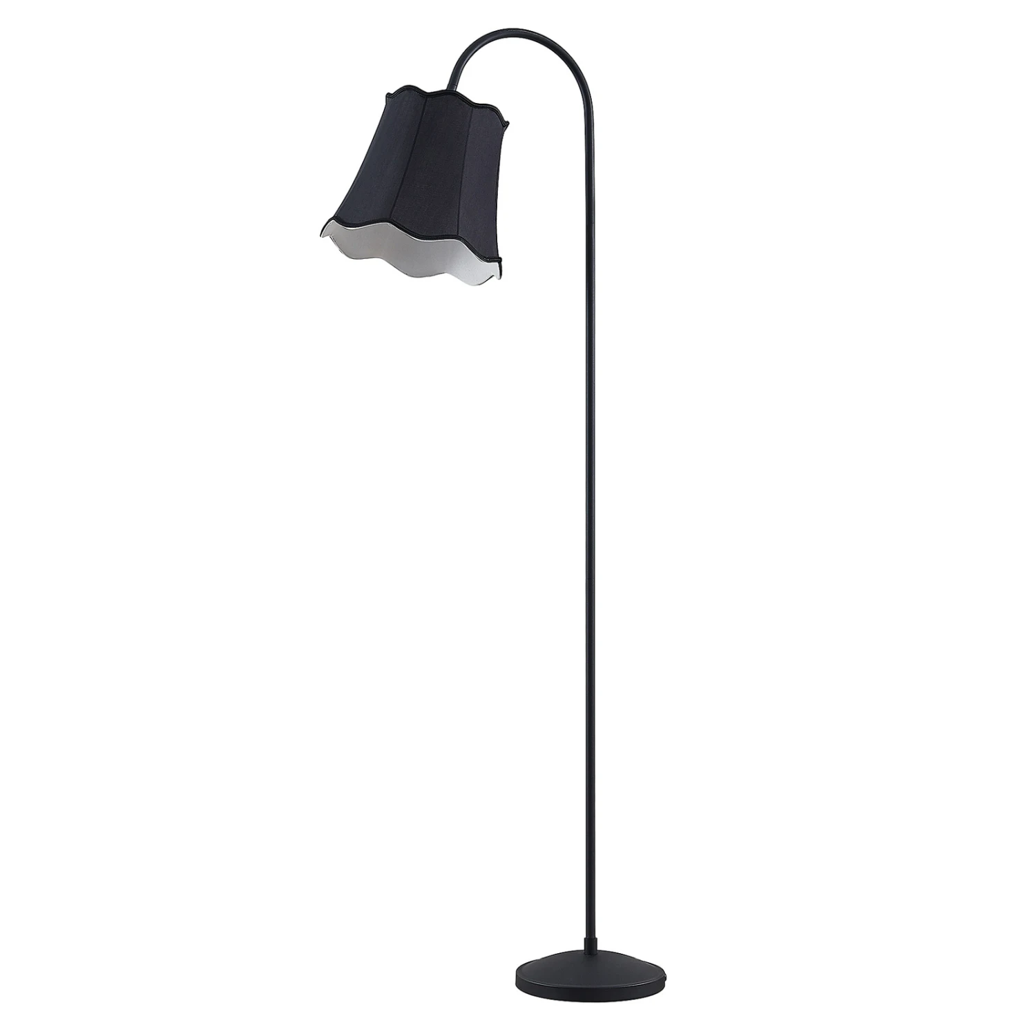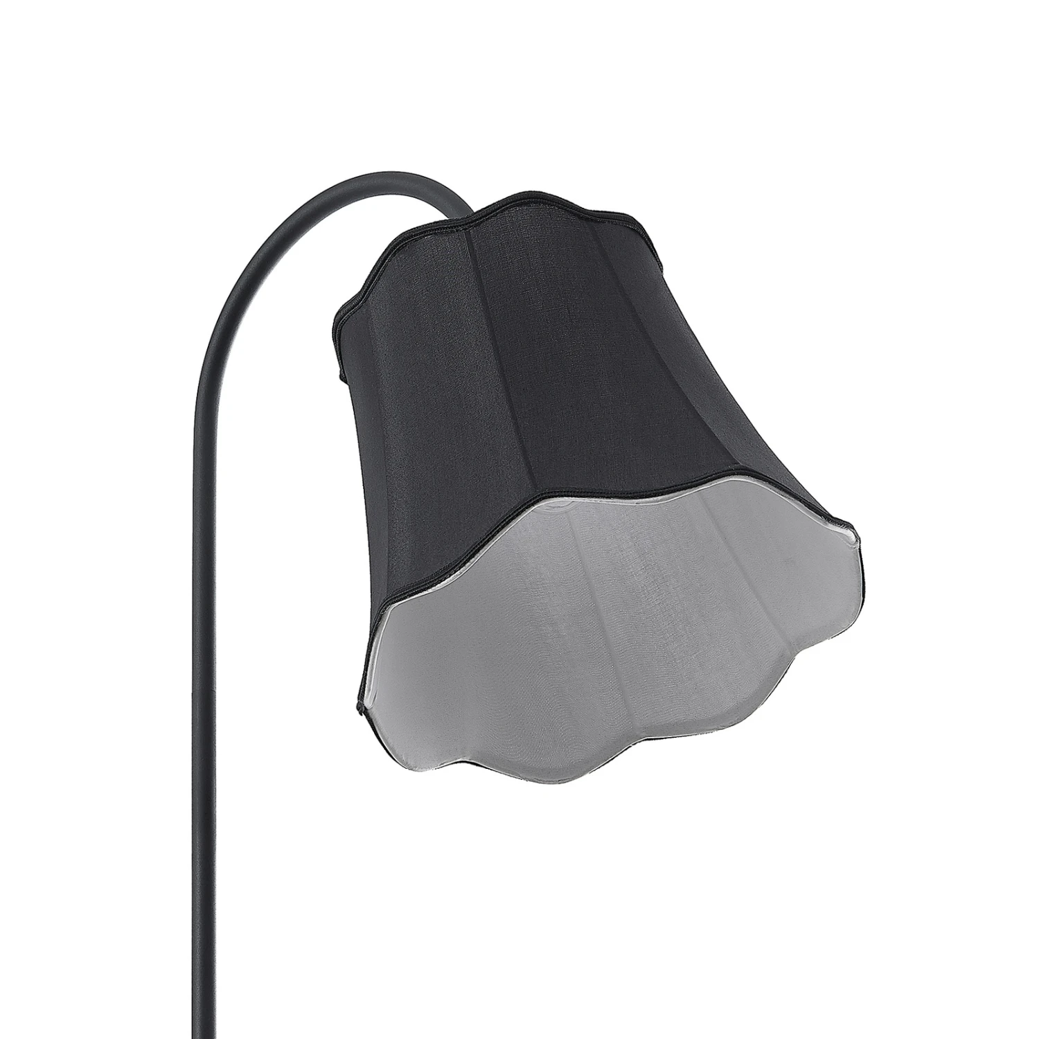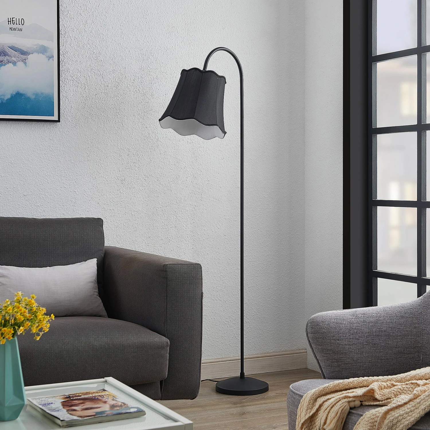 Schwarze Stoffstehlampe Binta mit nostalgischem Textillampenschirm – exklusives Design
