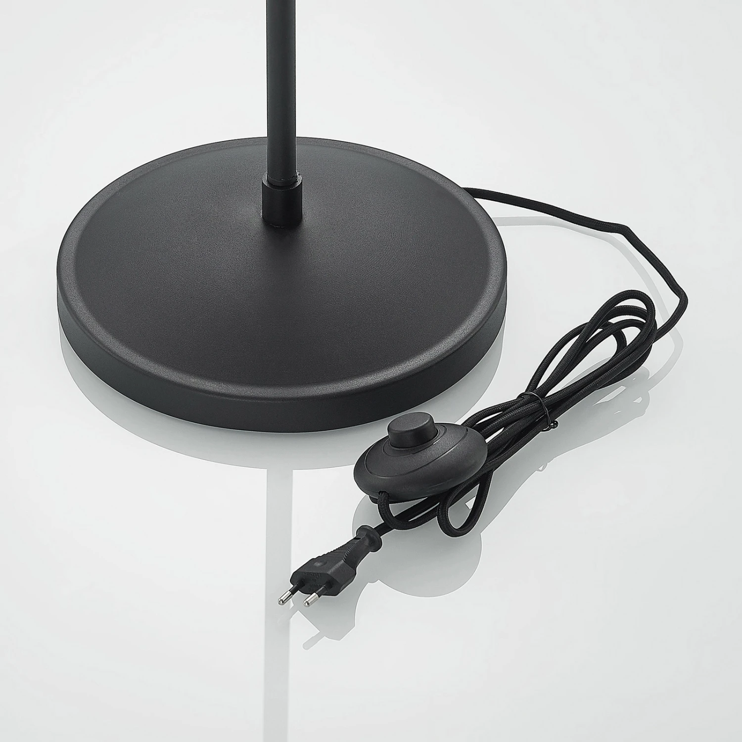 Diese Stehlampe hat einen schwarzen Eisenfuß, der in das Gestell übergeht und im oberen Teil gebogen ist, so dass der Schirm und der Lichtaustritt nach unten gerichtet sind. Damit kann diese Stehlampe auch gut neben einer Sitz- oder Liegegelegenheit positioniert werden, um dort als Leselicht zu dienen. Es handelt sich bei der Stoffstehleuchte um einen Lichtspender mit exklusivem Design, bei dem der silbergraue Lampenschirm der Blickfang ist. Dieser hat einen gewellten Rand und er erscheint damit besonders nostalgisch, weil er an die Lichtspender aus längst vergangenen Jahrzehnten erinnert und damit einen gewissen Vintage-Charakter in den Wohnraum bringt.