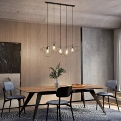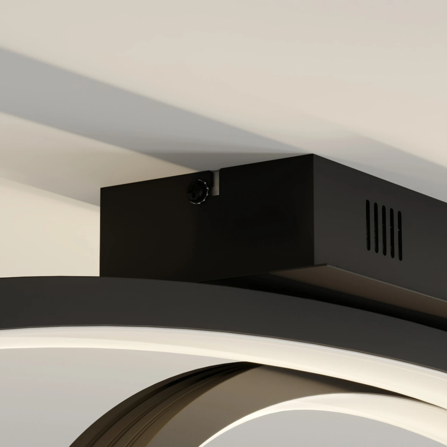 Die LED-Deckenlampe Bronwyn erinnert mit ihren Bögen an eine bekannte Kult-Rennbahn für Kinder. Allerdings schwebt diese nicht in luftiger Höhe. Die Leuchte ist auch nicht für das Kinderzimmer bestimmt, sondern ist ein modernes Beleuchtungsobjekt für das Wohnzimmer oder auch dem Flurbereich. Ein weiterer Pluspunkt ist, dass die Leuchte mit dem einfachen Wandschalter in drei Stufen (100% /50% /10%) gedimmt werden kann. Diese Leuchte ist alles andere als durchschnittlich, sondern ein sehenswerter Blickfang.