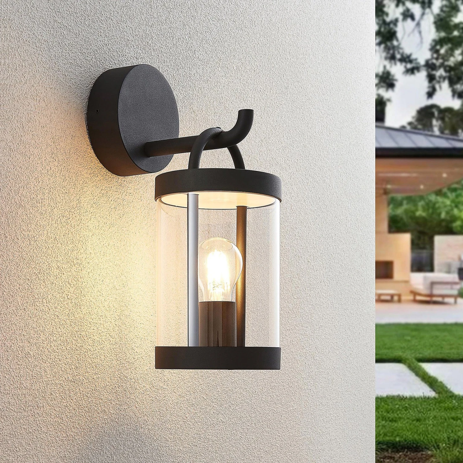 Das moderne Design der Außenleuchte Cassian überzeugt auf den ersten Blick. Die schlichte Laternenform mit Glasdiffusor besitzt im Innern eine E27-Fassung, in die vorzugsweise ein dekoratives LED-Filamentleuchtmittel eingesetzt werden sollte. Das Licht kann durch das Glas gleichmäßig und rundum abgegeben werden, was zu einer hellen und sicheren Beleuchtung im Dunklen führt. Aufgrund der robusten Bauweise und hohen Schutzart ist Cassian für viele Einsatzorte im Außenbereich geeignet.