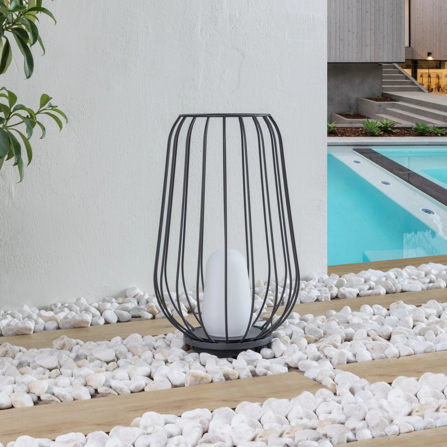 Chandan ist eine modische Ergänzung für die Terrasse oder den Garten. Die Terrassenleuchten besteht aus Aluminium und besitzt eine schwarze Farbgebung. Sie kann mit E27-Leuchtmittel bestückt werden – durch den freien Blick auf die Lichtquelle wird empfohlen ein Filament-Leuchtmittel zu verwenden, da dieses mit seinem besonderen Aussehen das Design der Leuchte weiter hervorhebt. Darüber hinaus ist Chandan mit der Schutzart IP54 ausgewiesen, das bedeutet, dass die Leuchte nachweislich gegen Staub und Spritzwasser geschützt ist und somit perfekt für den Außenbereich geeignet ist.