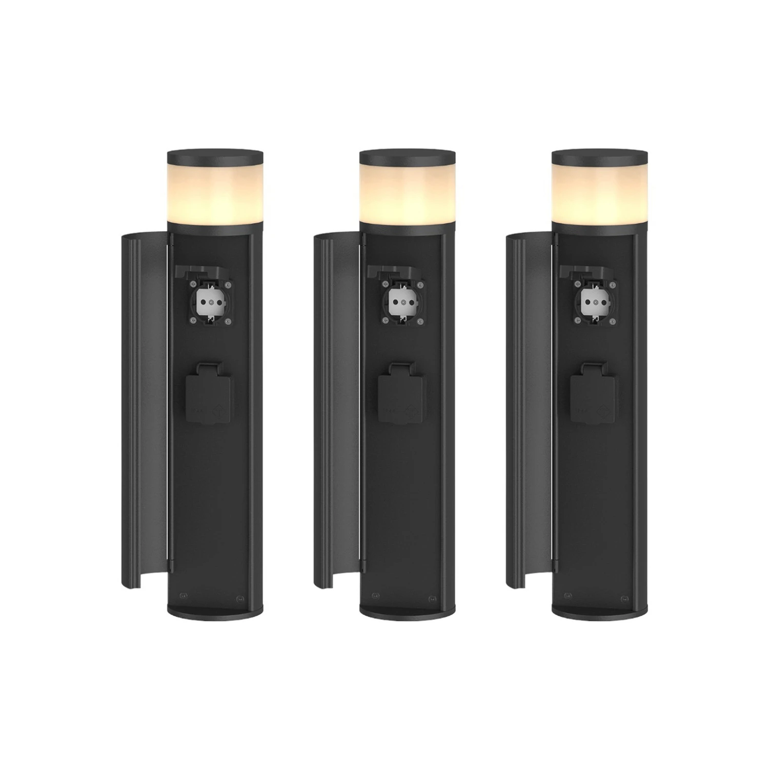 Sockelleuchte Corban mit zwei Steckdosen im 3er-Set