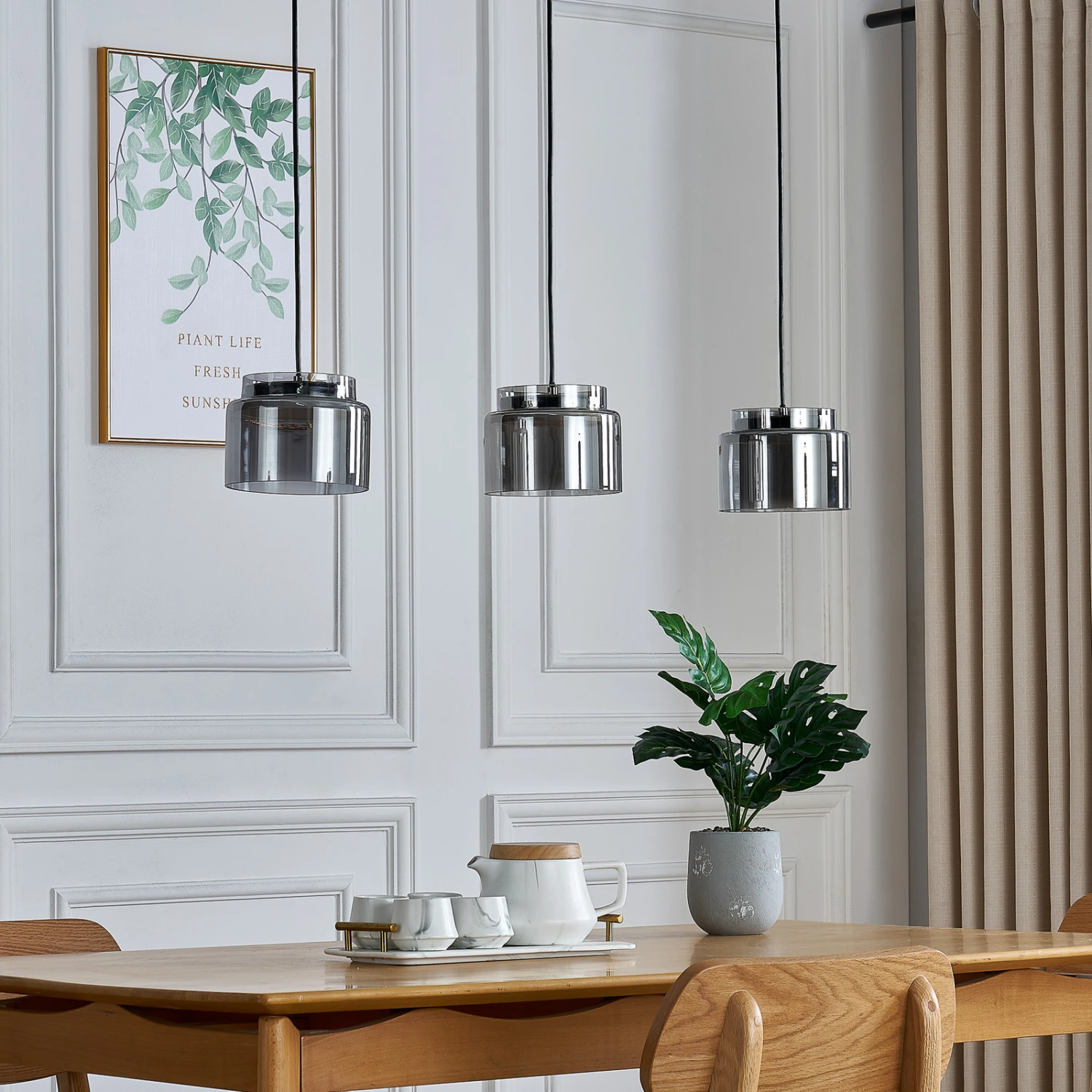 Dreiflammige Hängeleuchte Diano in modernem Design aus Eisen und Glas