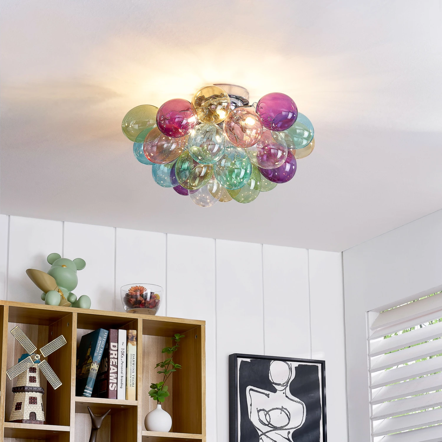 Bunte Deckenleuchte Diborah in markantem Design mit Glaskugeln