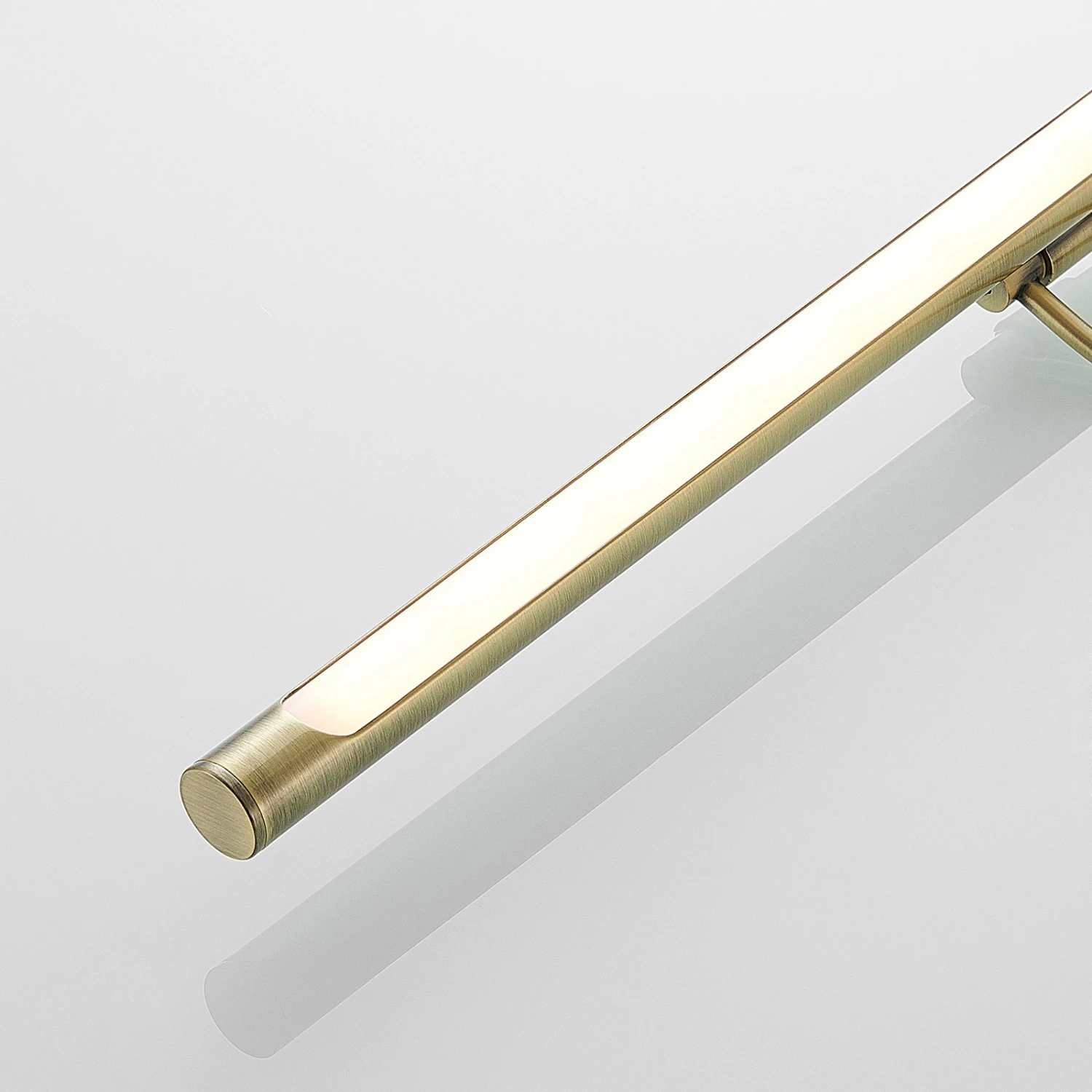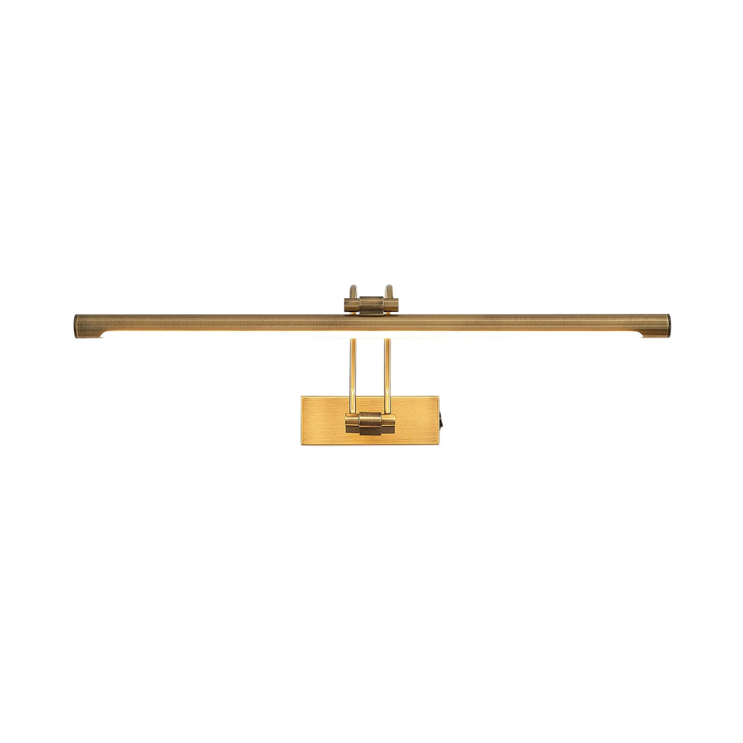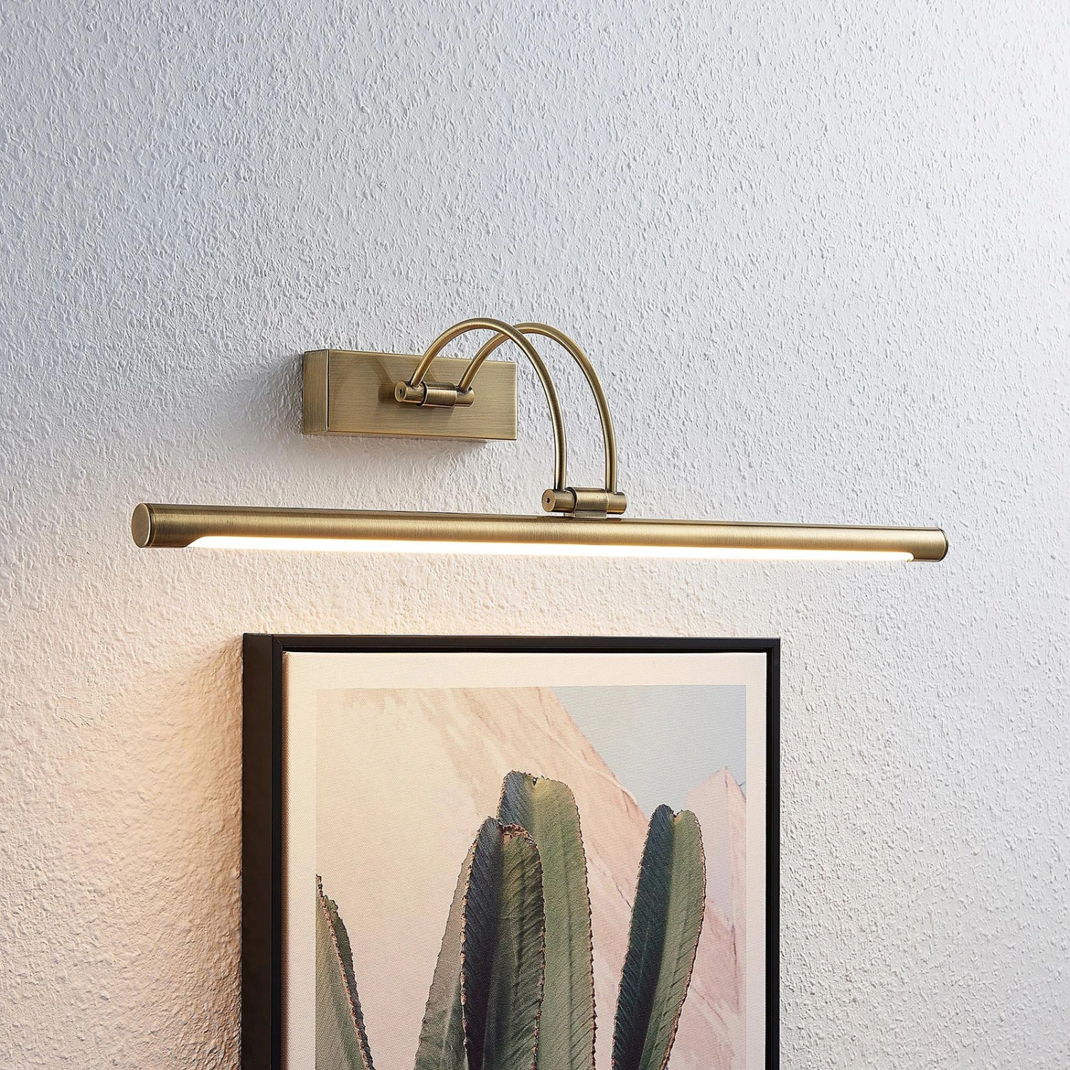 Der gebogene Arm und der lange, schmale Schirm sowie die Farbgebung in Altmessing geben der Bilderleuchte Dimitrij eine sehr elegante Erscheinung. Die Leuchte ist mit LEDs ausgestattet, die das zu beleuchtende Bild in ein warmweißes Licht tauchen, sodass die Farben besonders gut zur Geltung kommen. Zudem verfügen Schirm und Wandhalterung über Gelenke, mit denen die Ausrichtung des Lichtstrahls im Handumdrehen angepasst werden kann.