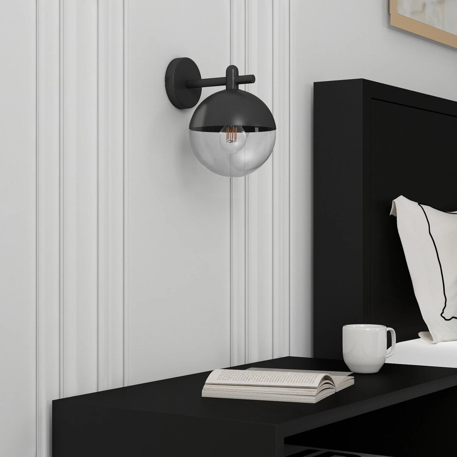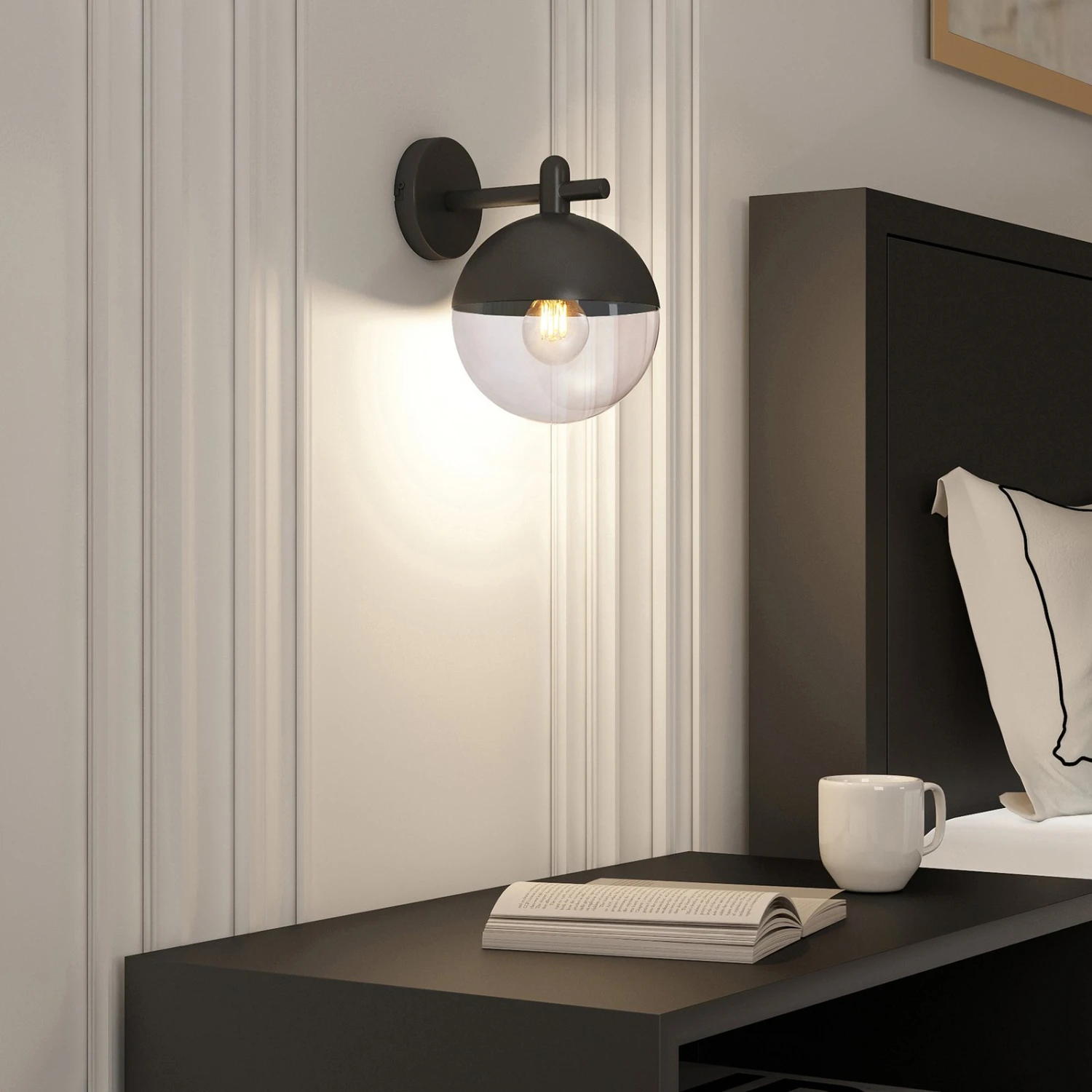 Edles Design für besondere Wohnräume: die Wandleuchte Dustian aus Klarglas und schwarzem Metall