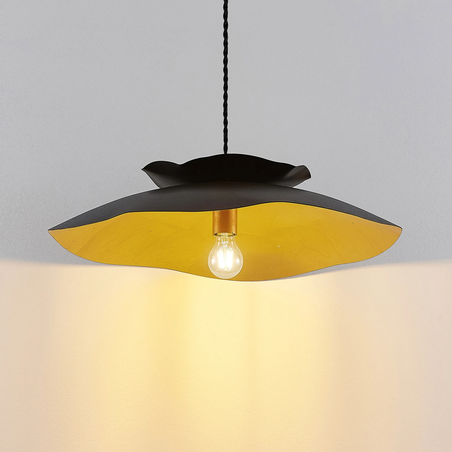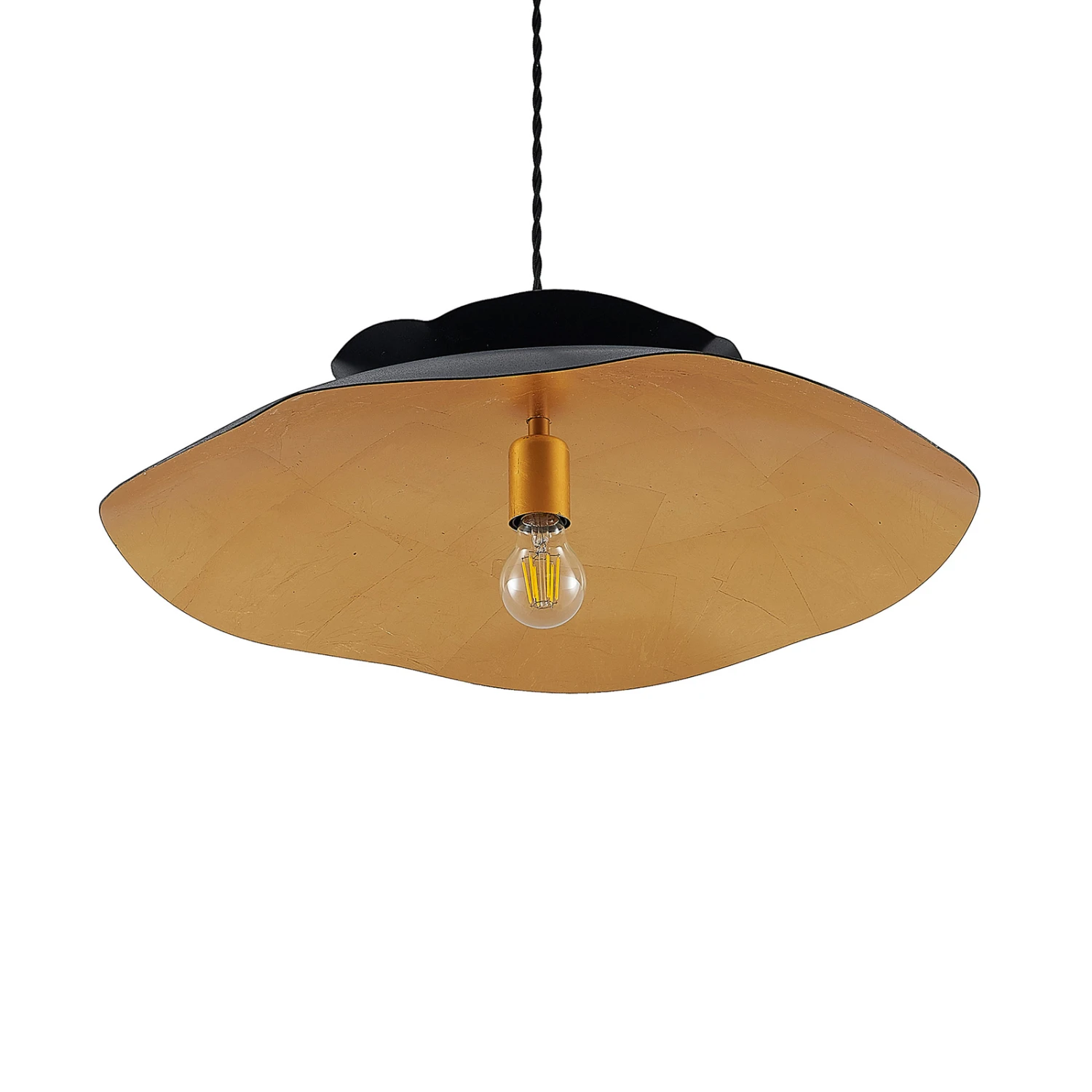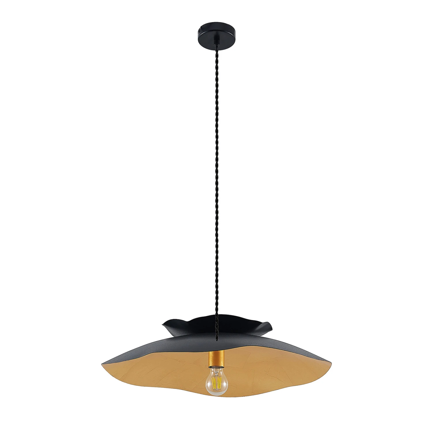 Hängeleuchte Elidan in zeitlosem Schwarz und Gold, mit unregelmäßigem Rand
