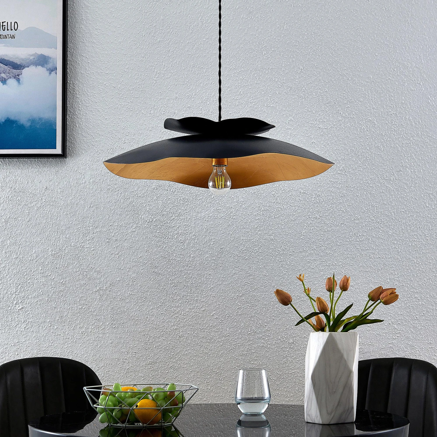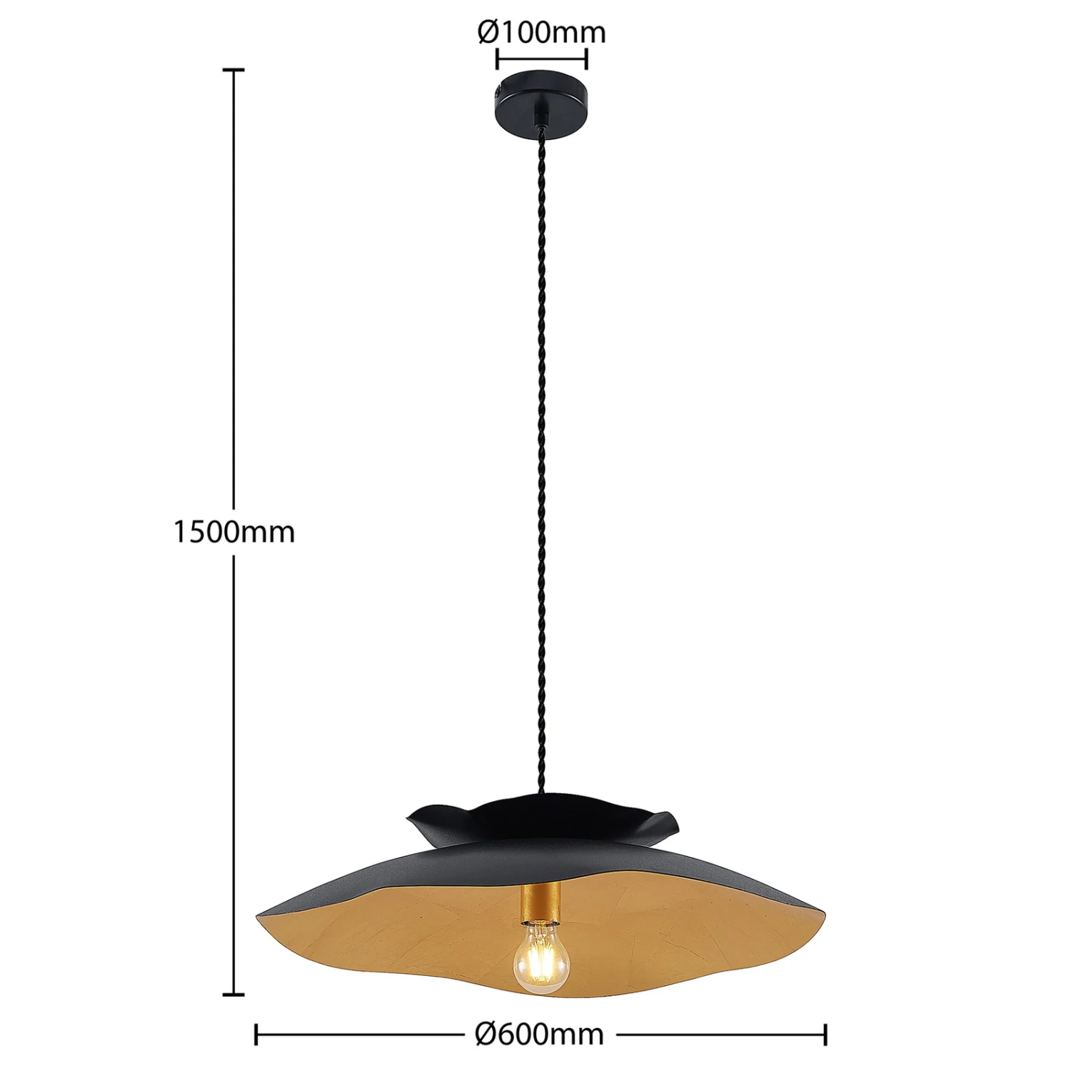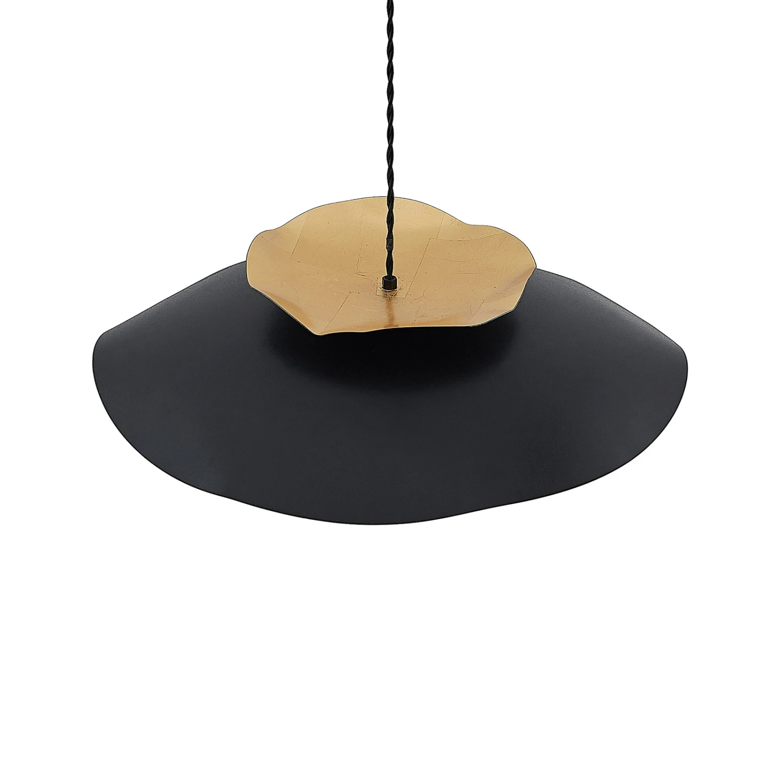 Hängeleuchte Elidan in zeitlosem Schwarz und Gold, mit unregelmäßigem Rand