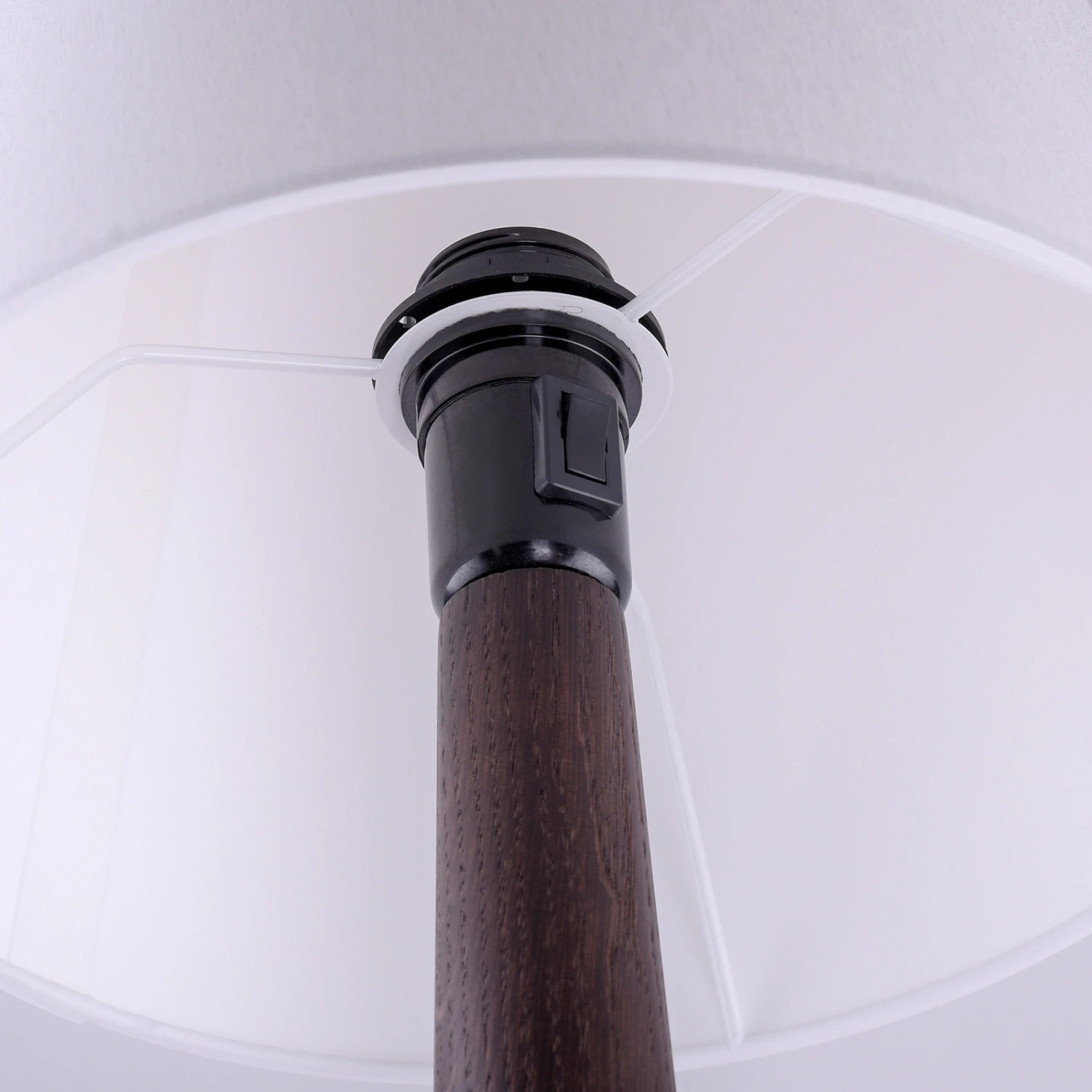 Hochwertige Materialien, zeitloses Design und eine zauberhafte Lichtwirkung, dies alles vereint die Tischleuchte Elif. Sie ist mit einem konischen Lampenschirm aus weißen Chintz ausgestattet, der auf einer ebenfalls kegelförmig gestalteten Holzsäule in Eiche kolonial thront. Dieser Gegensatz von Hell und Dunkel und von Holz und Stoff mache die Tischleuchte Elif so interessant.