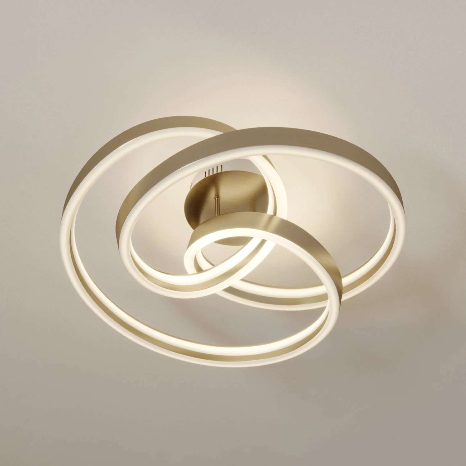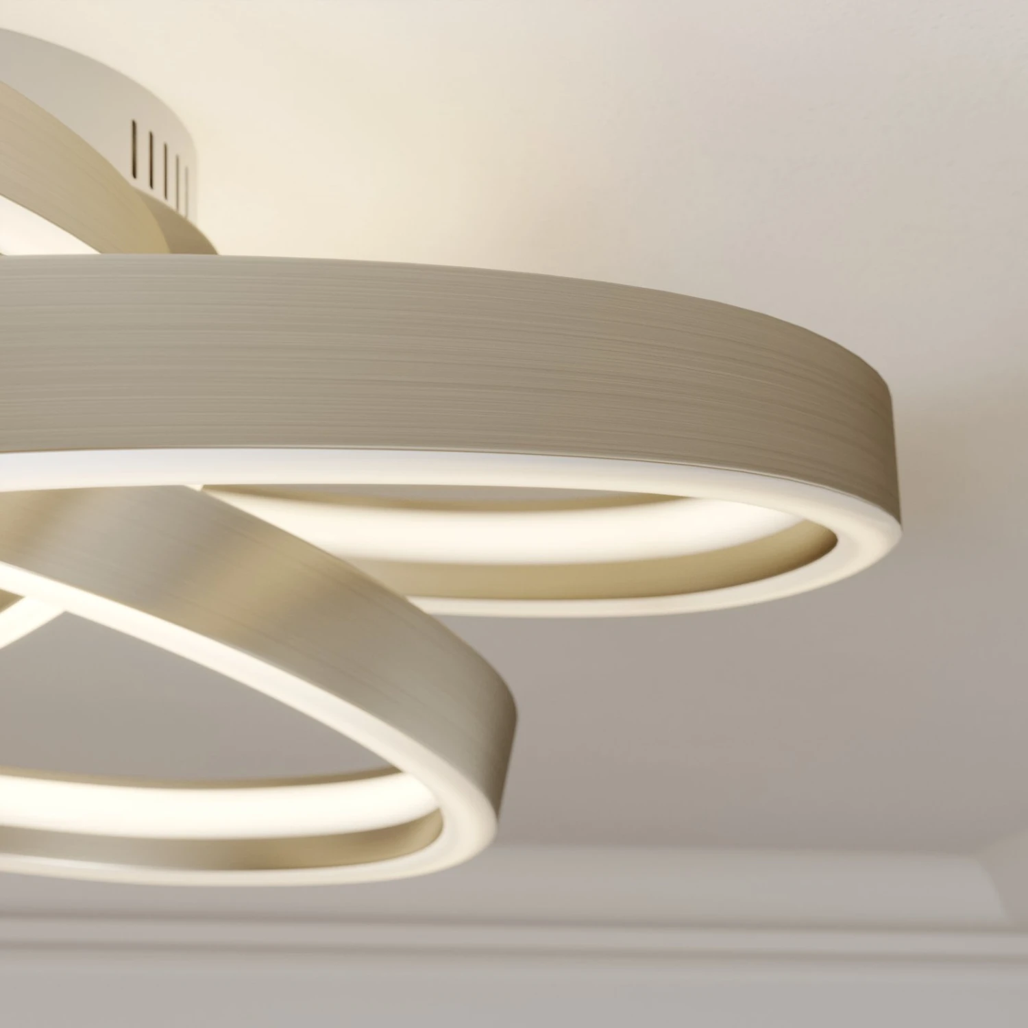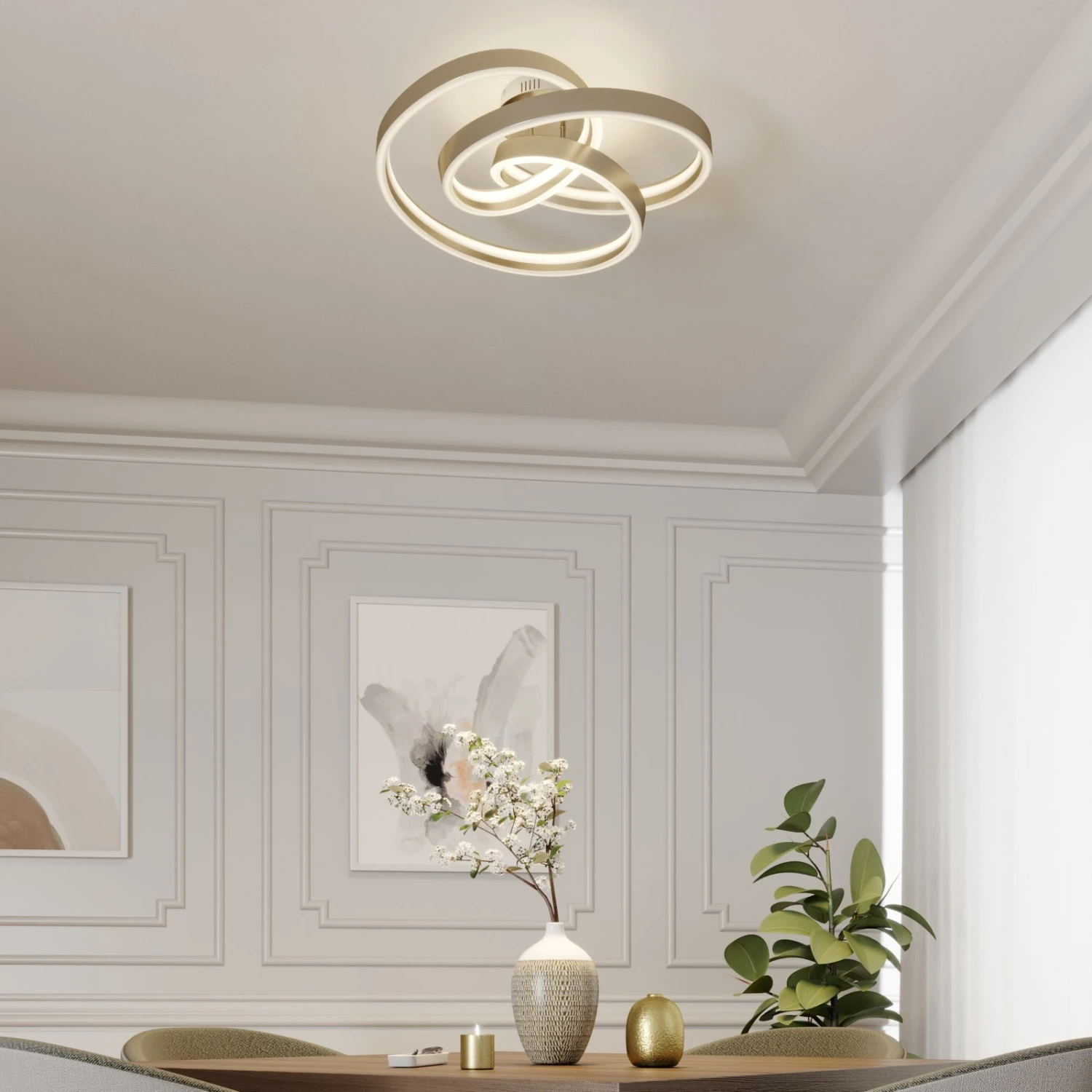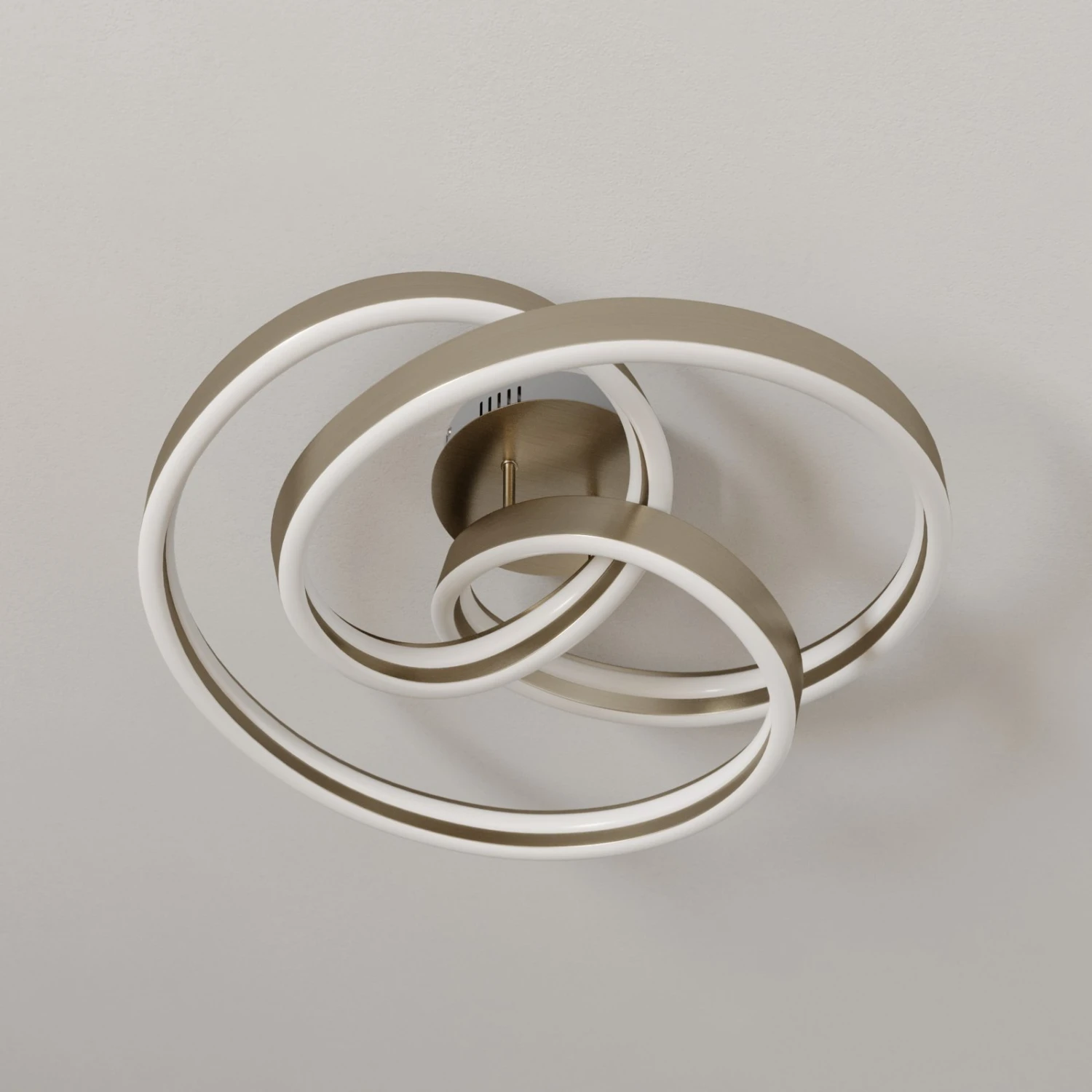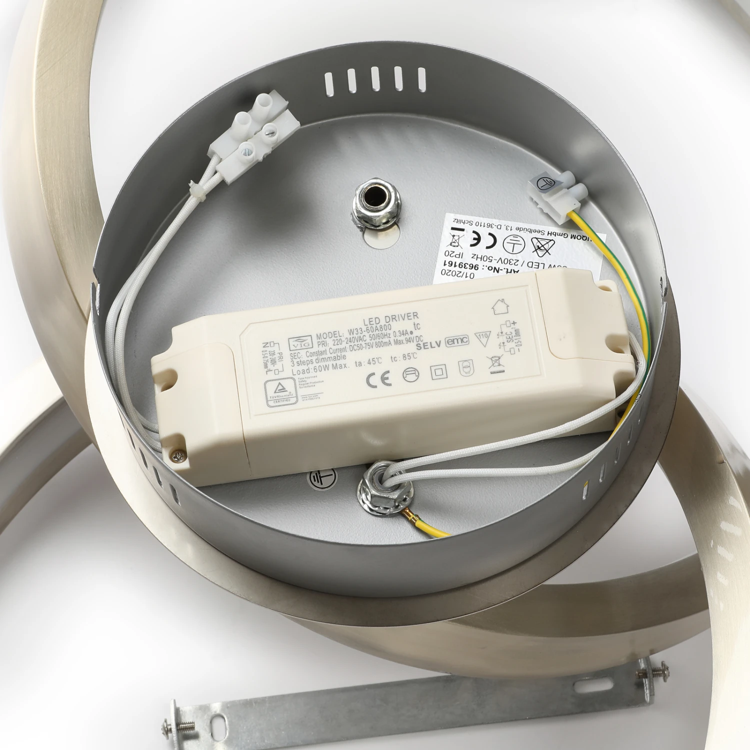 Ineinander verschlungene LED-Deckenleuchte Gunbritt mit Schalter, dimmbar Zu einem Knoten geschlungen ist die LED-Deckenlampe Gunbritt ein modernes Lichtobjekt. Teilweise erinnert sie auch an eine Brezel, aber diese Leuchte ist nicht zwangsläufig für die Küche bestimmt, sondern auch für das Wohnzimmer oder den Flur. Über den gewöhnlichen Wandschalter lässt sie sich in drei Stufen dimmen und zwar 100%/ 50% / 10%. So lässt sich das warmweiße Licht an die gewünschte Stimmung oder Situation anpassen. Die silbergraue Oberfläche unterstreicht den moderne Charakter der Leuchte.