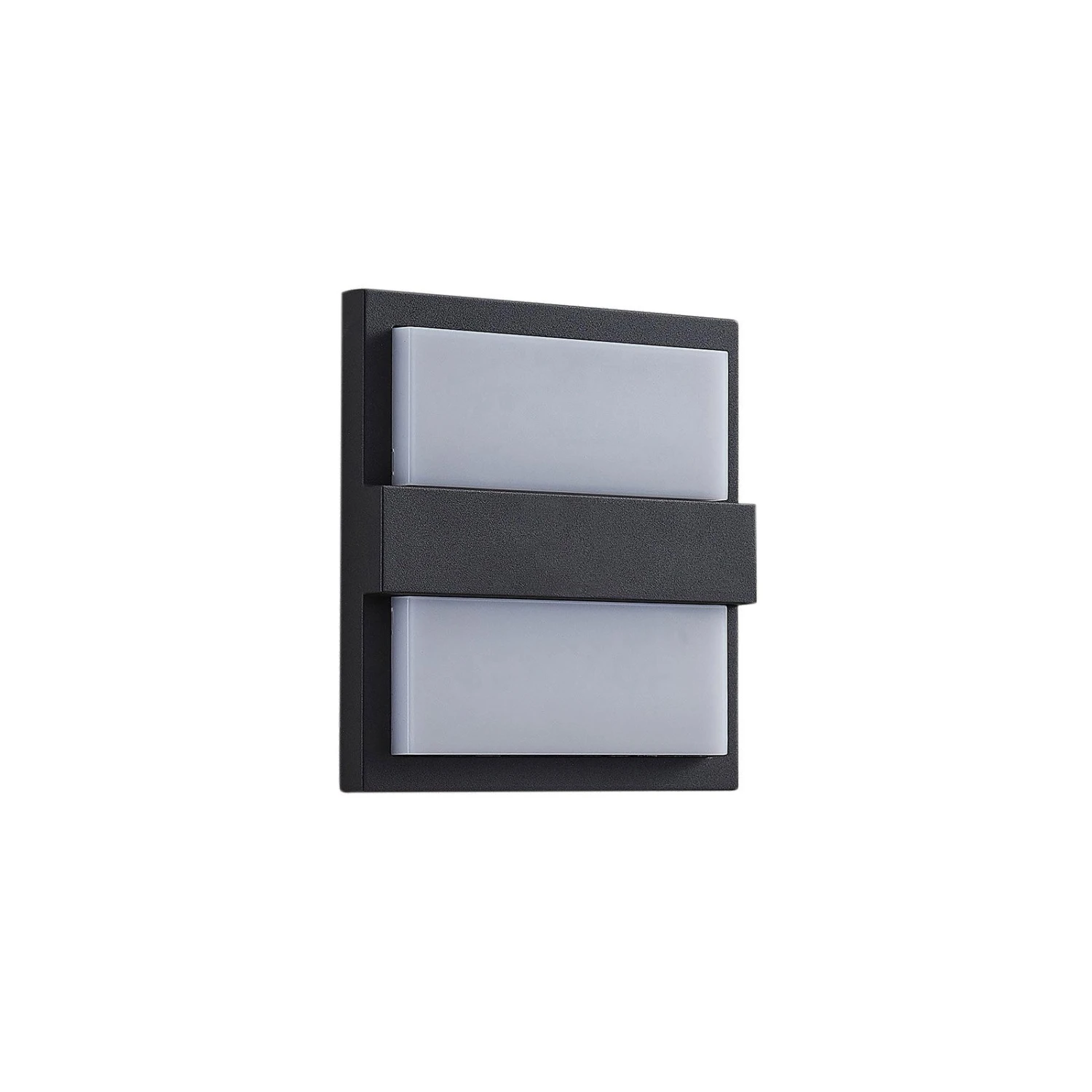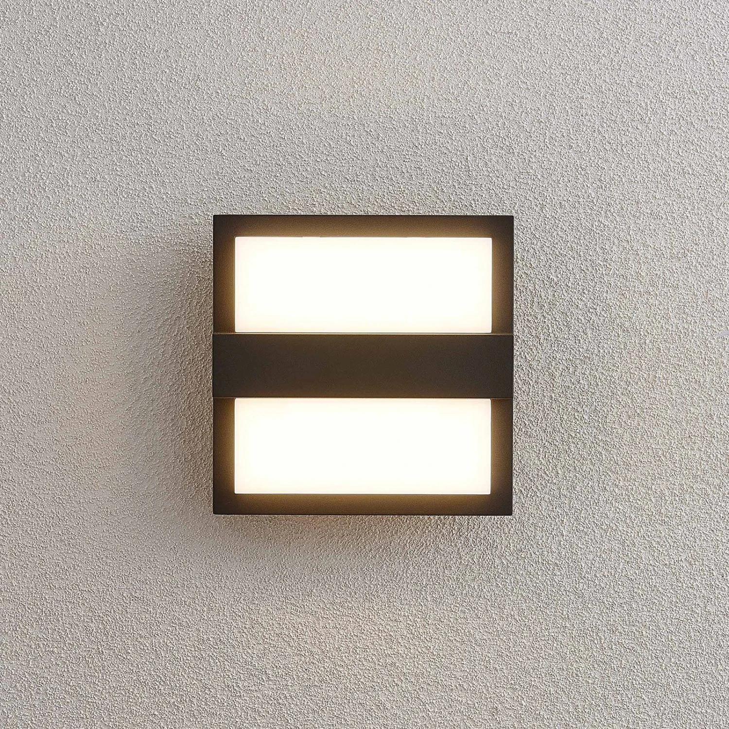Die LED-Außenwandleuchte Gylfi ist mit IP65 bestens für die Verwendung im Freien geeignet. Die dunkelgraue Oberfläche des Metalls lässt die Leuchte sehr edel aussehen. Der weiße Diffusor besteht aus Polycarbonat und wird von einem Metallsteg in der Mitte unterbrochen. Aufgrund des Diffusors wird das Licht blendfrei und somit angenehm abgegeben.