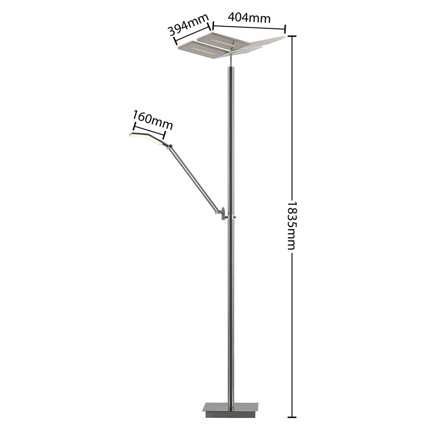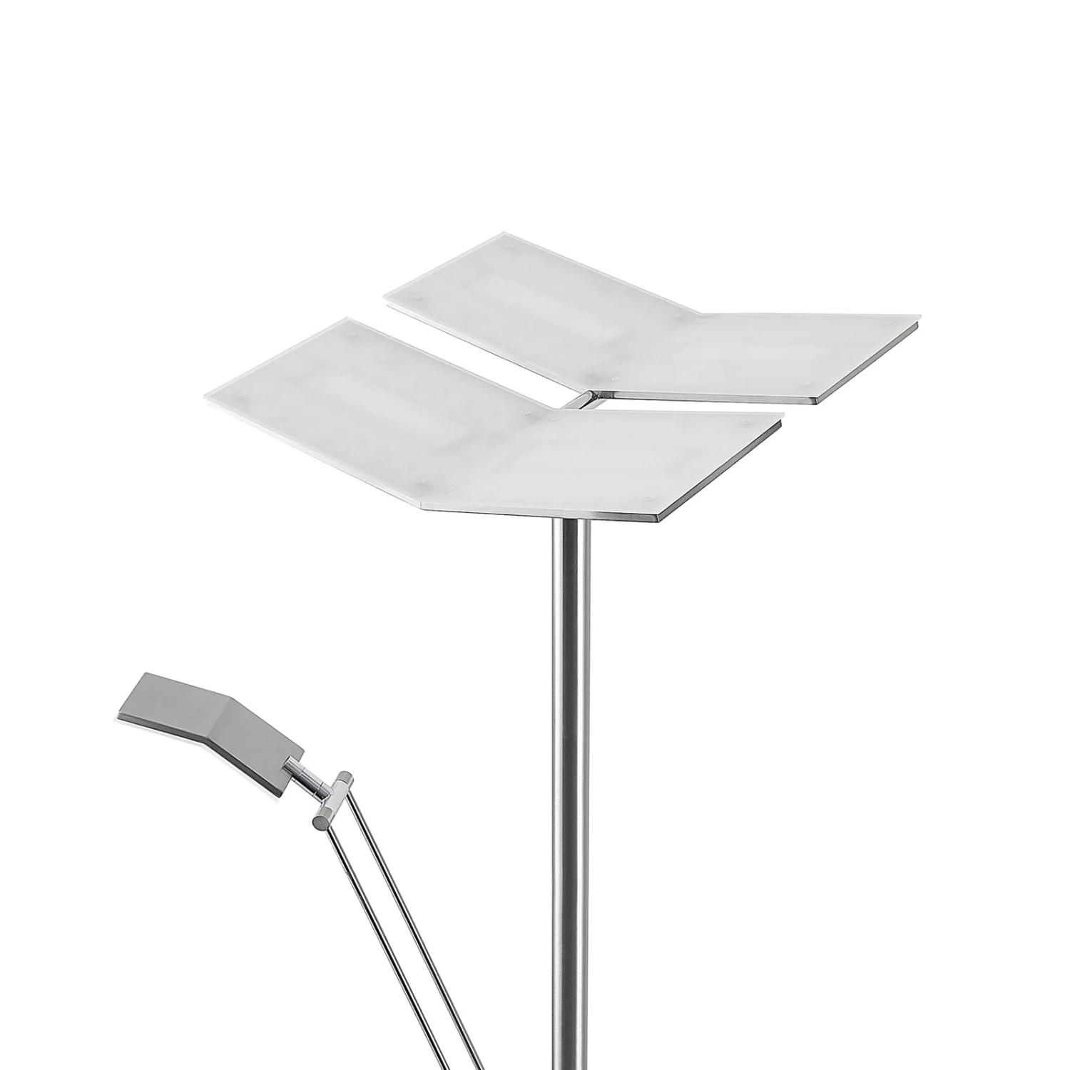 LED-Stehleuchte Hadlee aus Edelstahl und Eisen mit praktischer Leselampe