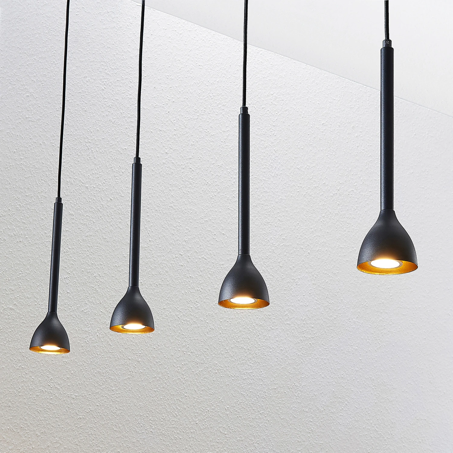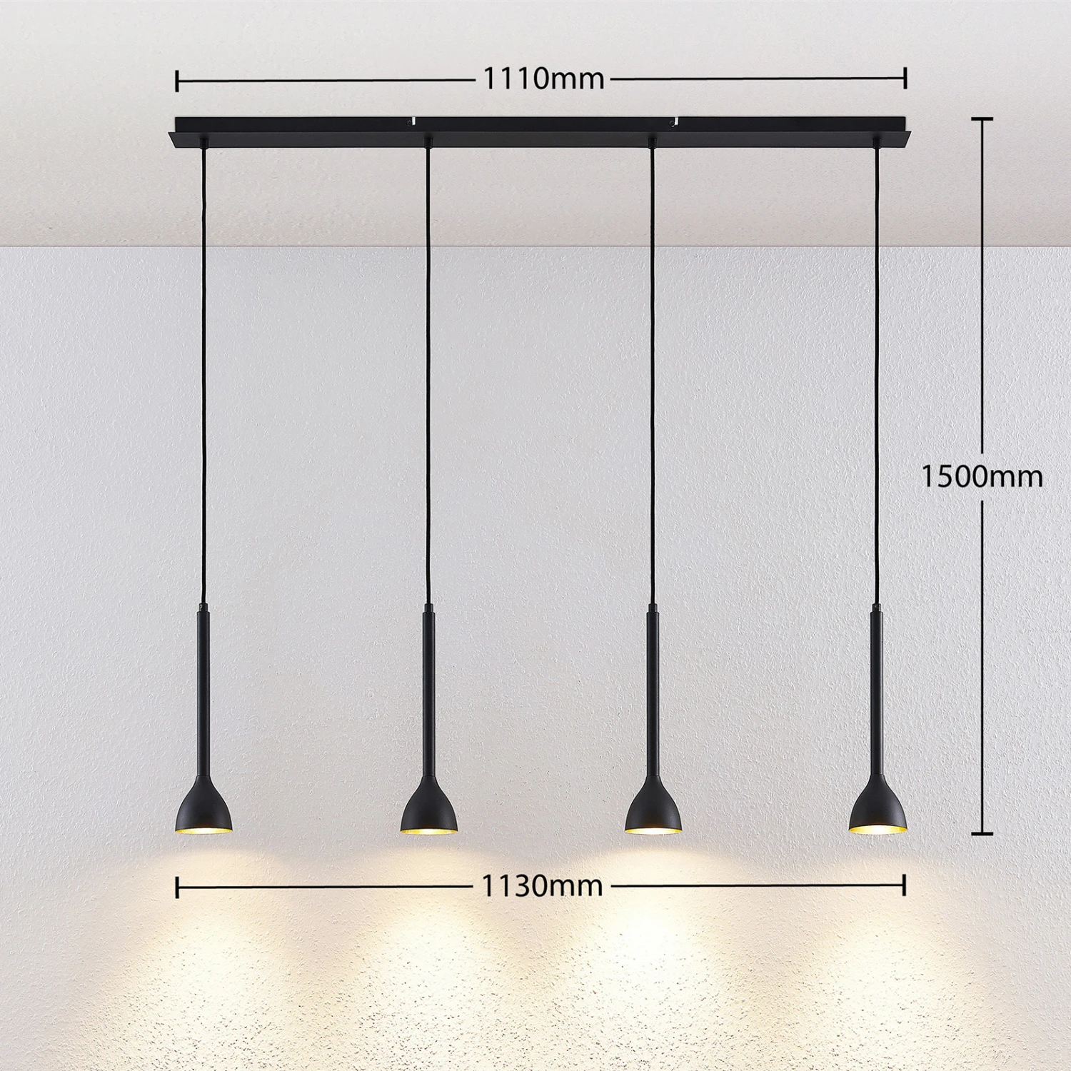 Vierflammige Balkenhängeleuchte Nordwin in Schwarz und Gold