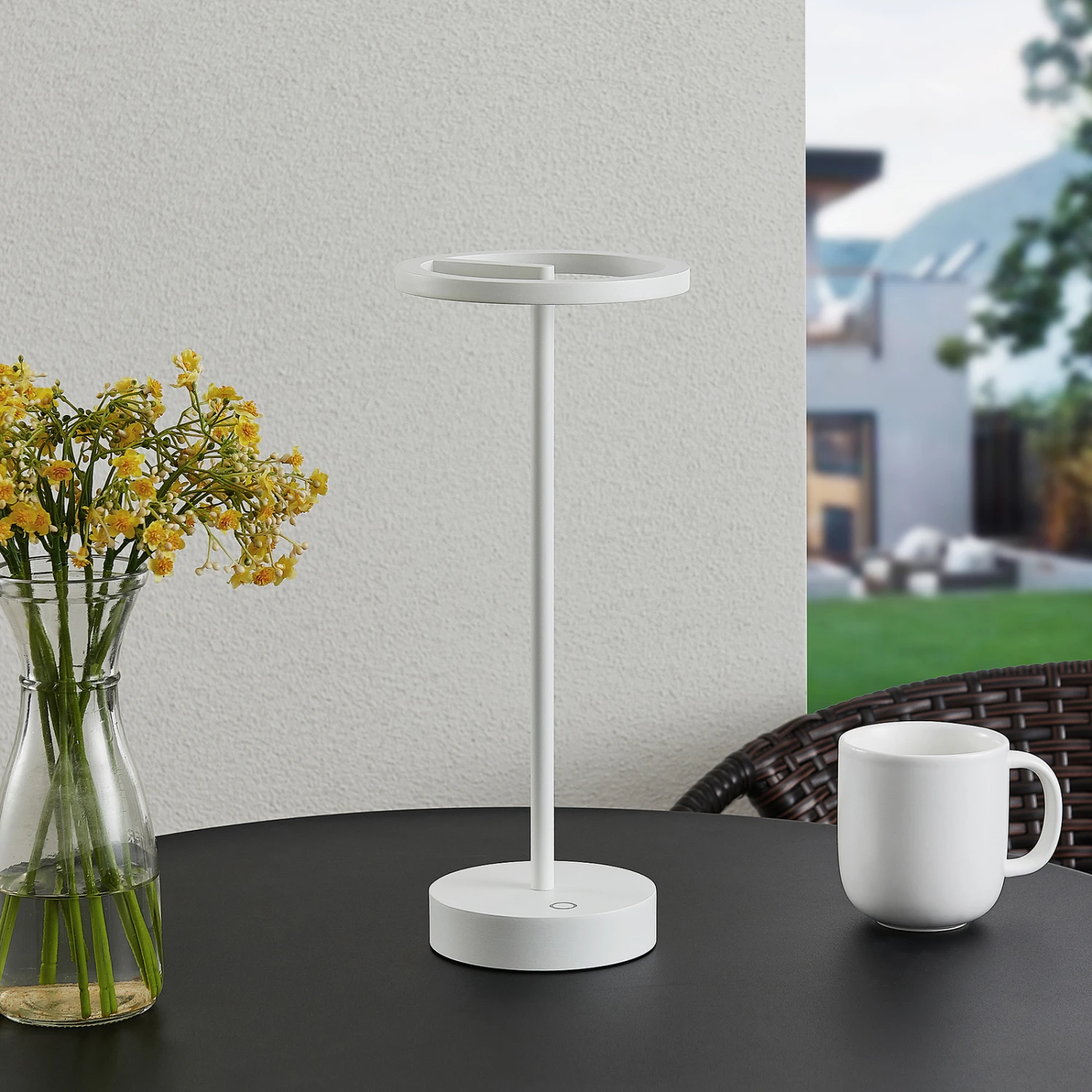 Halona besitzt einen integrierten Akku, dank dem sie mit einem USB-Kabel aufgeladen und ortsunabhängig aufgestellt werden kann. Sie besitzt die Schutzart IP54 und kann deshalb sowohl zu Hause als auch auf der Terrasse oder im Garten eingesetzt werden. Die Helligkeit kann man mit der Touchdim-Funktion bequem und stufenlos nach eigenen Bedürfnissen einstellen und somit für gemütliche Stunden drinnen und draußen sorgen.
