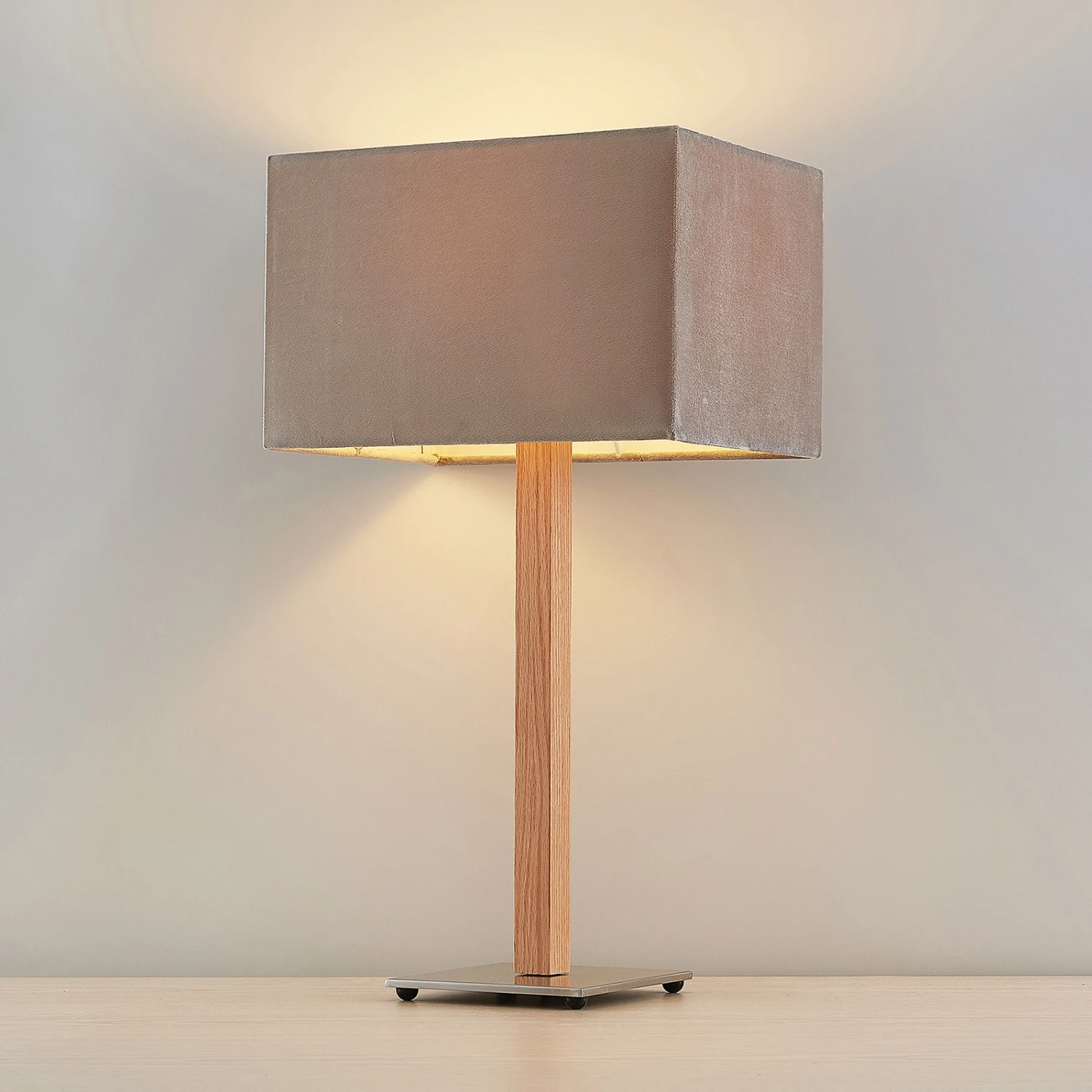 Gemütliche Tischleuchte Heily mit eckigem, grauem Textilschirm