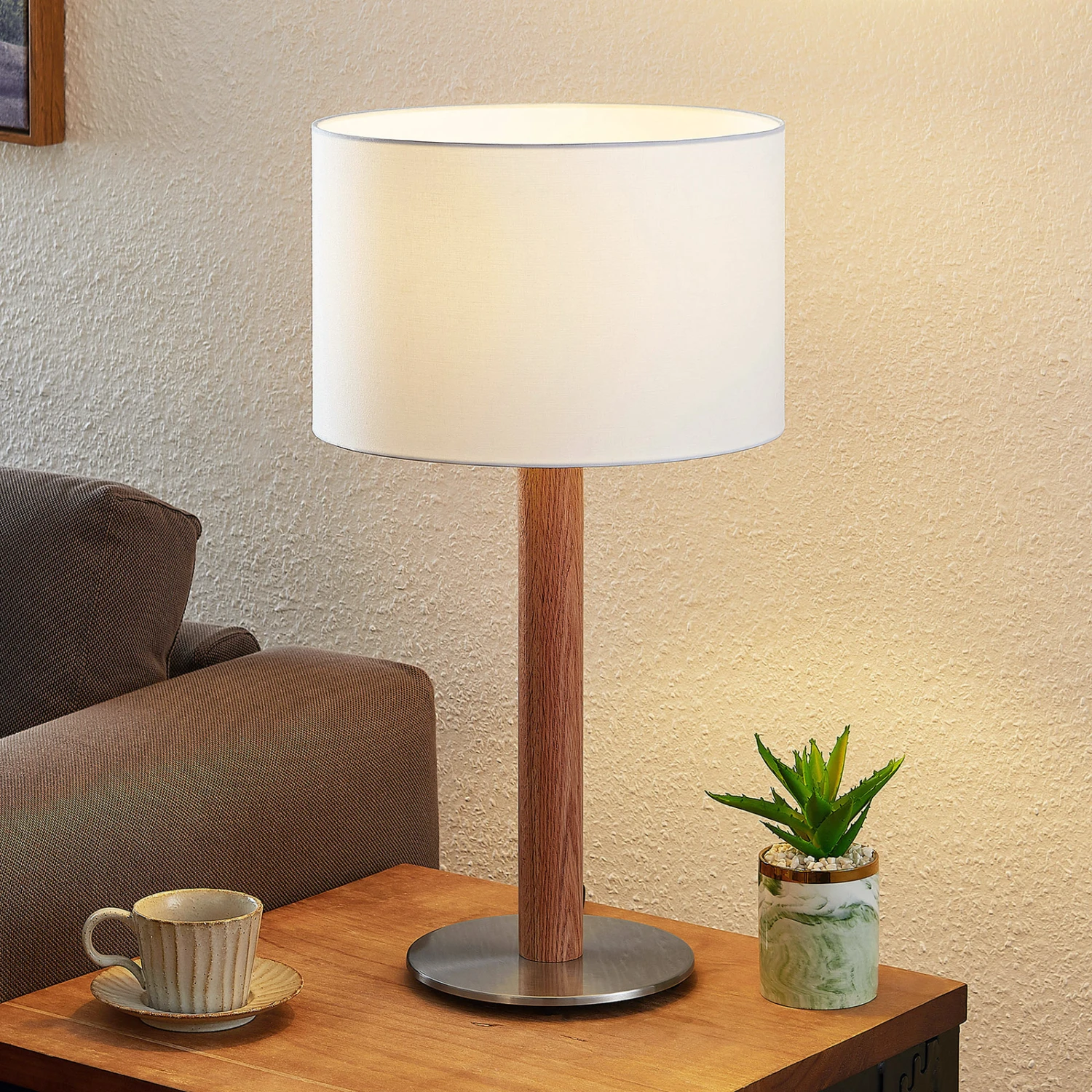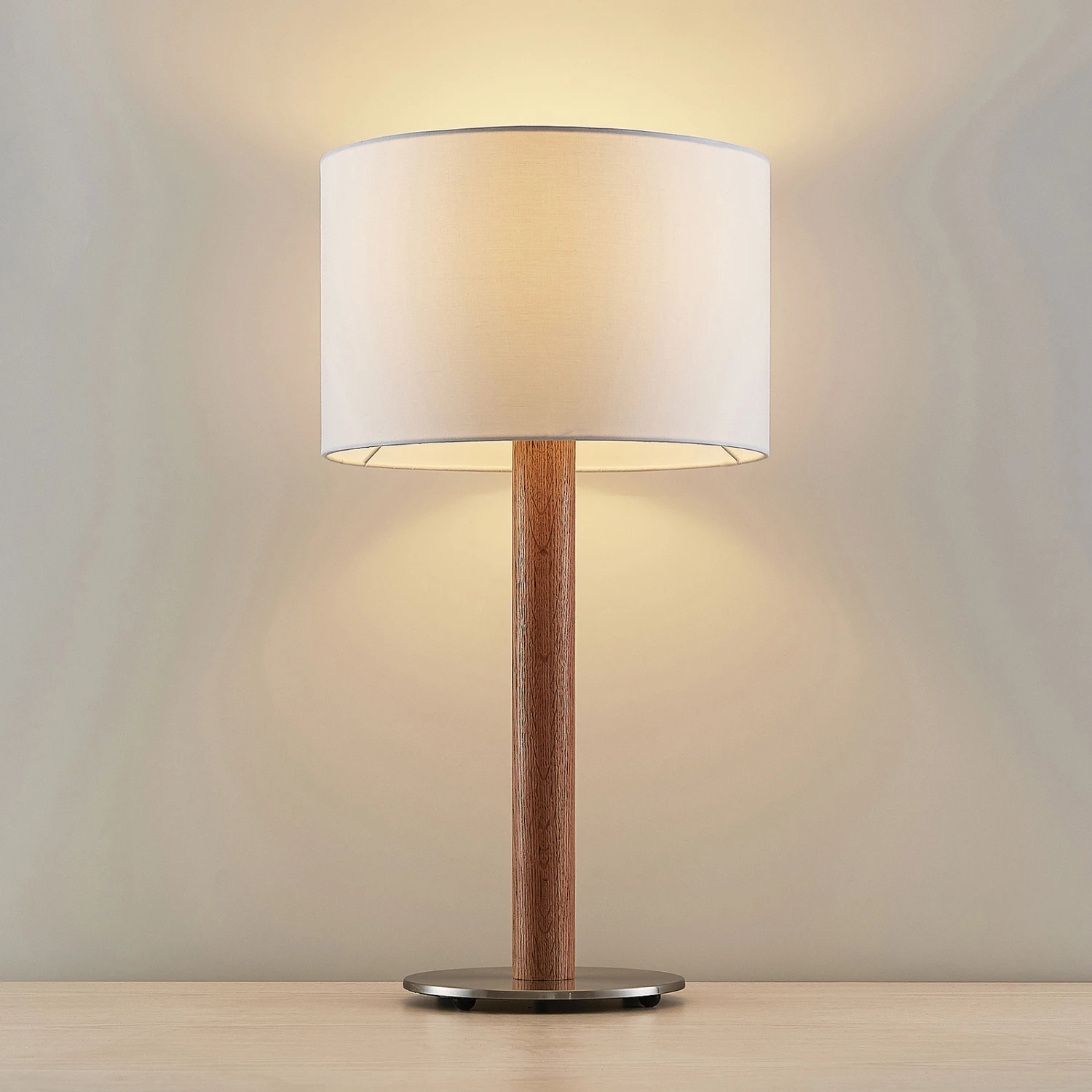 Heily ist aus Eisen, Eichenholz und Textil gefertigt und besitzt ein skandinavisches Design. Ihr weißer Leuchtenschirm kann mit entsprechenden Leuchtmitteln bestückt und somit die Lichtfarbe an die persönliche Bedürfnisse angepasst werden. An seiner Fassung verfügt sie darüber hinaus über einen Kippschalter der die Leuchte ein- und ausschaltet. Die Tischlampe Heily findet ihren perfekten Platz auf einer Kommode oder einem Tisch und generiert eine angenehme Akzentbeleuchtung. Ihr kontrastreiches Design ist darüber hinaus aber auch eine attraktive Dekoration für den Innenbereich.
