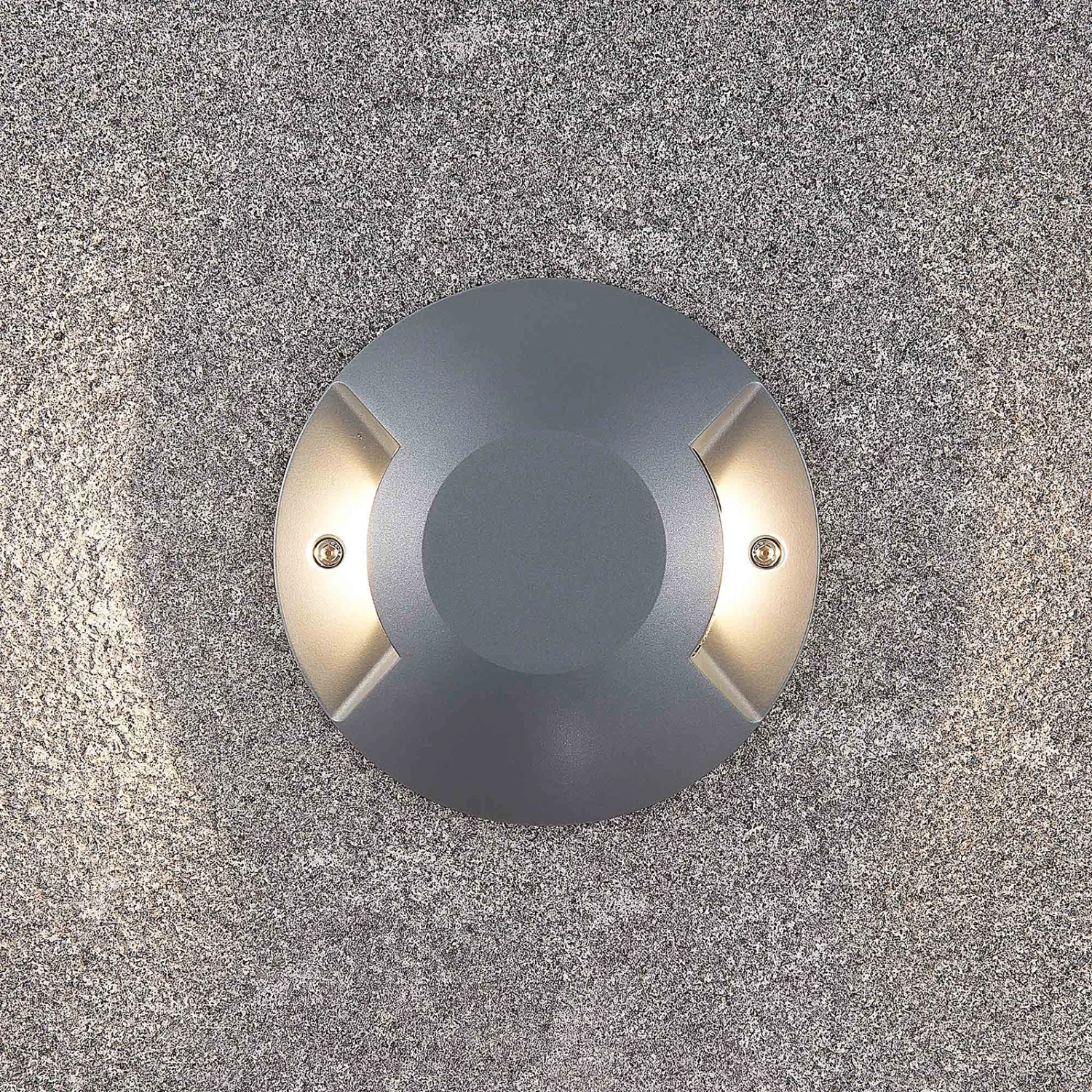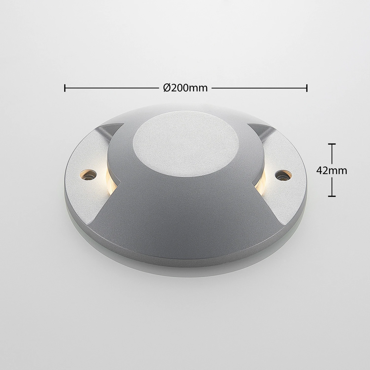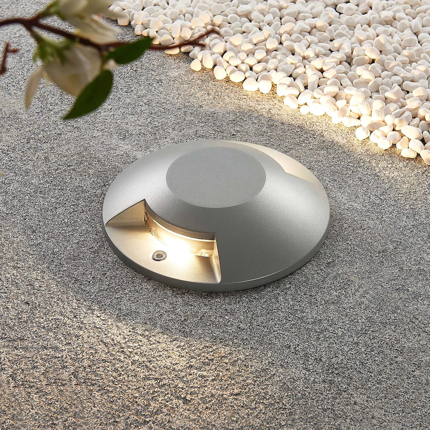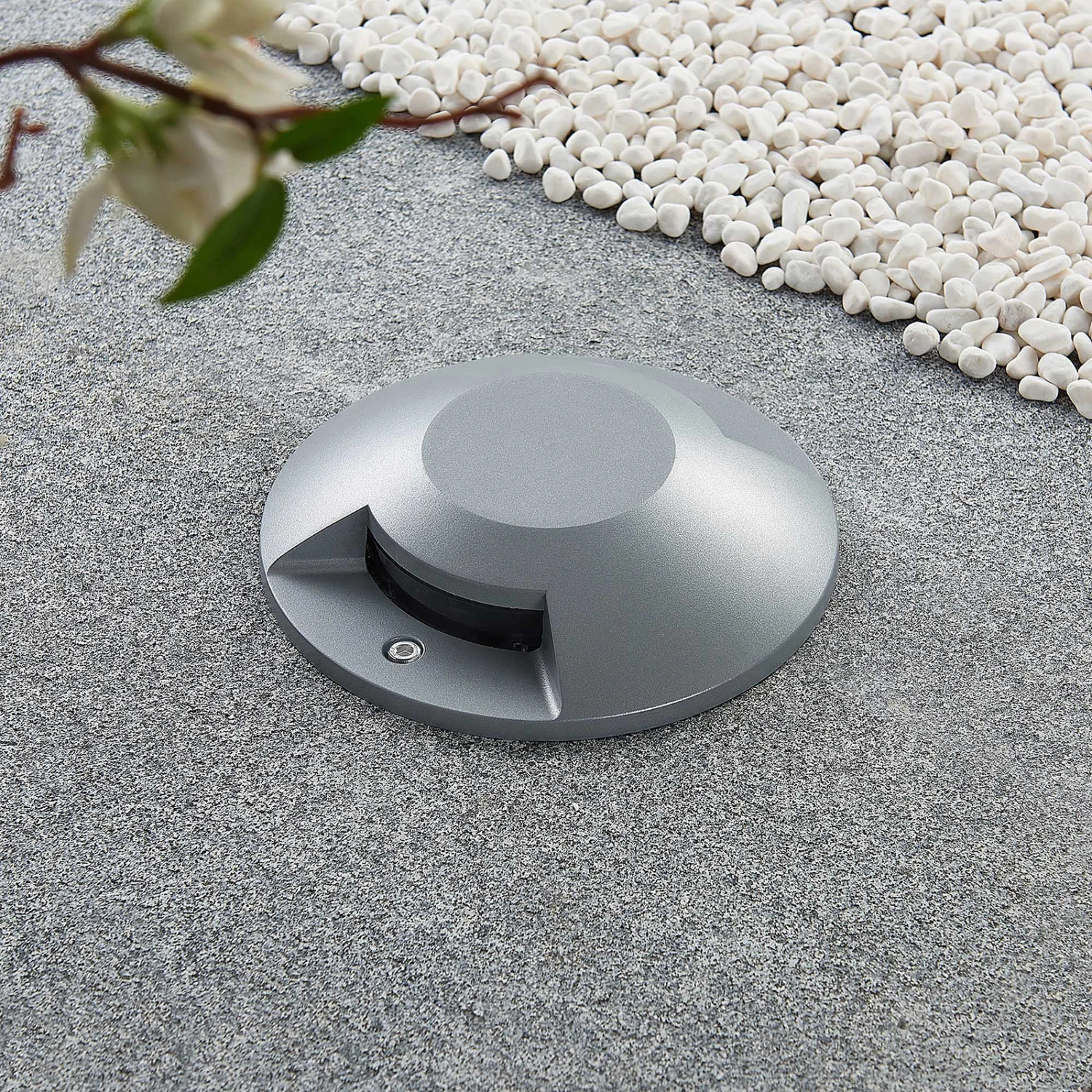 Silberne LED-Bodenaufbauleuchte Jeffrey mit zwei Lichtaustritten, IP67