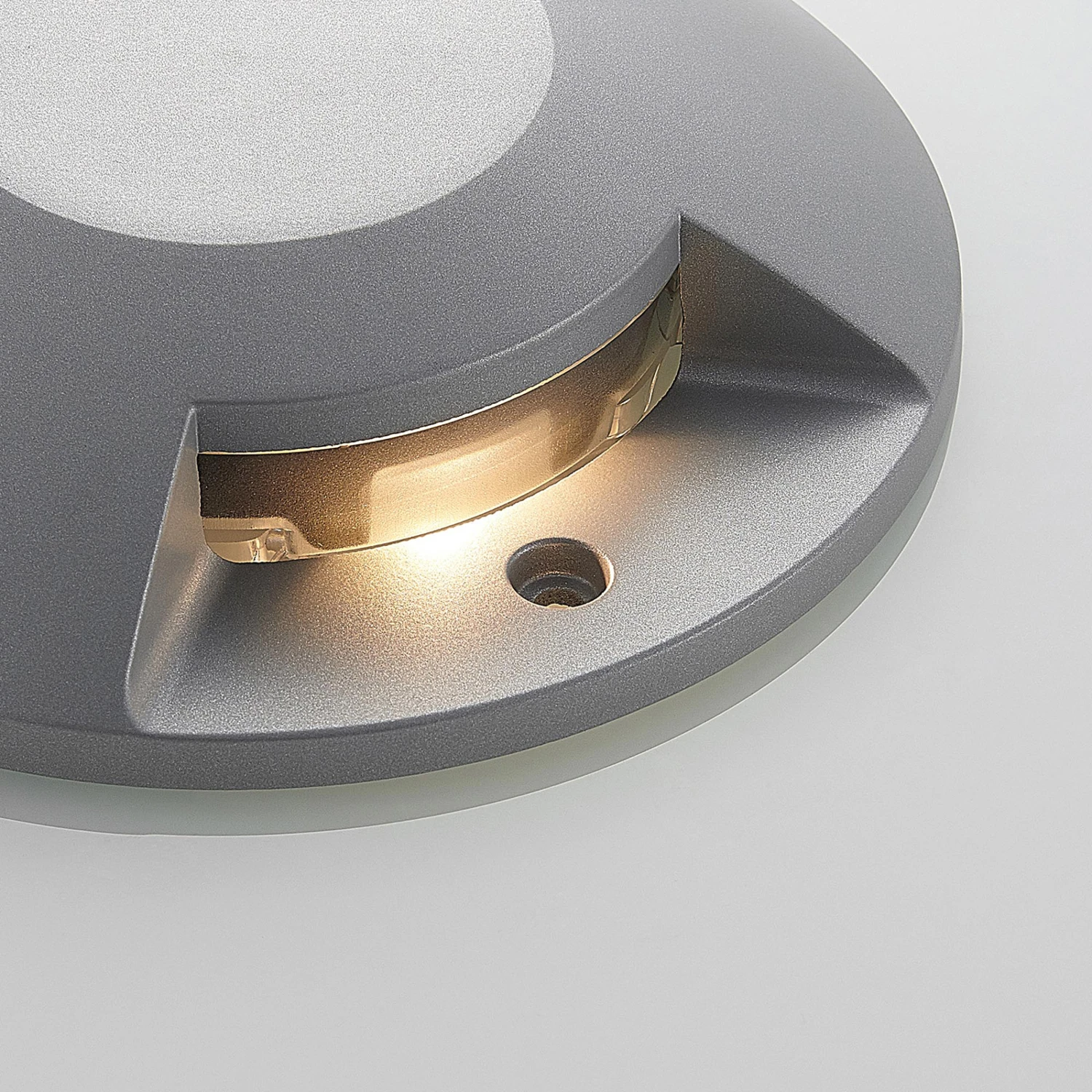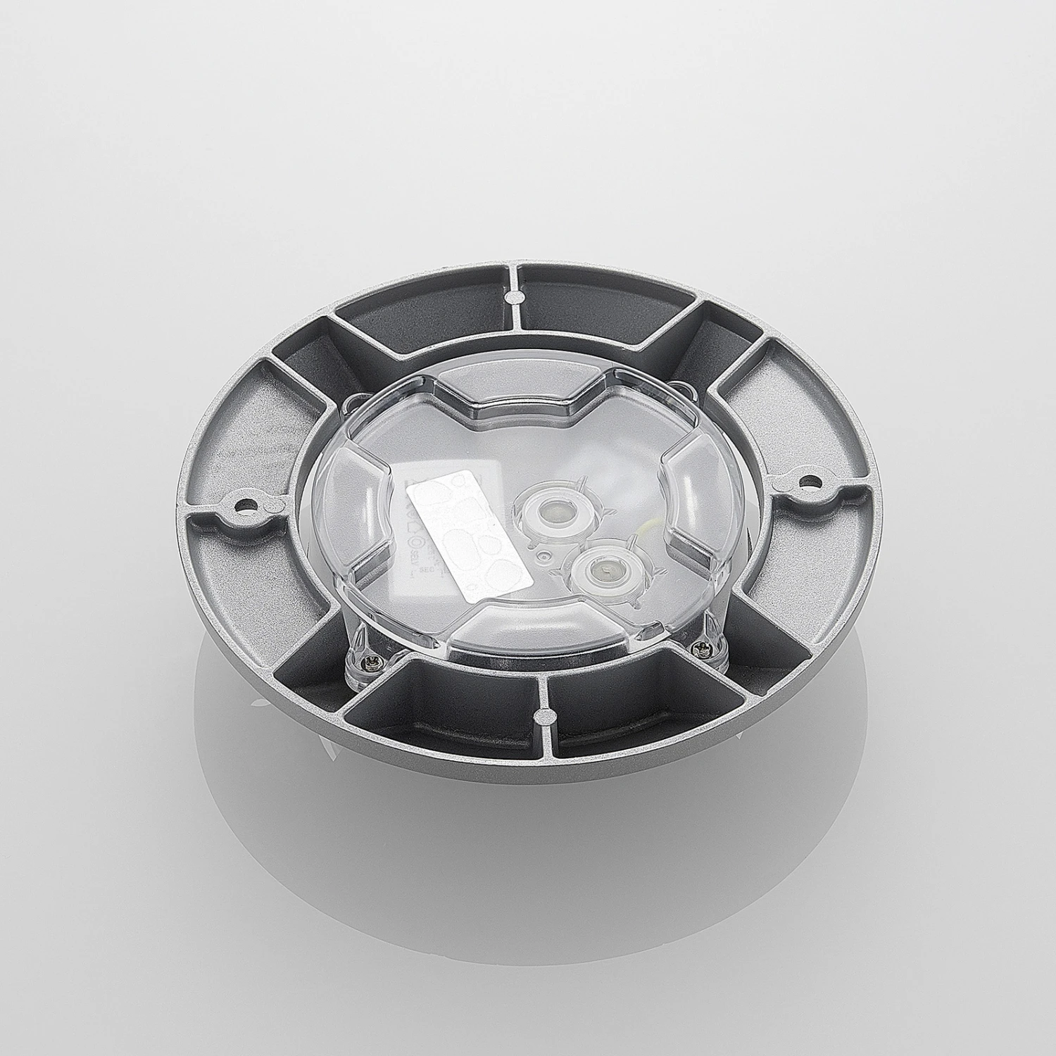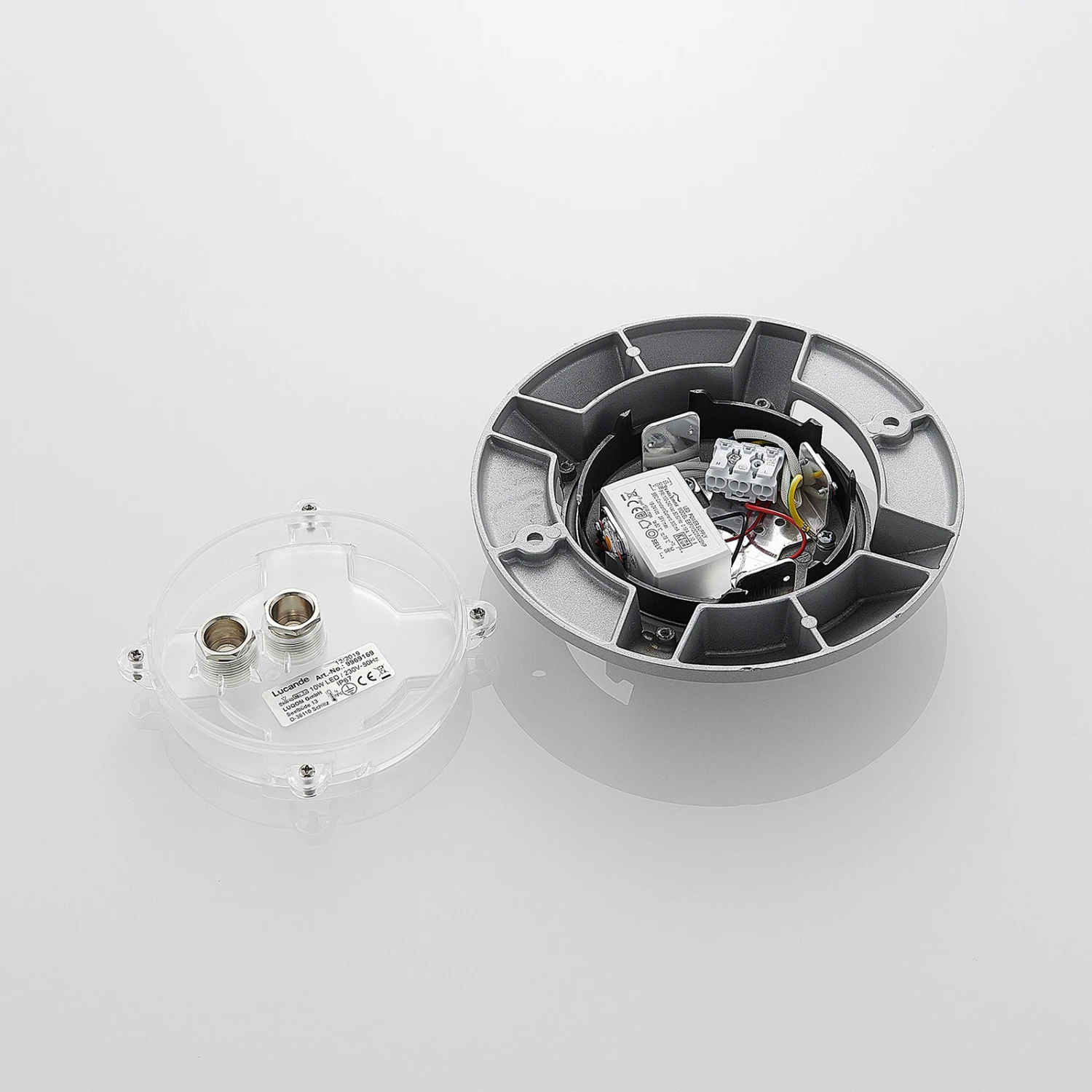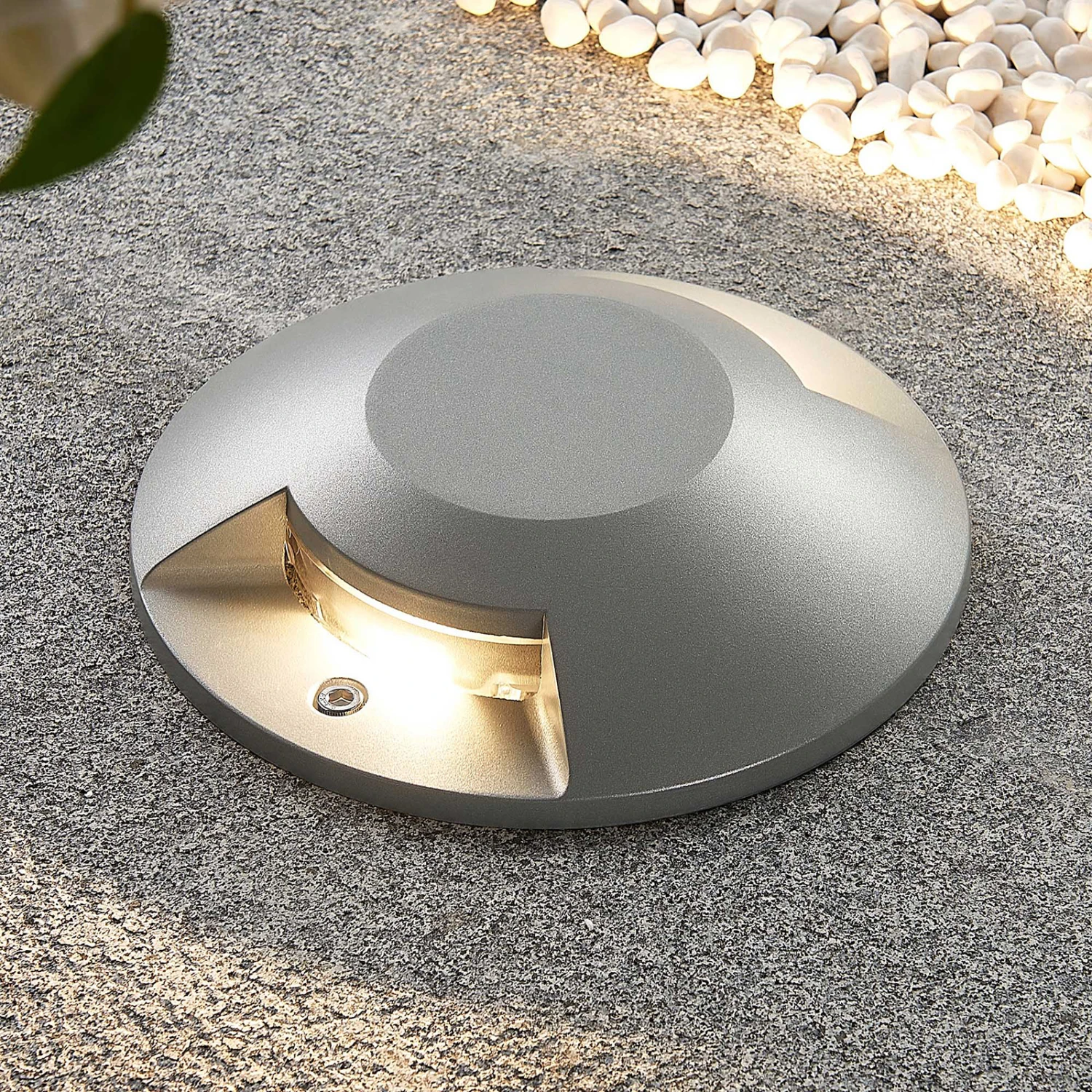Silberne LED-Bodenaufbauleuchte Jeffrey mit zwei Lichtaustritten, IP67