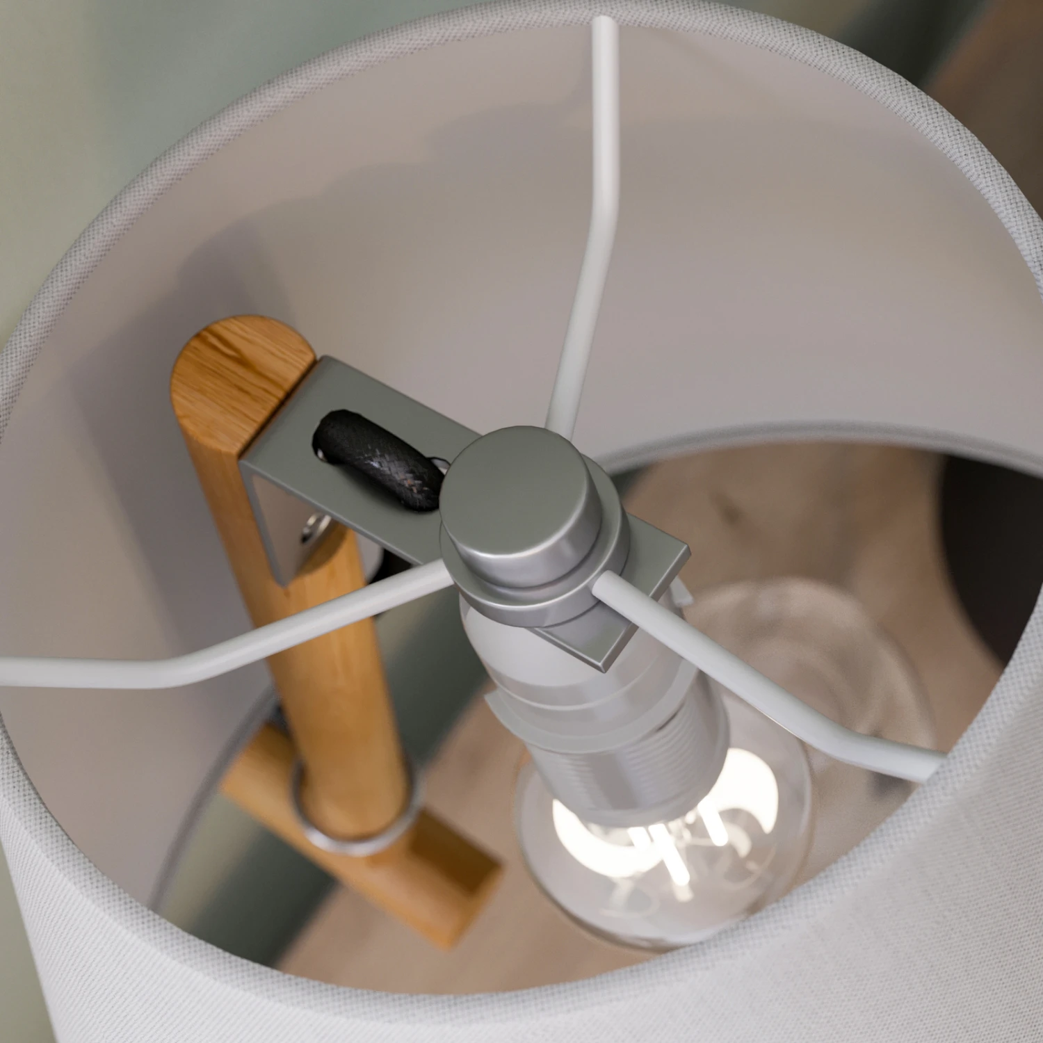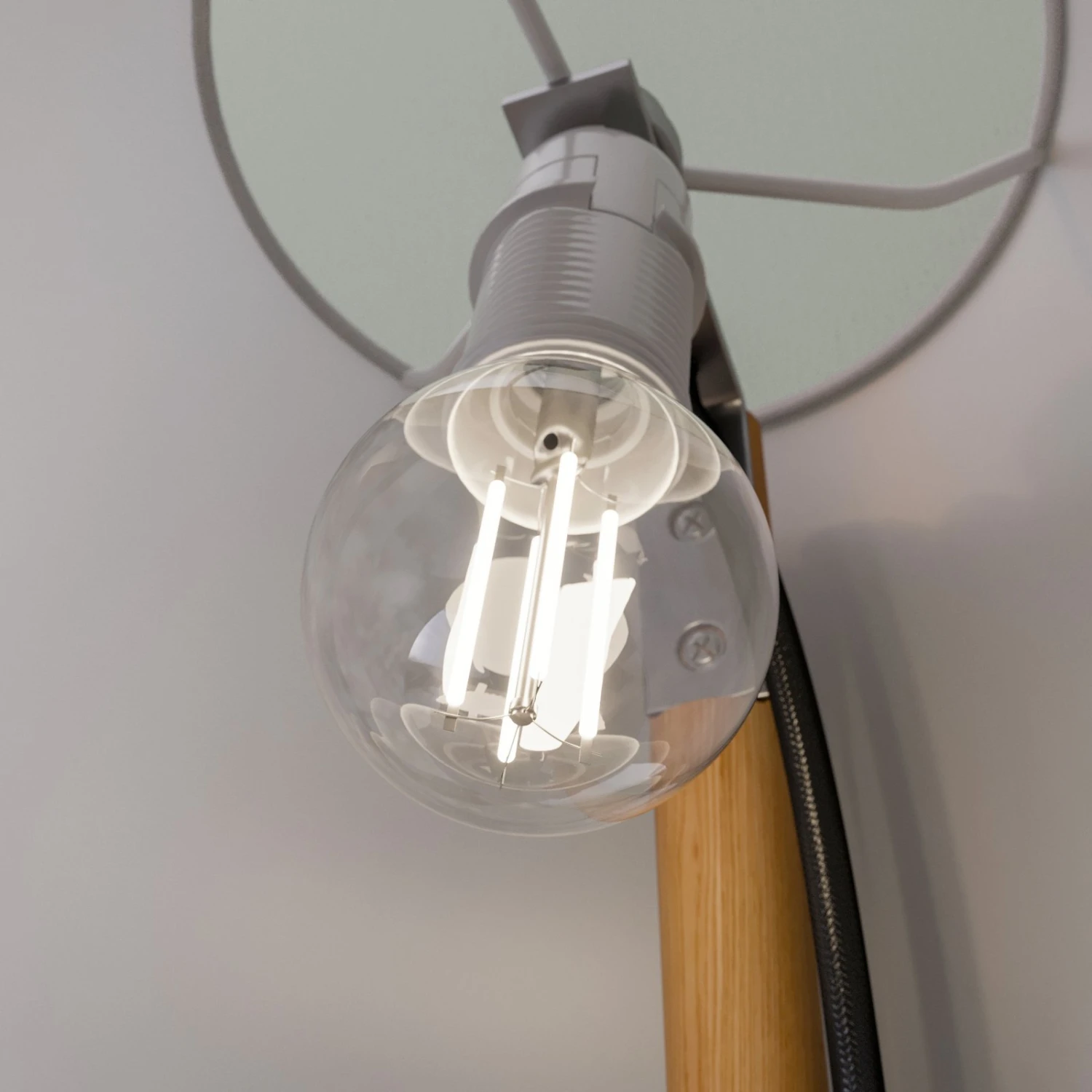 Das Lichtbild ist zweifelsohne sehr behaglich und kommt im Wohnbereich ebenso gut an wie in einem Schlafzimmer, wo die Leuchte von klassischer Schönheit ist und einen Rückzugsort zum Entspannen erschafft. Ein gemütliches Ambiente ist dabei stets garantiert und das FSC-Siegel kennzeichnet nachhaltige Holzwirtschaft. Für die E27-Fassung stehen viele Lampen zur Auswahl, idealerweise sollten sie energiesparende LED-Technik besitzen und sie können ruhig eine extrawarme Lichtfarbe haben oder mit Stepdim-Technik ausgestattet sein, die eine stufenweise Regulierung der Helligkeit über den Schalter ermöglicht.