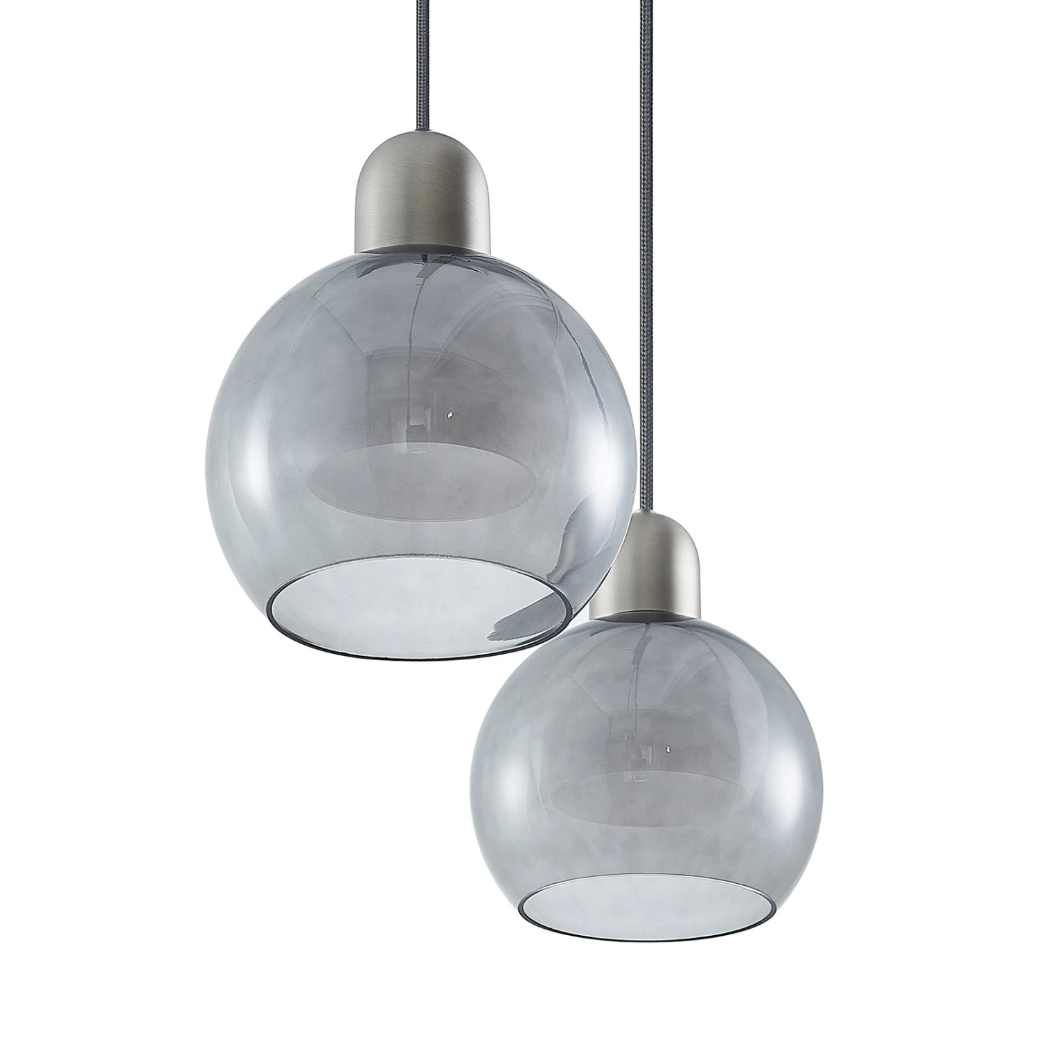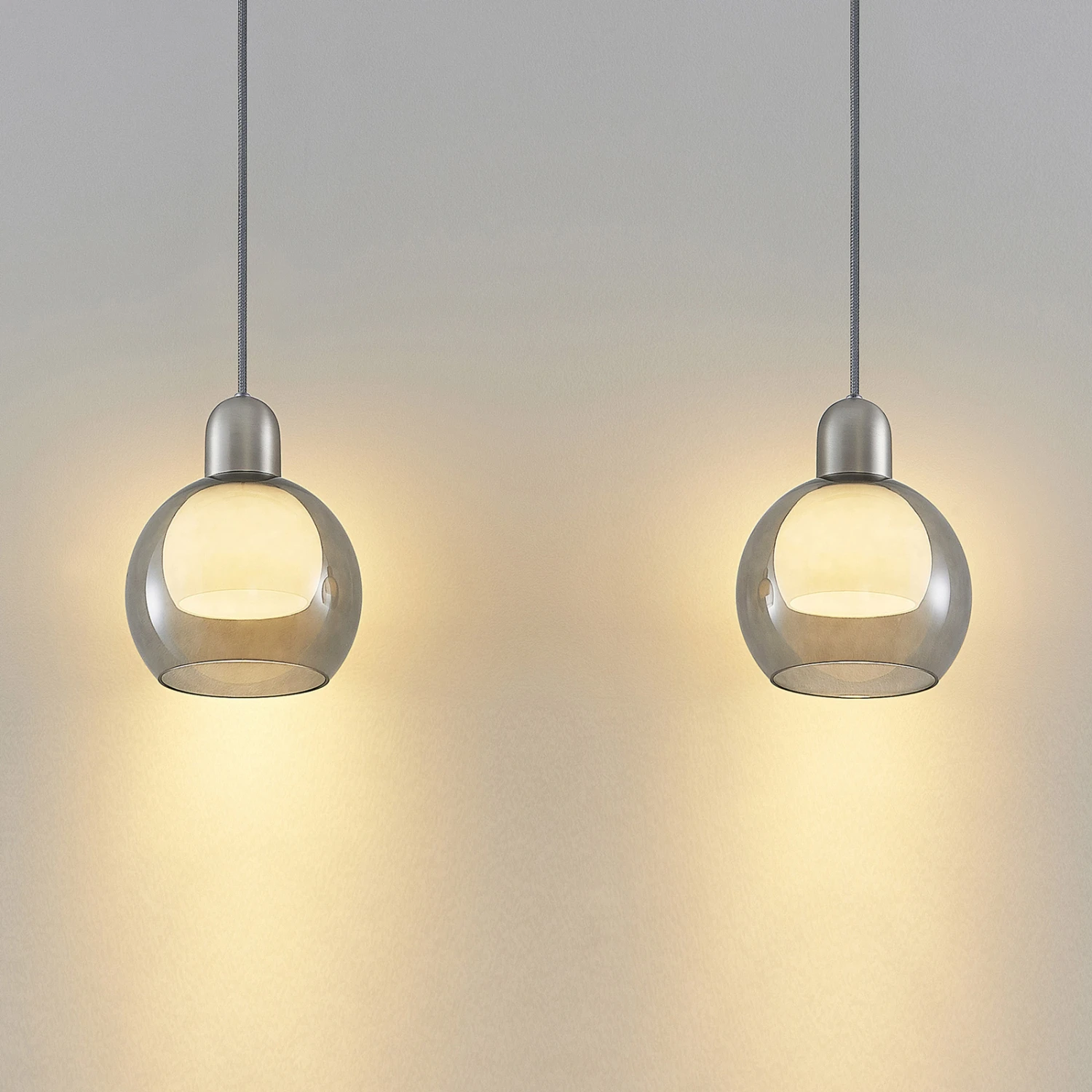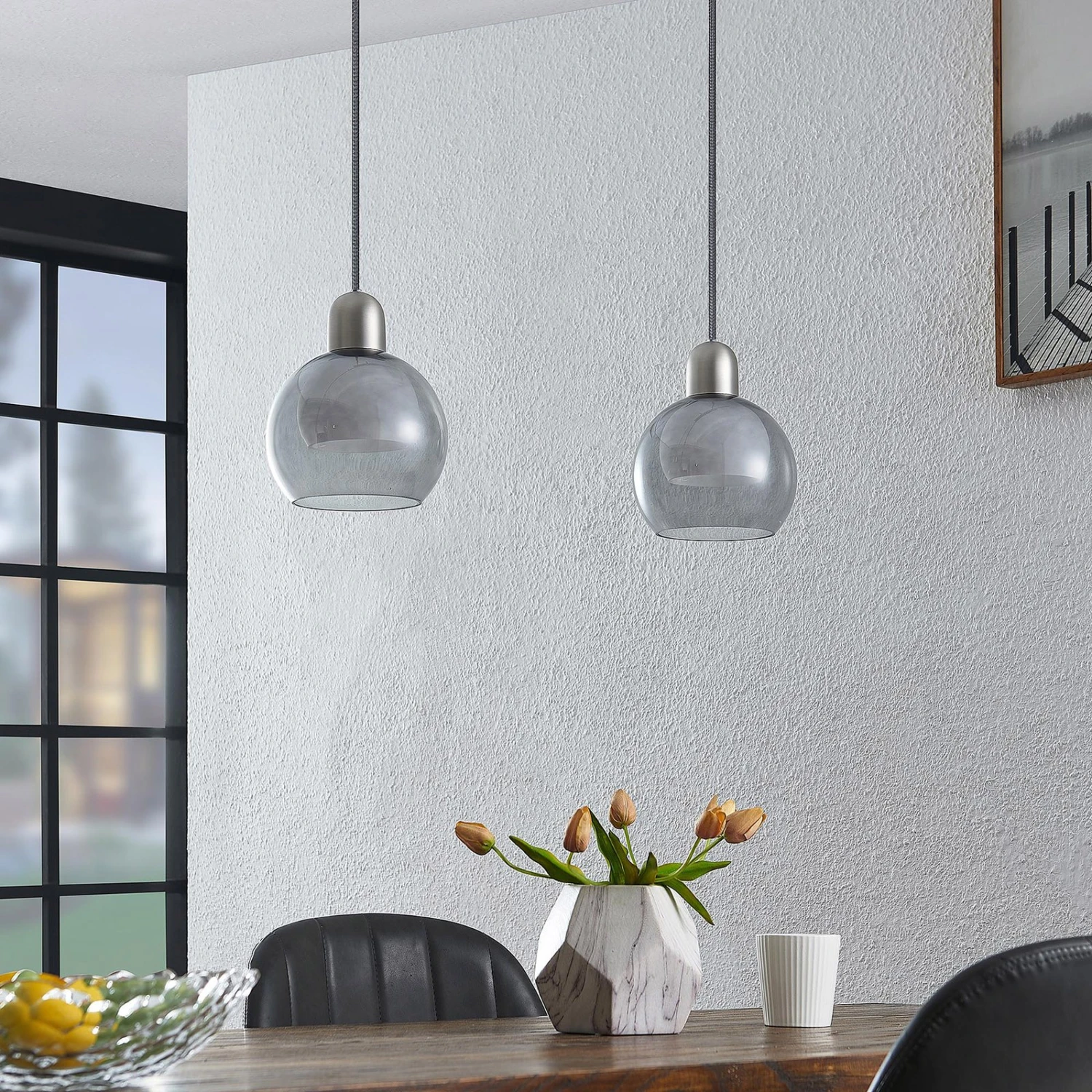 Zweiflammige Hängeleuchte Kaiya in modernem Design aus Eisen und Glas