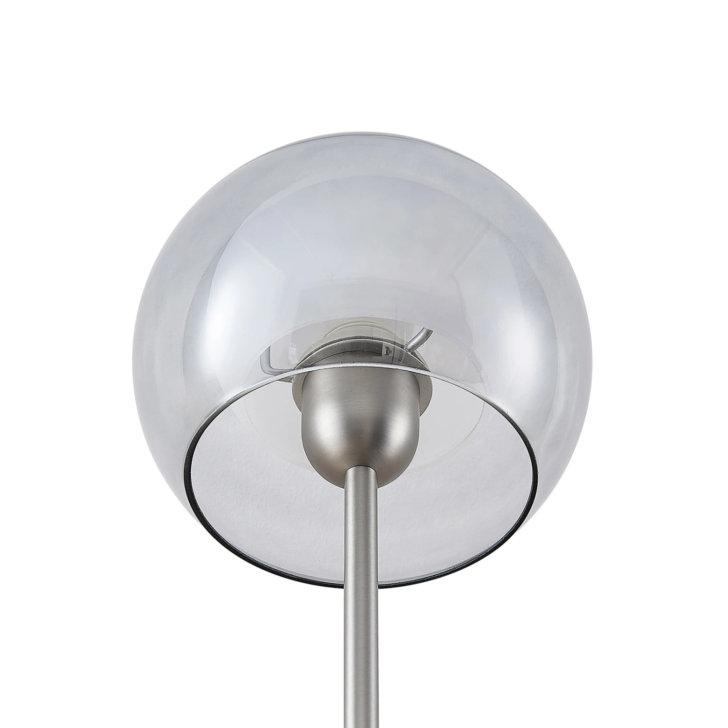 Nickelfarbene Tischleuchte Kaiya aus Eisen und Glas in Nickelfarben