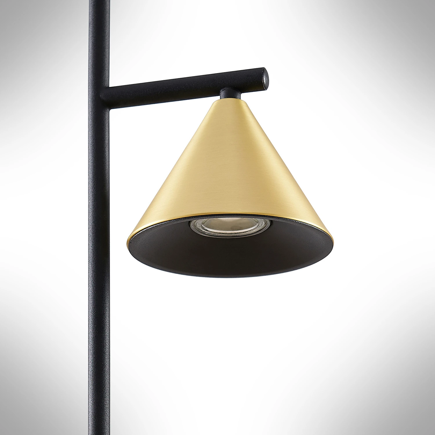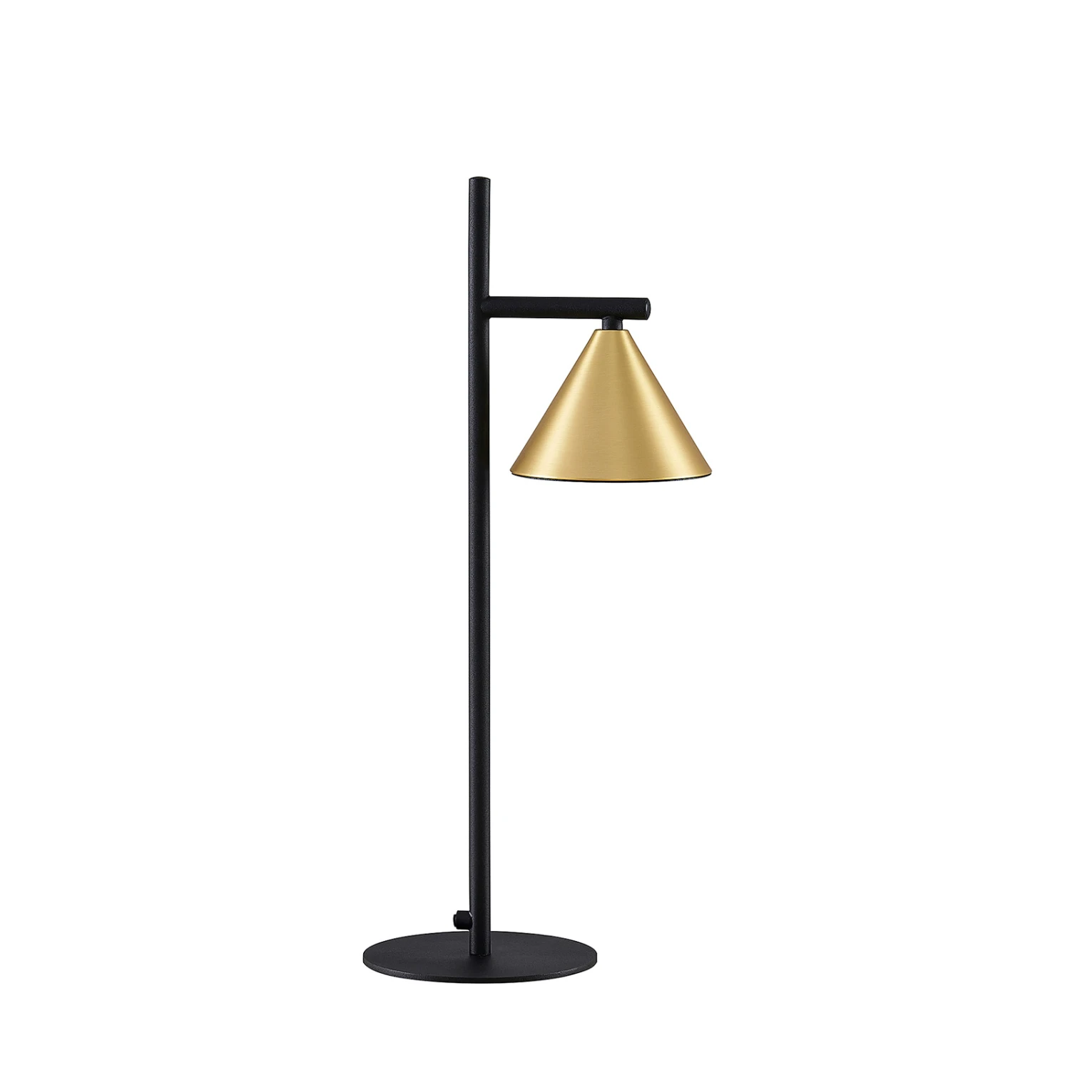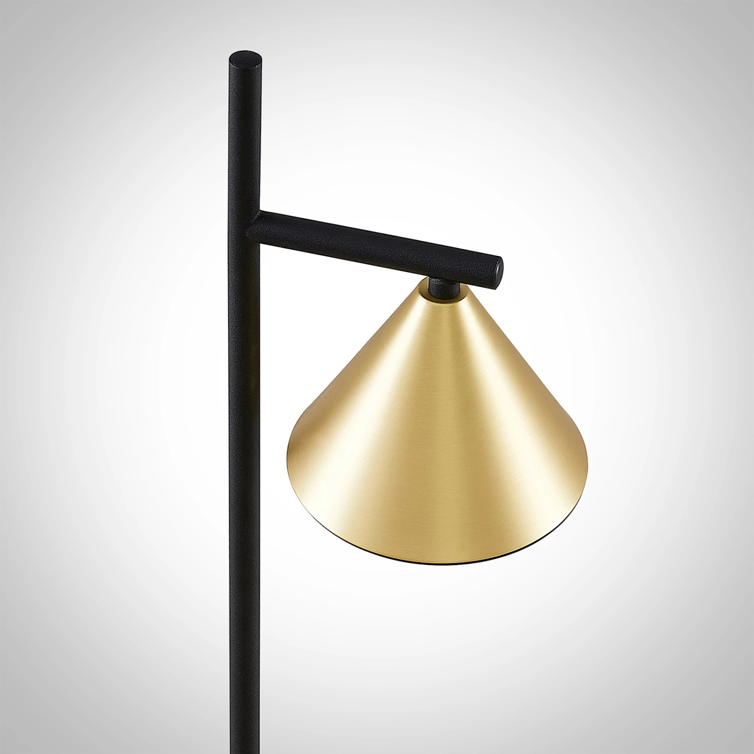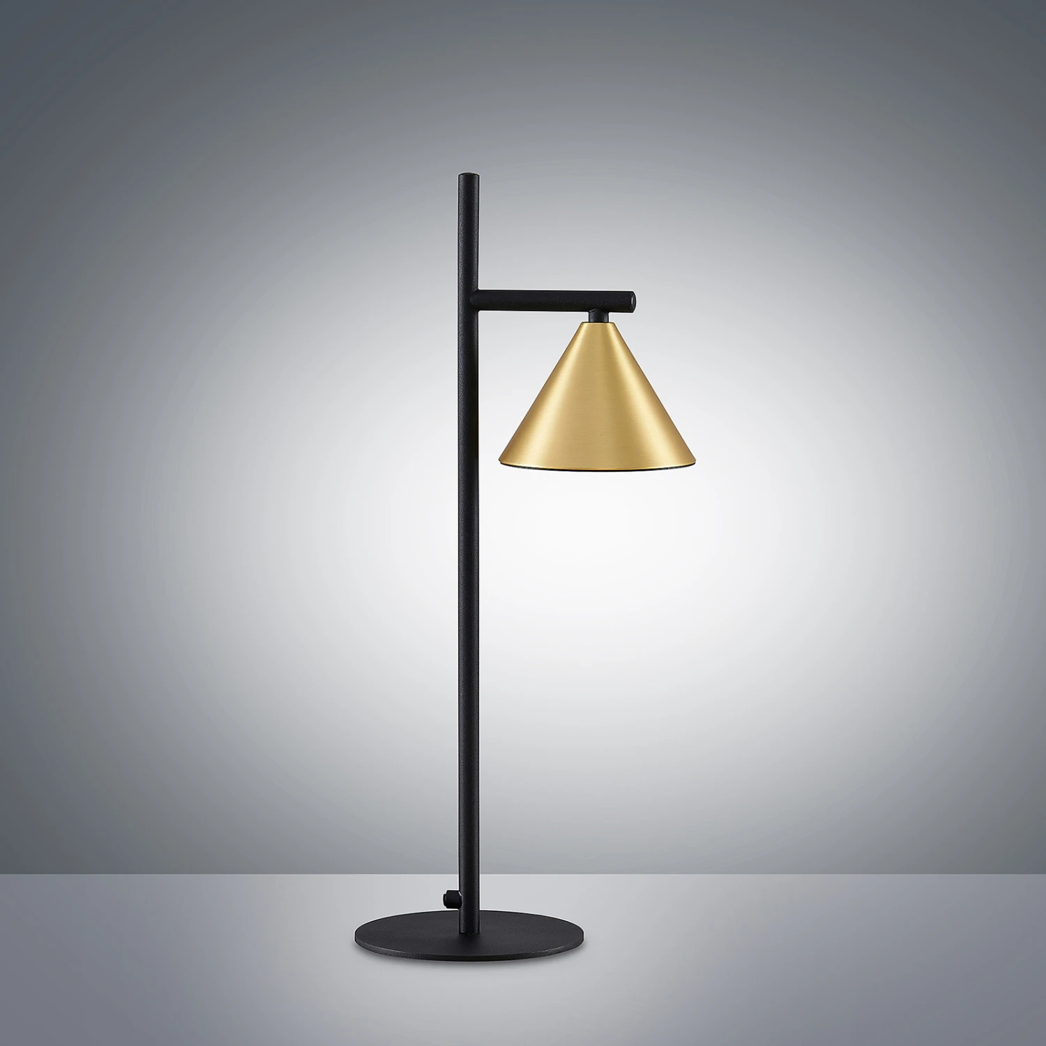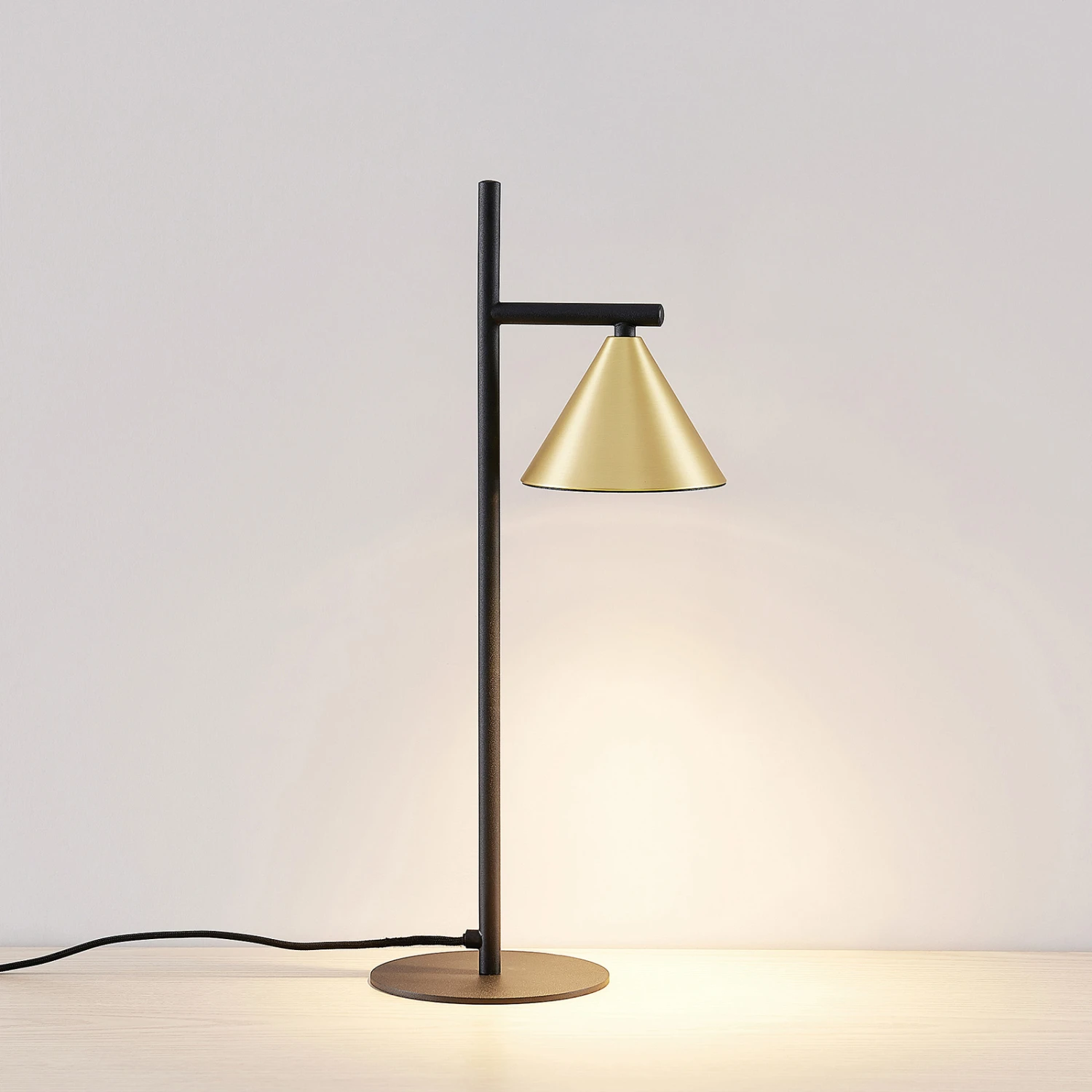 Die elegante Tischlampe Kartio punktet mit ihrer reduzierten und doch sehr soliden Formgebung sowie einem edlen Look. Hergestellt aus robustem Eisen, besteht die Leuchte aus einem gradlinigen, filigranen Gestell und einem konischen Leuchtenschirm. Ein stilvoller Gegensatz der Farben umspielt die Leuchte, denn das schwarze Gestell passt sehr harmonisch zum Leuchtenschirm mit einem Messing-Finish. Betont wird der gehobene Charakter der Leuchte zusätzlich durch die feine Verarbeitung der Metalloberfläche.
