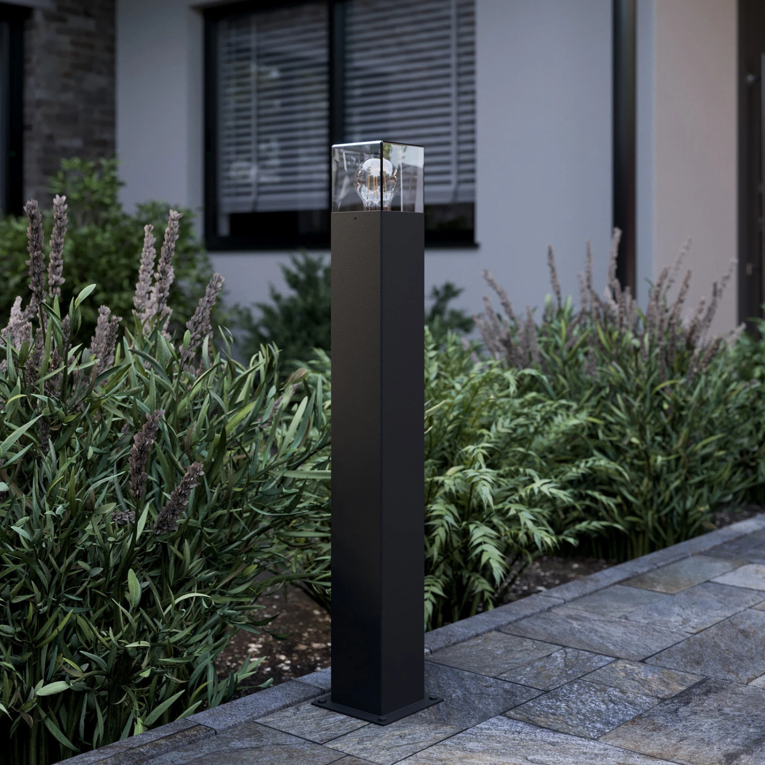 Die moderne, eckige Form der Wegeleuchte Keke passt zu vielen Außenanlagen und ist somit vielseitig einsetzbar. Sie überzeugt zudem mit der robusten Bauweise und dem grafitgrauen Aluminiumgehäuse, welches mit einem rauchgrauen Kunststoffschirm ergänzt wird. Das so eingeschlossene Leuchtmittel strahlt mit einem schönem Licht sicher und zuverlässig in die Umgebung und sorgt für ausreichend Helligkeit im Dunkeln.