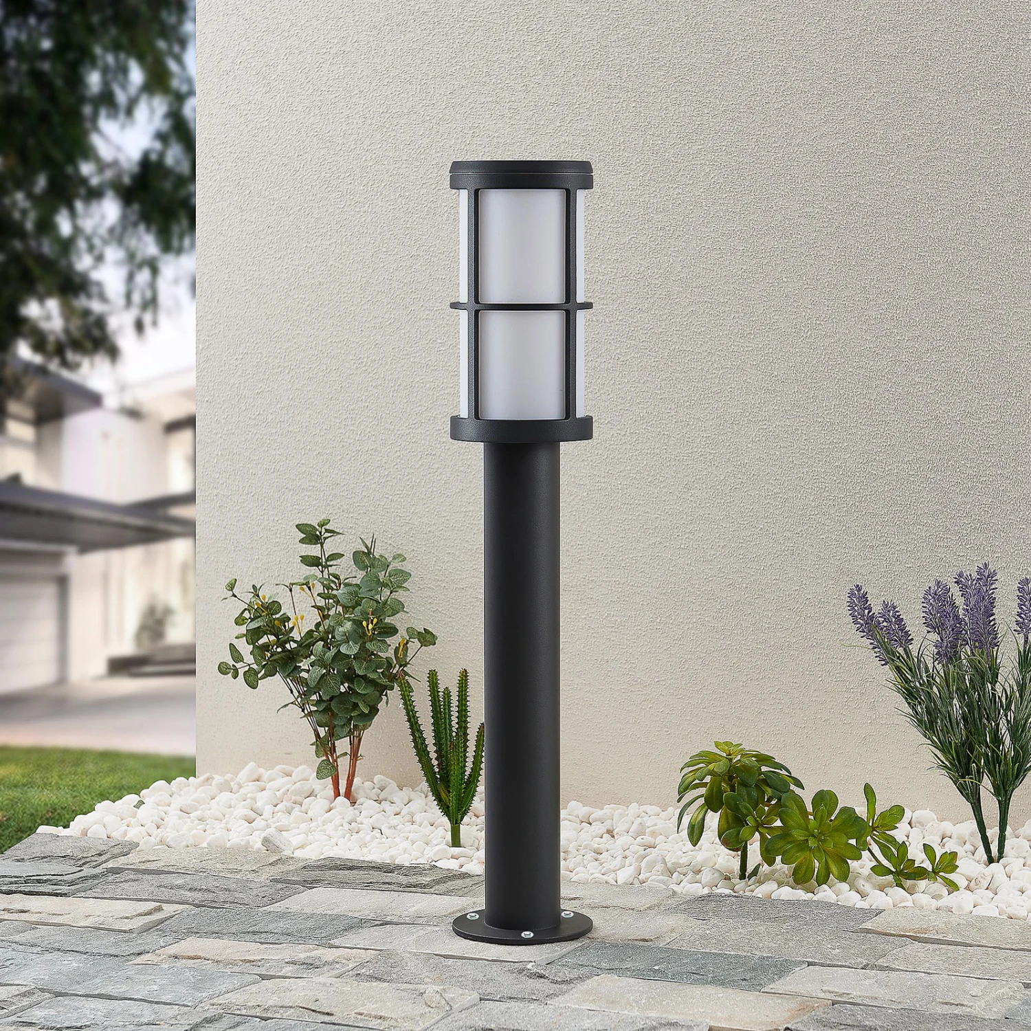 Dieses Beleuchtungsobjekt ist zeitlos gestaltet und kann sich daher gut in unterschiedlich gestaltete Außenbereiche einfügen. Das Gestell der Wegeleuchte Kelini wurde aus Aluminiumdruckguss hergestellt und mit einem modernen Oberflächenfinish in Dunkelgrau versehen.
