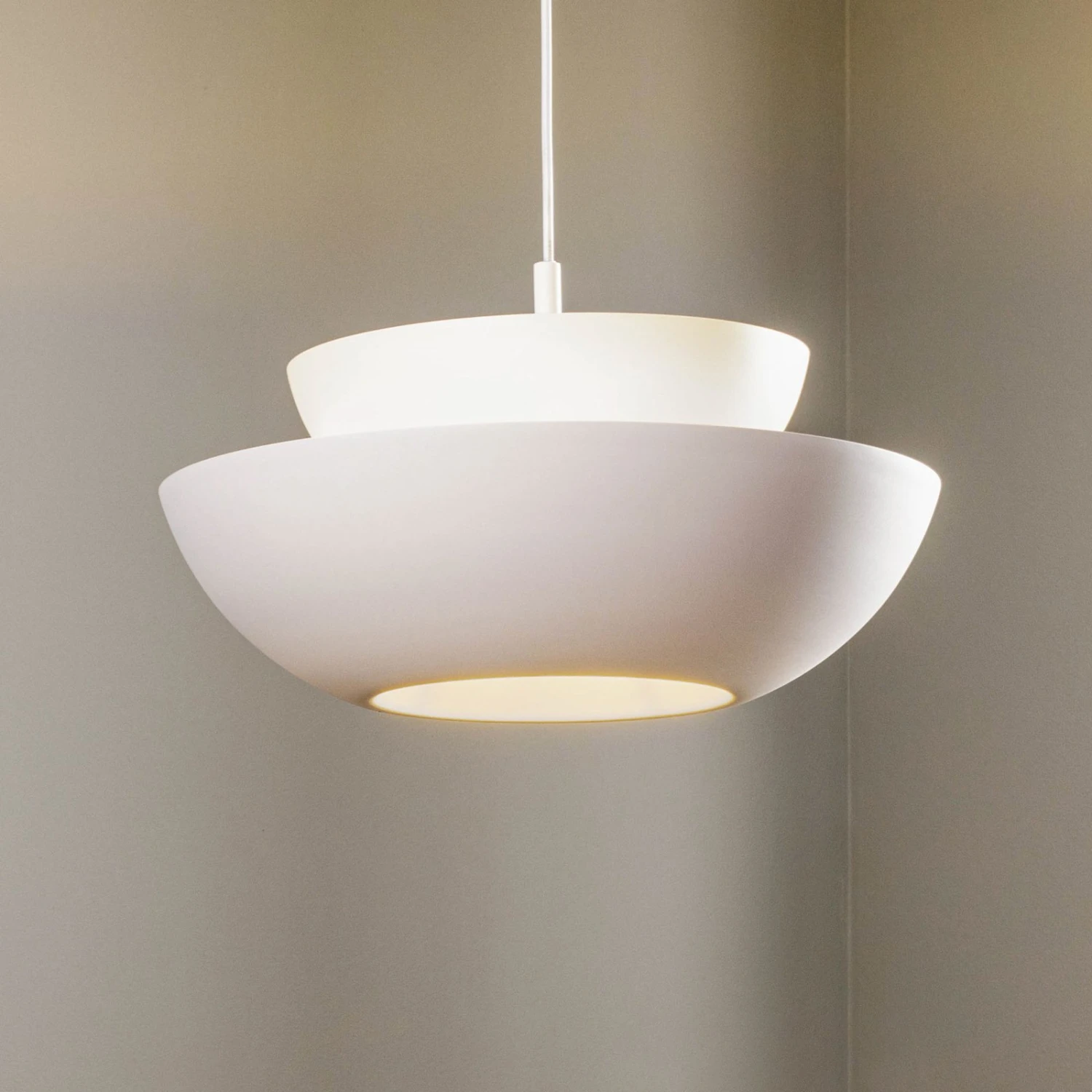 Designorientierte Hängelampe Kellina mit einem stilvollen Doppelschirm