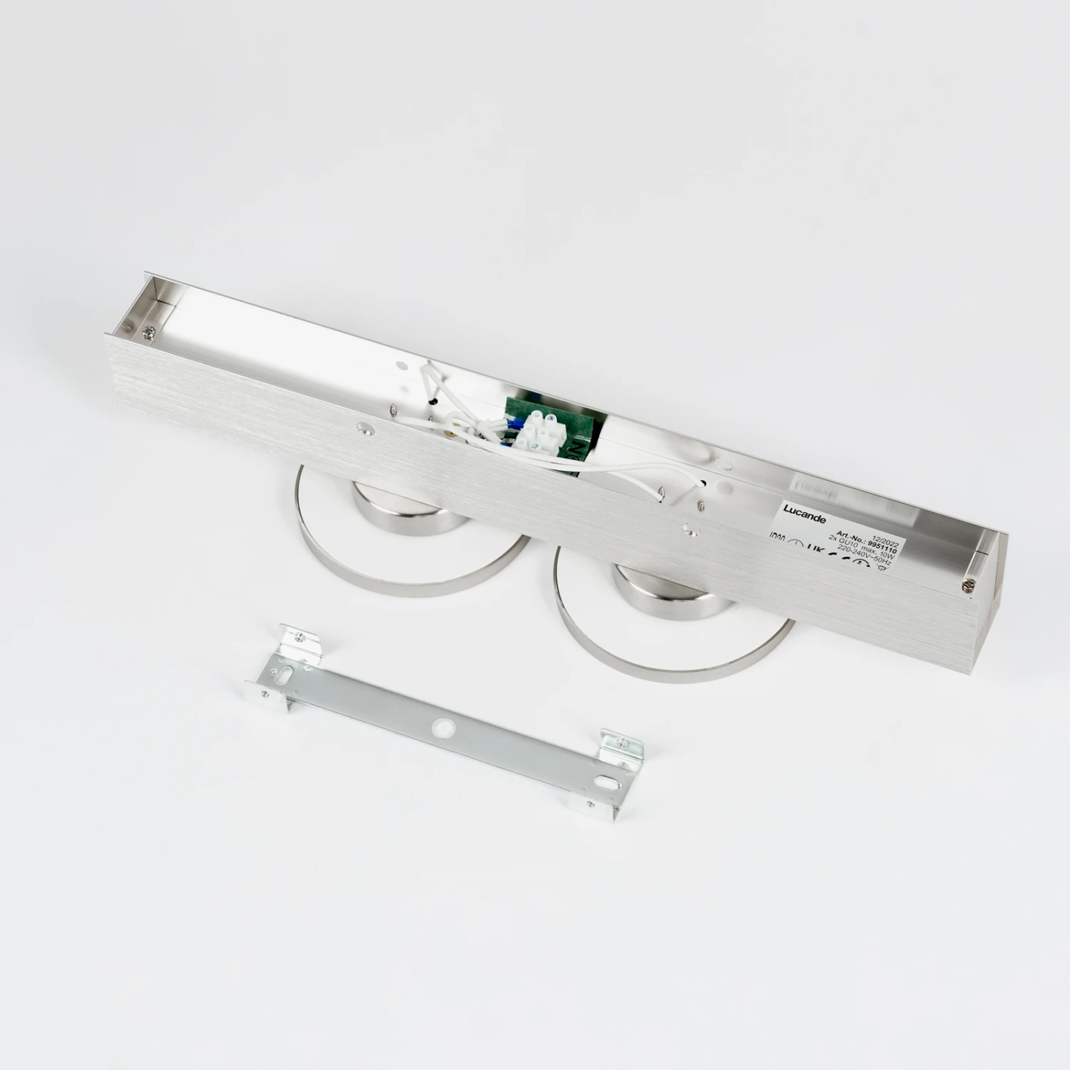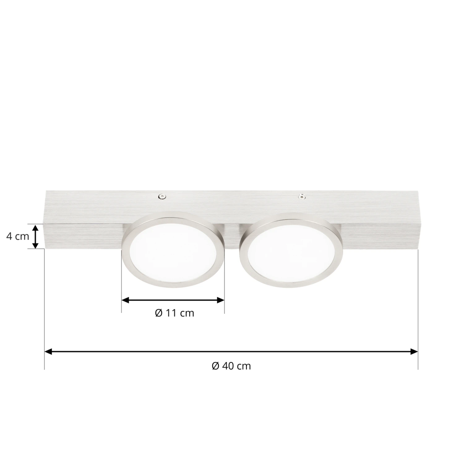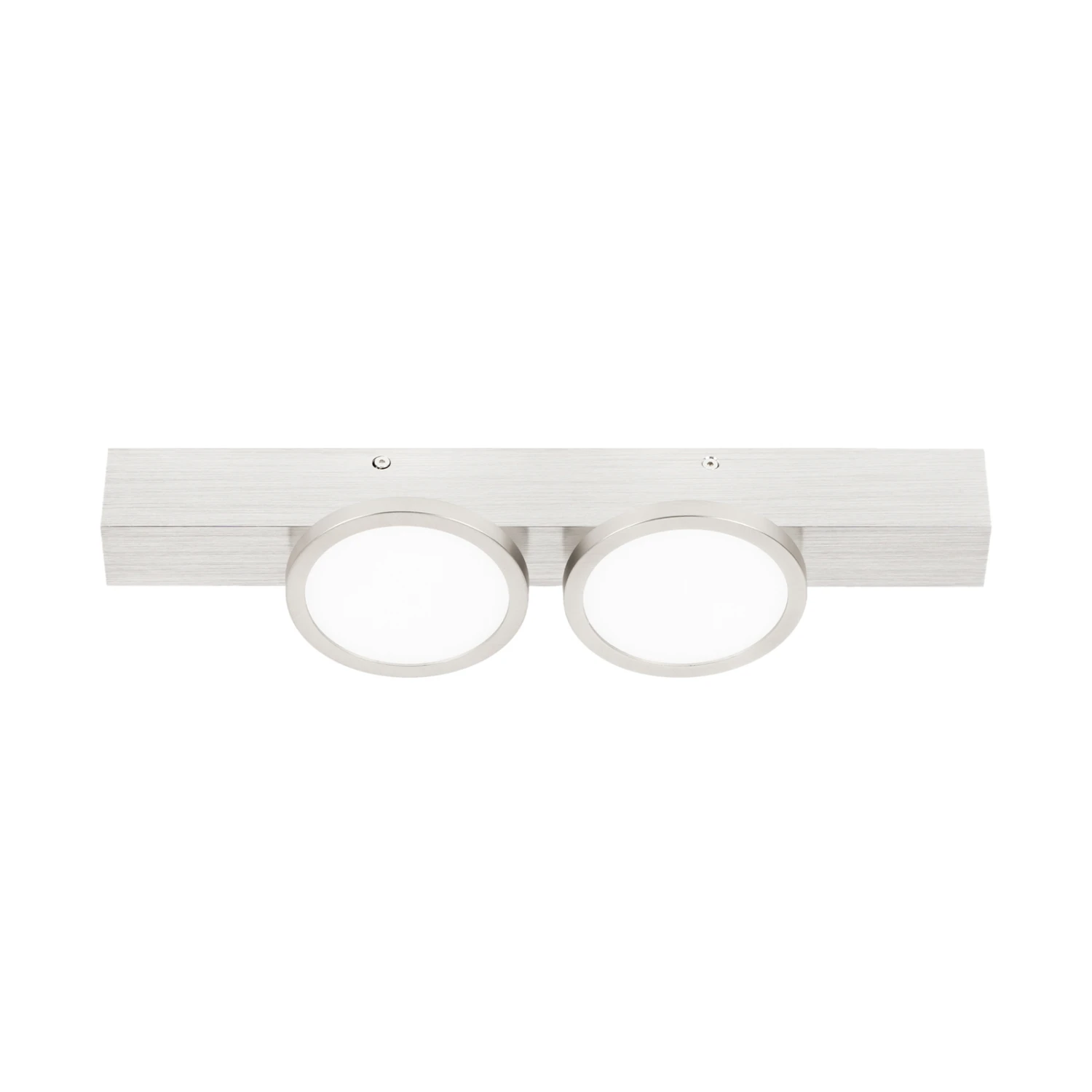 Designorientierte LED-Deckenlampe Kellino mit gebürsteter Oberfläche in Nickel, zweiflammigDie formschöne Deckenlampe Kellino schafft angenehme Lichtverhältnisse und eine wohnliche Stimmung in Ihren vier Wänden. Die Deckenlampe leuchtet in wohnlichem warmweißem Licht, ist für die Aufnahme von Leuchtmitteln mit einem GU10-Sockel konzipiert und kann auch optisch durch ihr modernes Design, das einem Konzept von Ingo Thiele entspringt, punkten. Sie ist mit zwei austauschbaren Lichtquellen, die wohnliches Licht liefern, bestückt. Überzeugen Sie sich von der hohen Qualität und der gut durchdachten Gestaltung der Marke Lucande. Das Modell Kellino ist eine Bereicherung für jeden Ihrer Räume. Auch ausgeschaltet erfüllt die Lampe in der Farbe Nickel einen dekorativen Zweck.