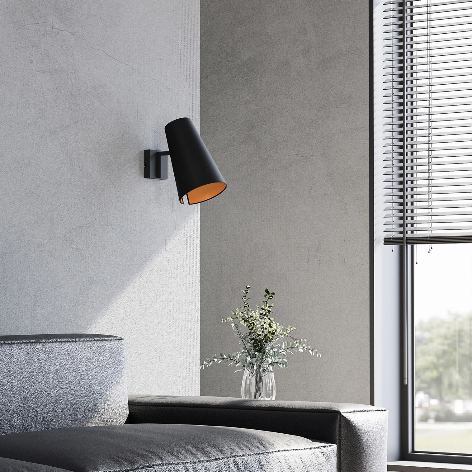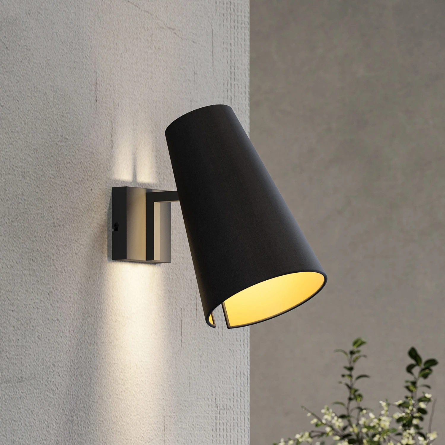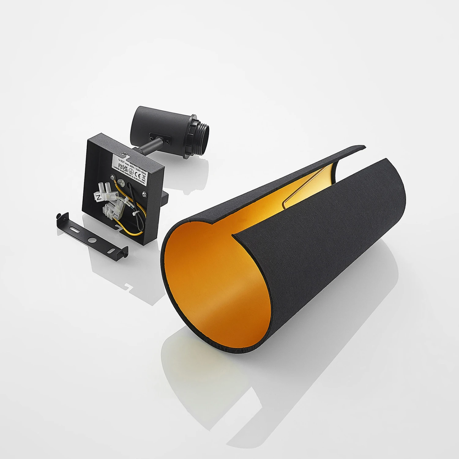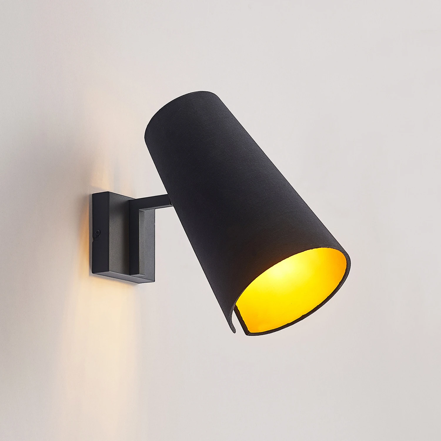 Moderne Wandleuchte Kemoni aus Eisen und Textil in gold-schwarzer Farbgebung
