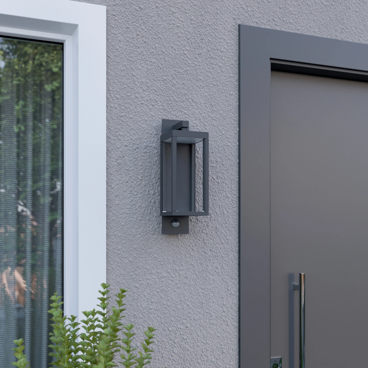 LED-Außenwandlampe Ferdinand mit integriertem Bewegungsmelder und laternenförmigem Schirm – ausgezeichnet mit dem Reddot Award 2018