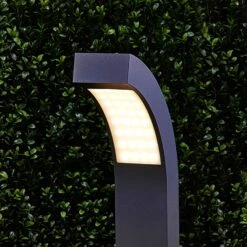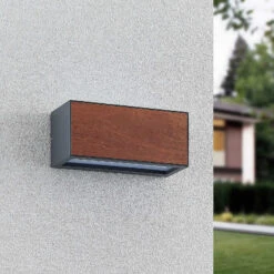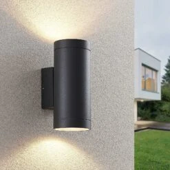 Akira besitzt eine formschöne Optik mit leichten Rundungen, die hervorragend zu modernen Wohnstilen passt. Der Lichtschein der warmweißen LEDs tritt nach oben und unten aus, wobei die Leuchtdioden von weißem Polycarbonat bedeckt werden, so dass der Lichtschein gleichmäßiger anmutet. Der Bügel bzw. die Blende, die den Leuchtenkörper der LED-Außenwandleuchte ausmacht, besteht aus dunkelgrauem Aluminiumdruckguss.