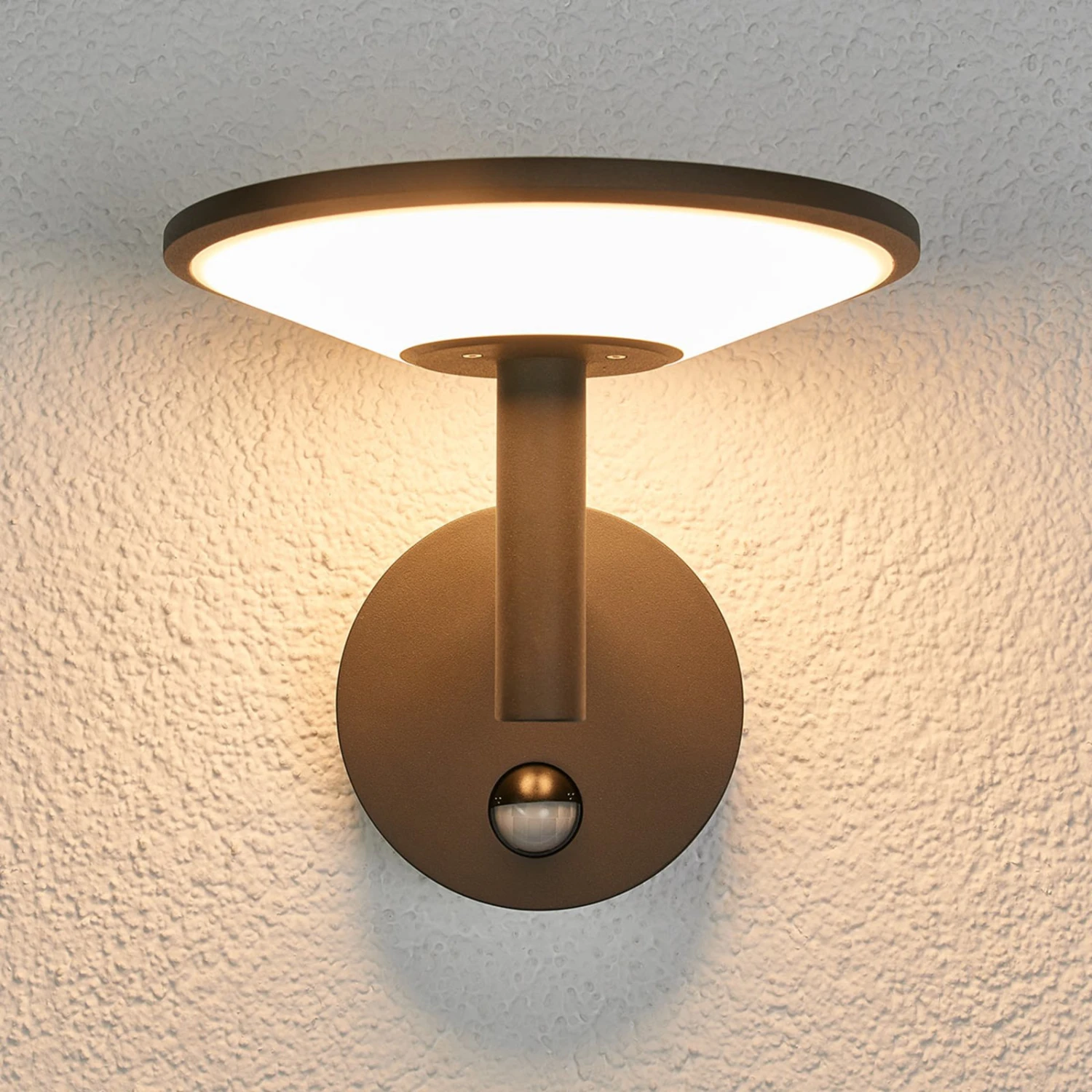 LED-Außenwandleuchten sind bekannt dafür, dass sie nur wenig Strom verbrauchen, aber hell leuchten können. Das gilt auch für Fenia, die aus dunkelgrauem Aluminium besteht, eine runde Form hat und den Lichtschein Richtung Boden abgibt. Sie sorgt dafür, dass auch nach Einbruch der Nacht stets Licht zum Orientieren vorhanden ist. Dabei ist der integrierte Bewegungsmelder von großem Vorteil, denn so schaltet sich das Licht nur dann ein, wenn es von einer Person benötigt wird, weil der Sensor eine Bewegung registriert.