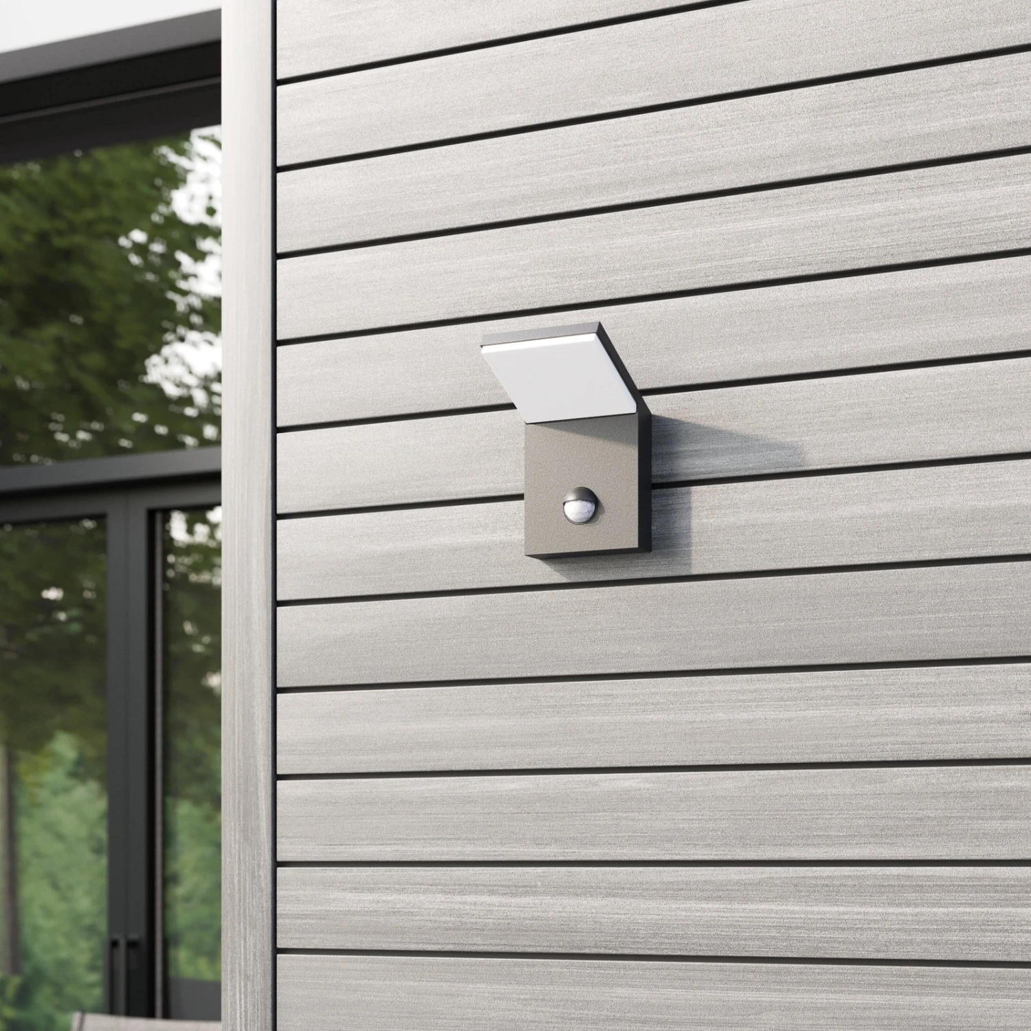 Zudem verfügt die Leuchte über einen integrierten Bewegungssensor, der dafür sorgt, dass die Beleuchtung sich beim Ein- und Ausschalten an die Gegebenheiten der Umgebung anpasst und dann leuchtet, wenn sich Personen dem Anwesen nähern und Orientierungsbeleuchtung benötigen.