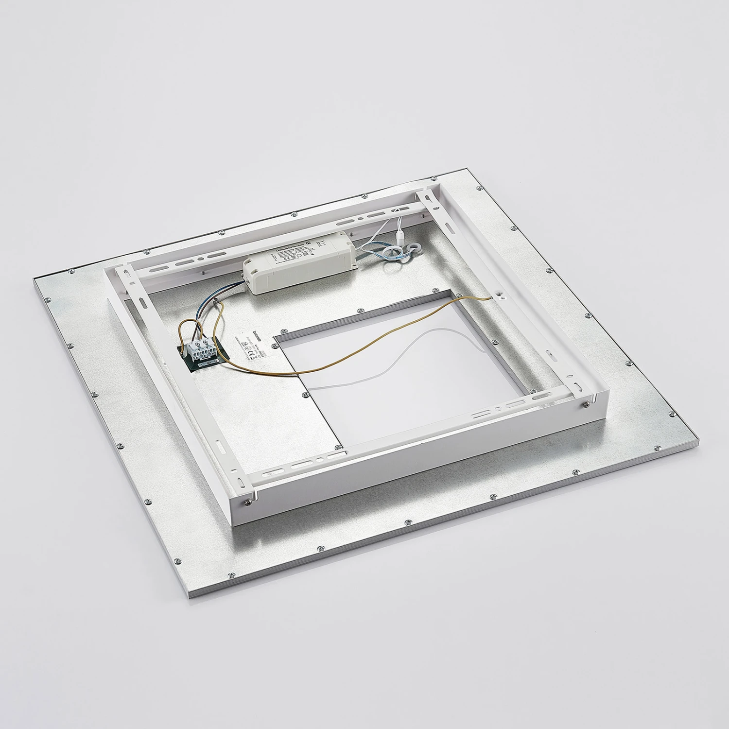 Eckige LED-Deckenlampe Durun mit dekorativer Auslassung und silbernem Rand, Helligkeit und Lichtfarbe verstellbar